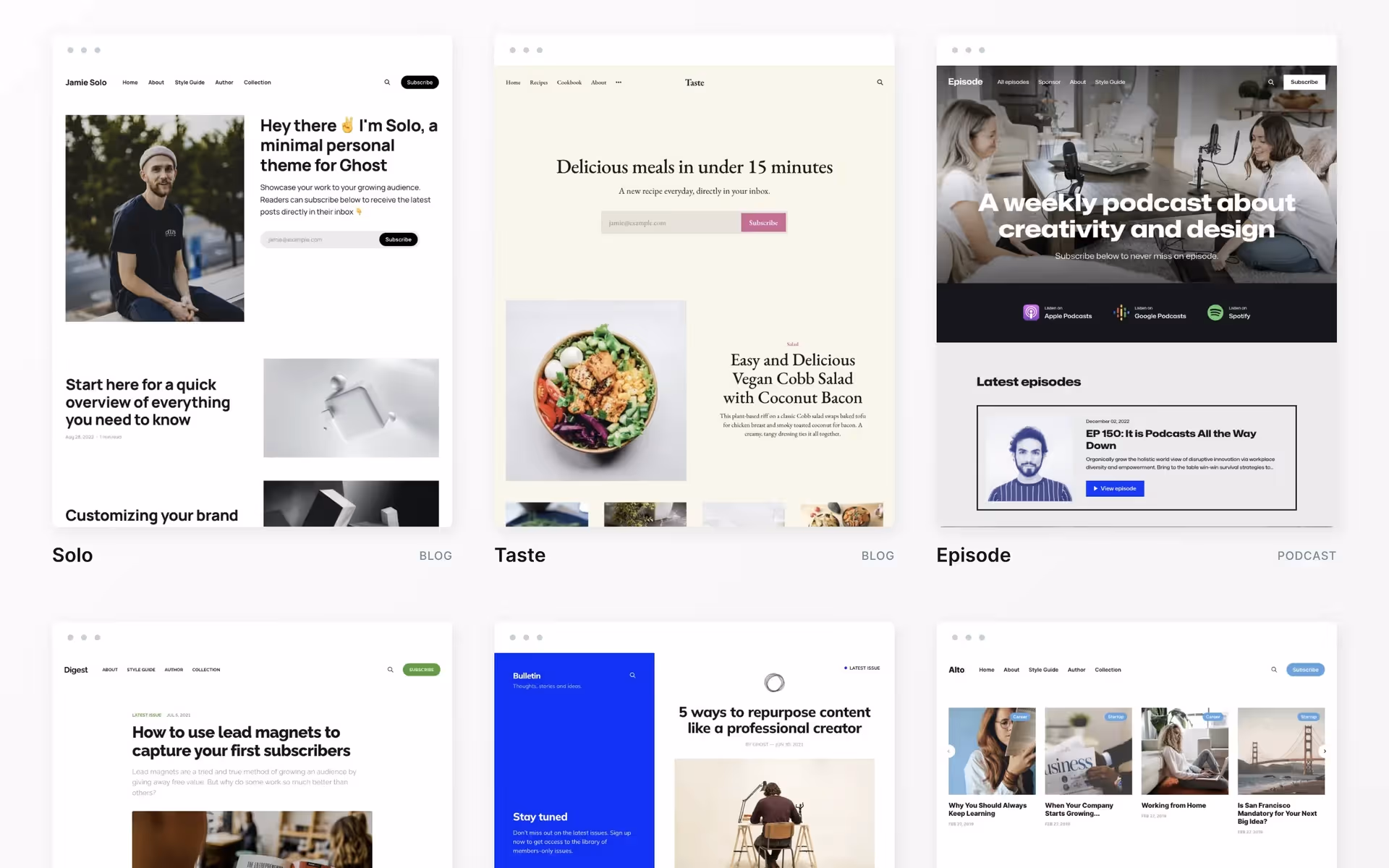 Ghost's minimalist palette strategically uses high contrast to eliminate distractions and elevate your content. This creates a clean, professional canvas that keeps the focus squarely on the message you're delivering to your audience.