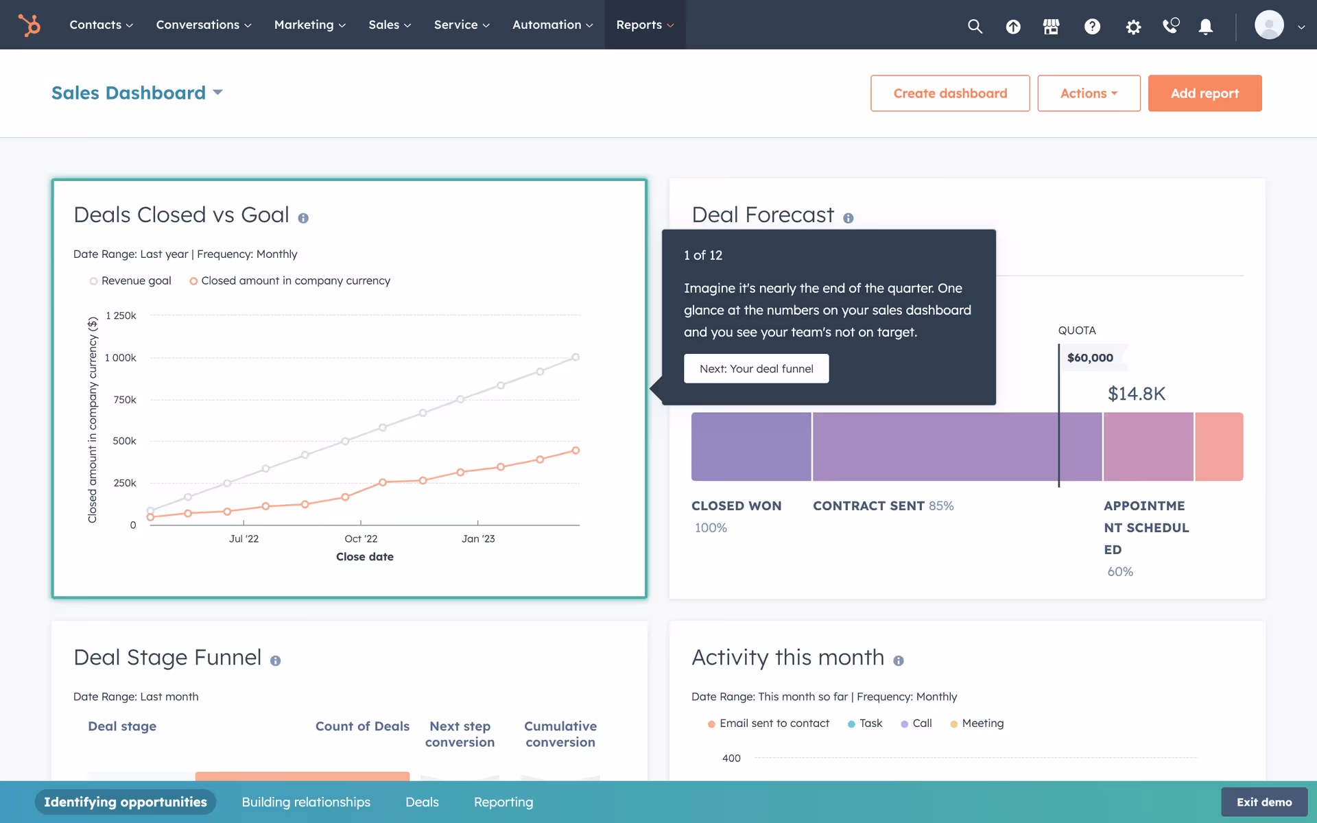 HubSpot strategically pairs the trustworthy Pickled Bluewood with the action-oriented Coral, creating a clear visual hierarchy that confidently guides you toward your goals on a clean, approachable interface.