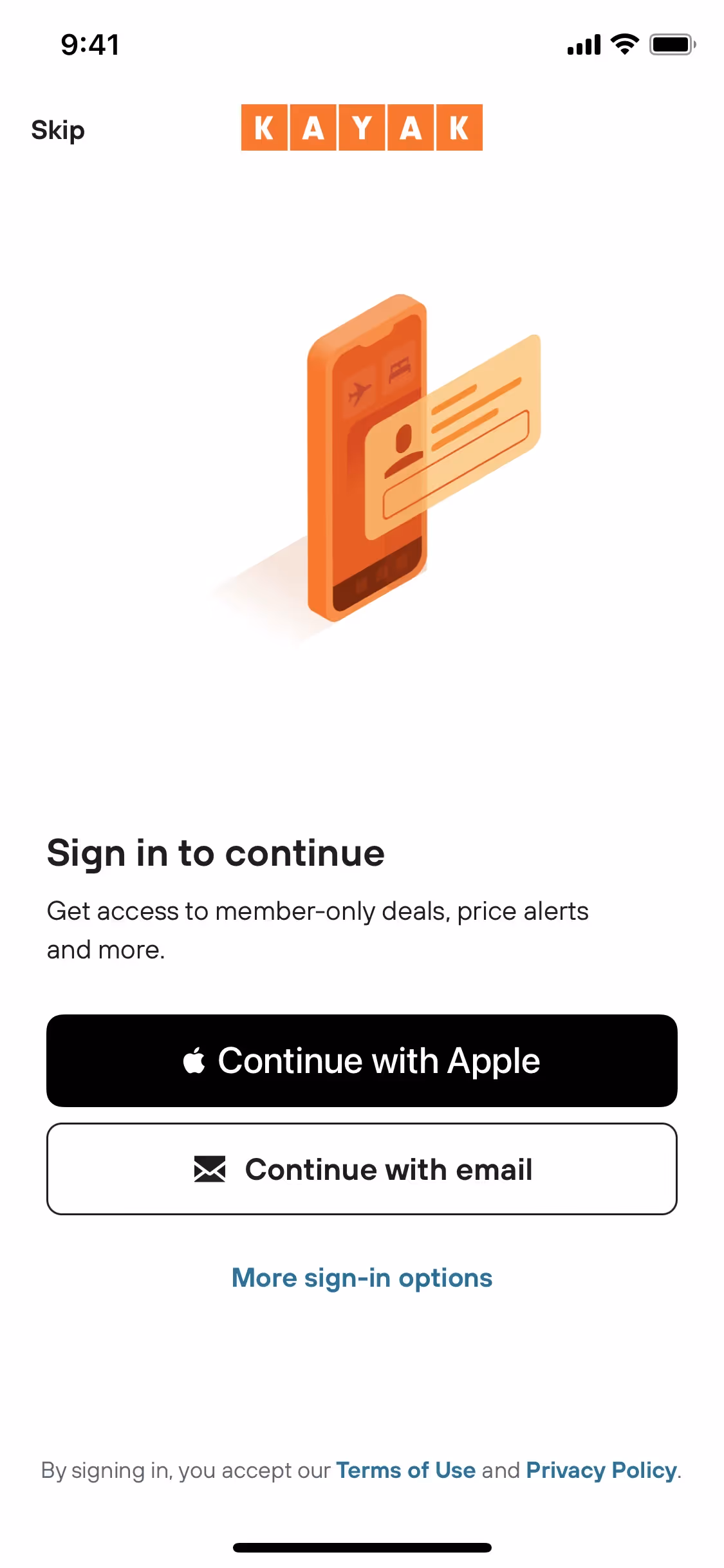 Kayak strategically uses orange and white in its interface designs to guide your actions and enhance your experience. Orange is employed for call-to-action buttons and highlights, drawing your attention to key actions like booking and searching, while white provides a clean, readable background that reduces cognitive load and ensures clarity.