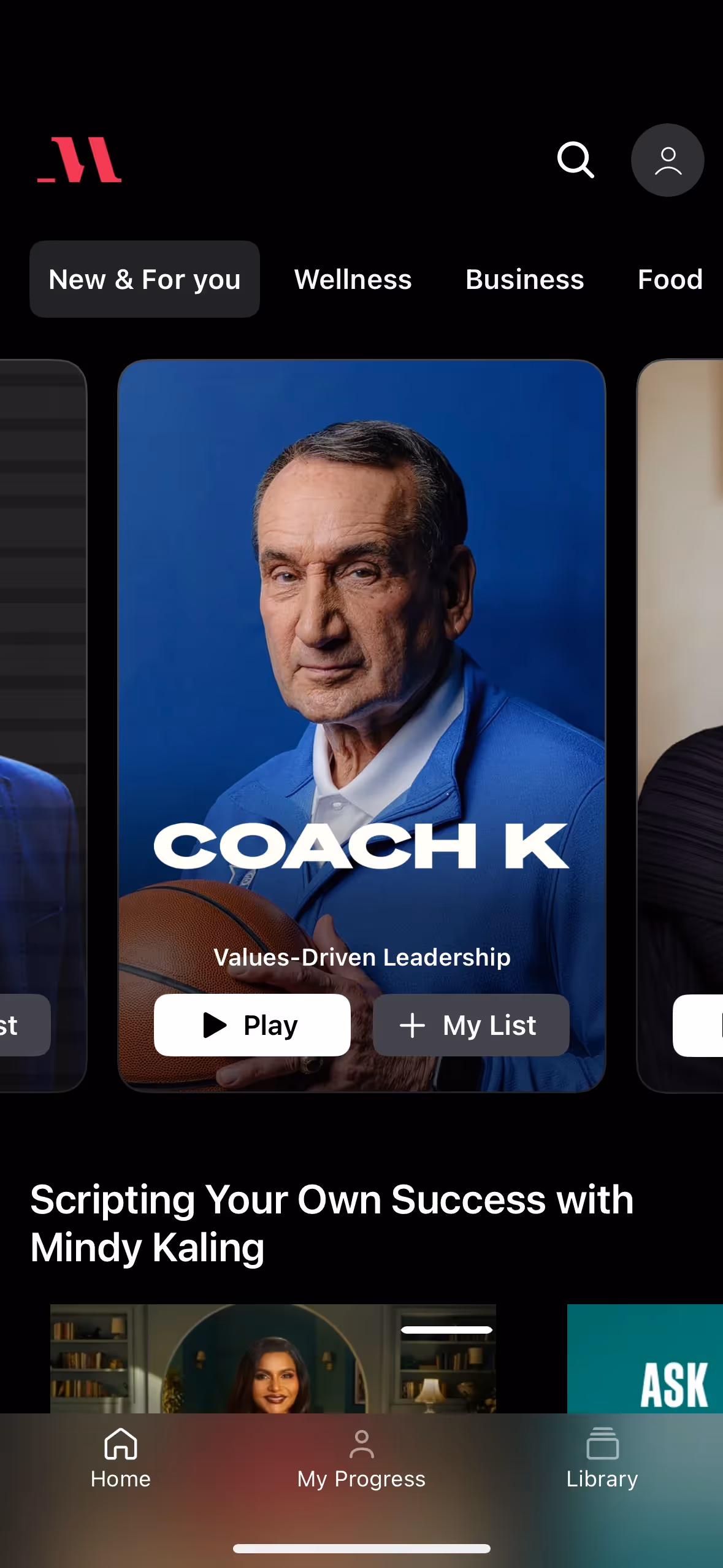We've observed that MasterClass uses its dark, sophisticated palette of Black and Smoky Black to create a premium, focused learning environment, allowing pops of Amaranth Red to strategically guide your attention towards key calls-to-action and influence decisions.