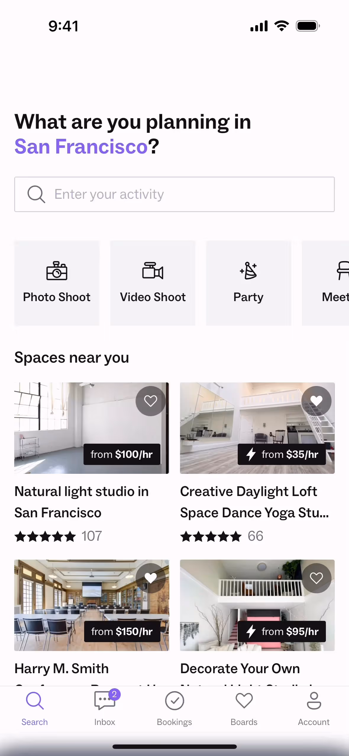 Peerspace leverages a clean white and dark gray foundation to make its stunning venue photography the hero of the experience. The earthy Dallas brown then acts as a warm, trustworthy guide, subtly encouraging you to take key actions like booking a space.