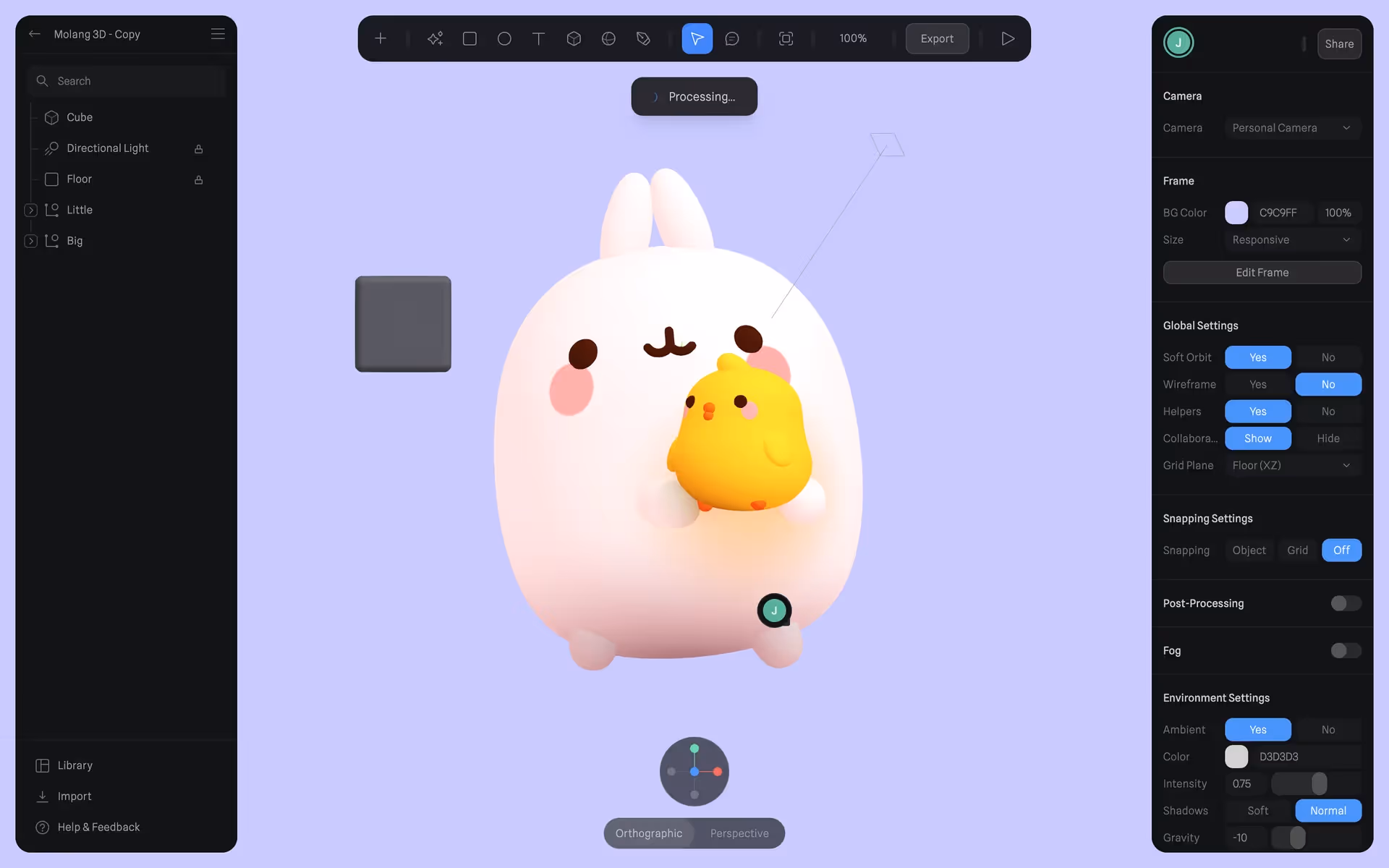 While Spline doesn't publicly detail a specific color psychology, its high-contrast palette of Woodsmoke and White creates a focused canvas for your work. The strategic use of Dodger Blue for primary calls-to-action effectively guides you through the interface, ensuring your creative flow is never interrupted.