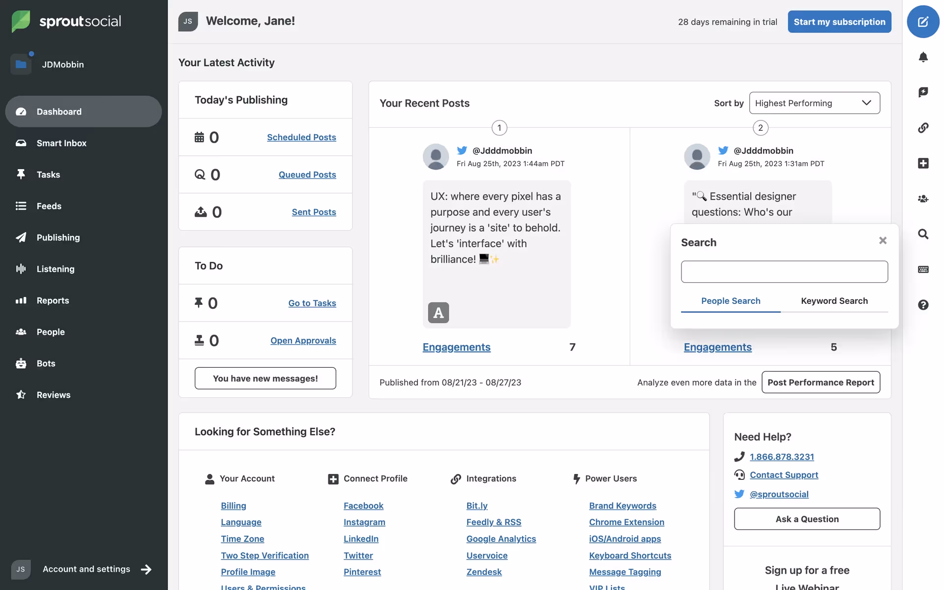Sprout Social uses its blend of greens and blues to create an experience rooted in trust and growth. The strategic pops of green guide you toward key actions and successes, while the stable blues provide a calm, focused environment for navigating complex data.