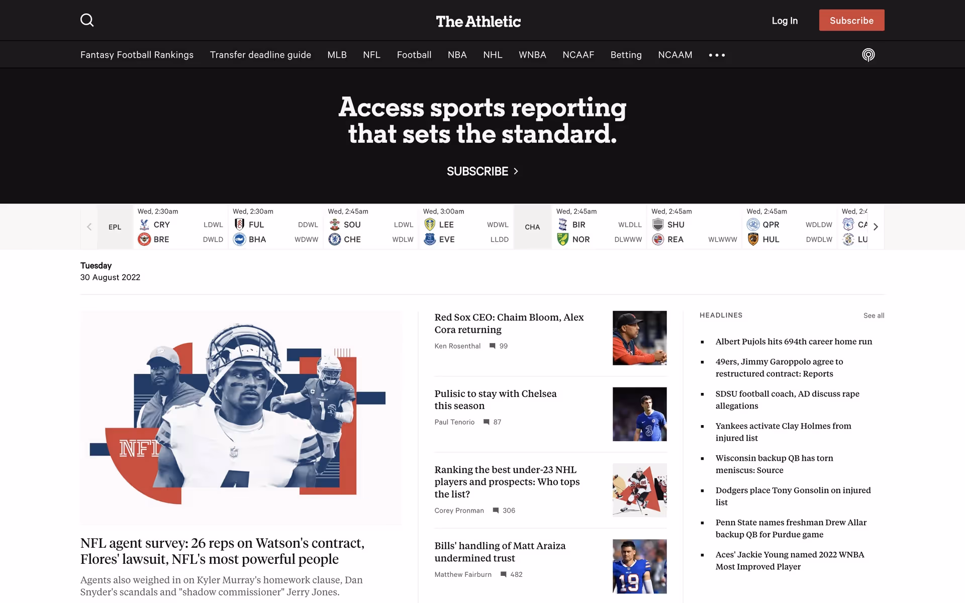 In our view, The Athletic's color strategy focuses on reinforcing its bold, journalistic brand rather than using specific shades to psychologically steer your on-page decisions.