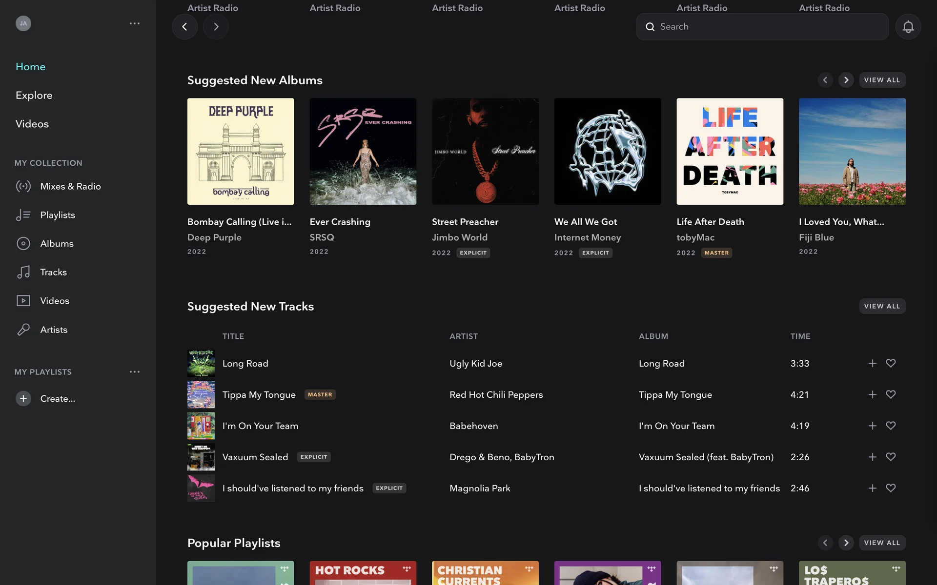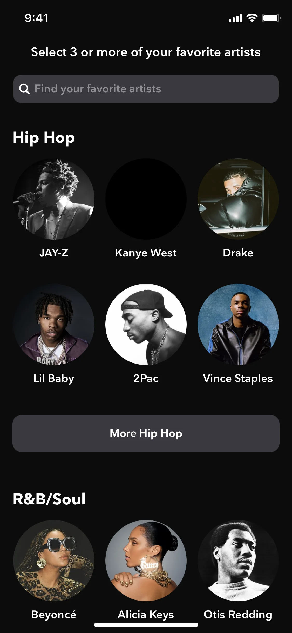 To build on TIDAL's high-contrast aesthetic, we suggest using a vibrant color like electric yellow to make key actions pop against the black. For a more subtle approach, introducing shades of deep charcoal or slate gray can create a sophisticated visual hierarchy and add depth to your designs.