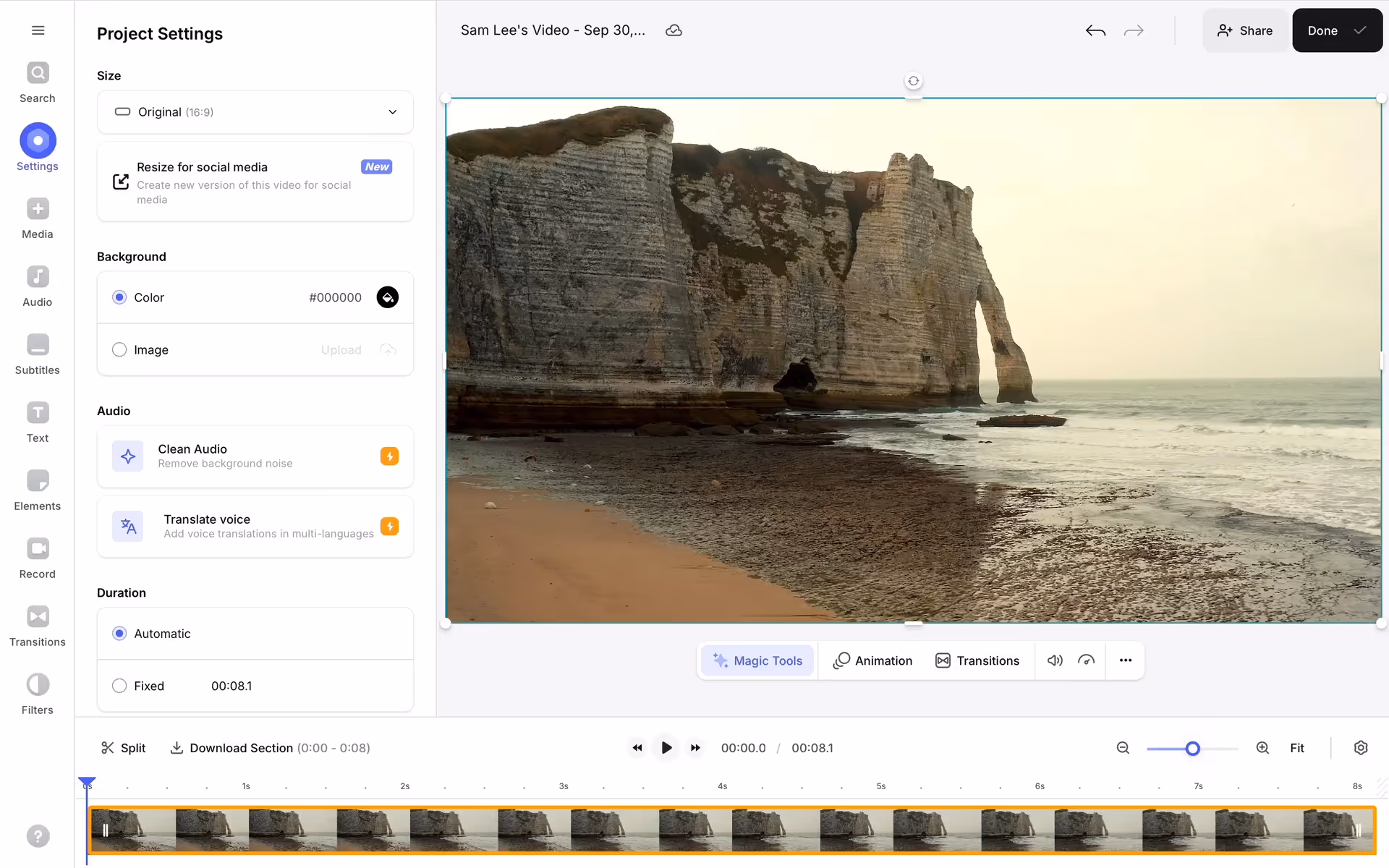 VEED's signature Azure Radiance embodies clarity and creative trust, supported by the stark contrast of Woodsmoke and white to provide a focused, professional canvas for your video projects.