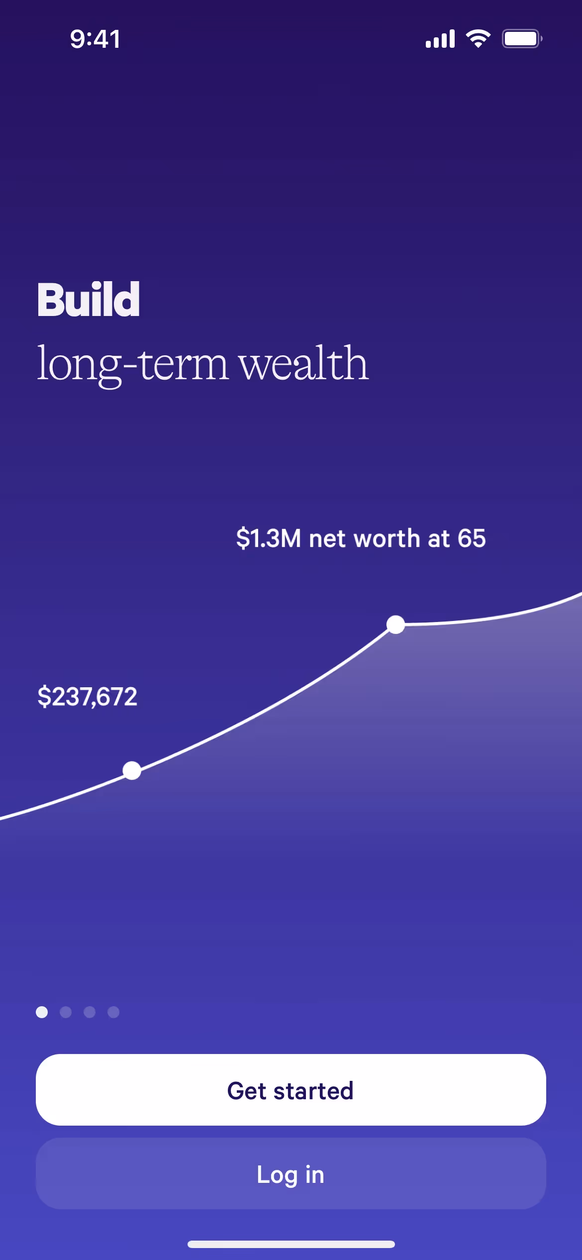 Wealthfront's primary Mirage color (#18172B) grounds the experience in trust and sophistication, assuring you of their expertise, while the energetic Governor Bay (#4840BB) and clean Athens Gray (#F0F0F2) create a clear, forward-thinking interface.