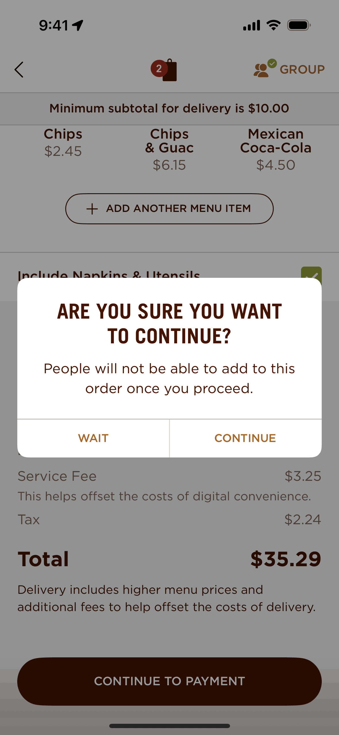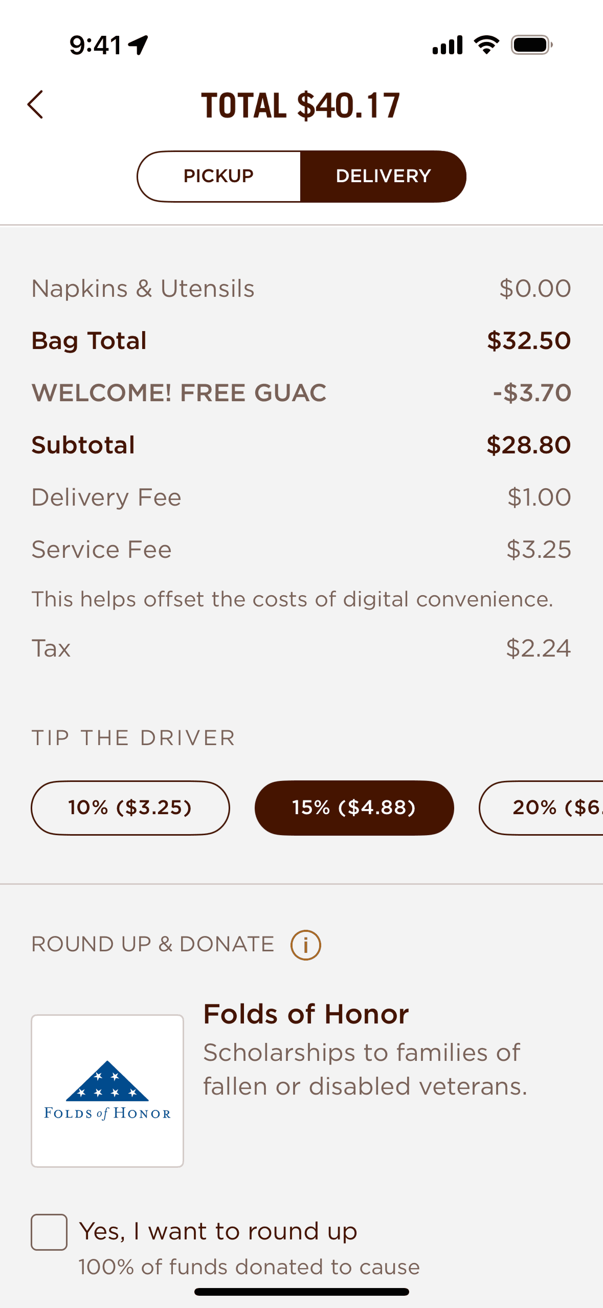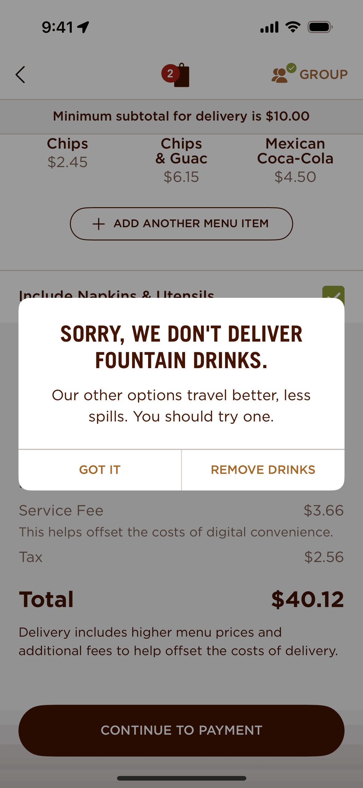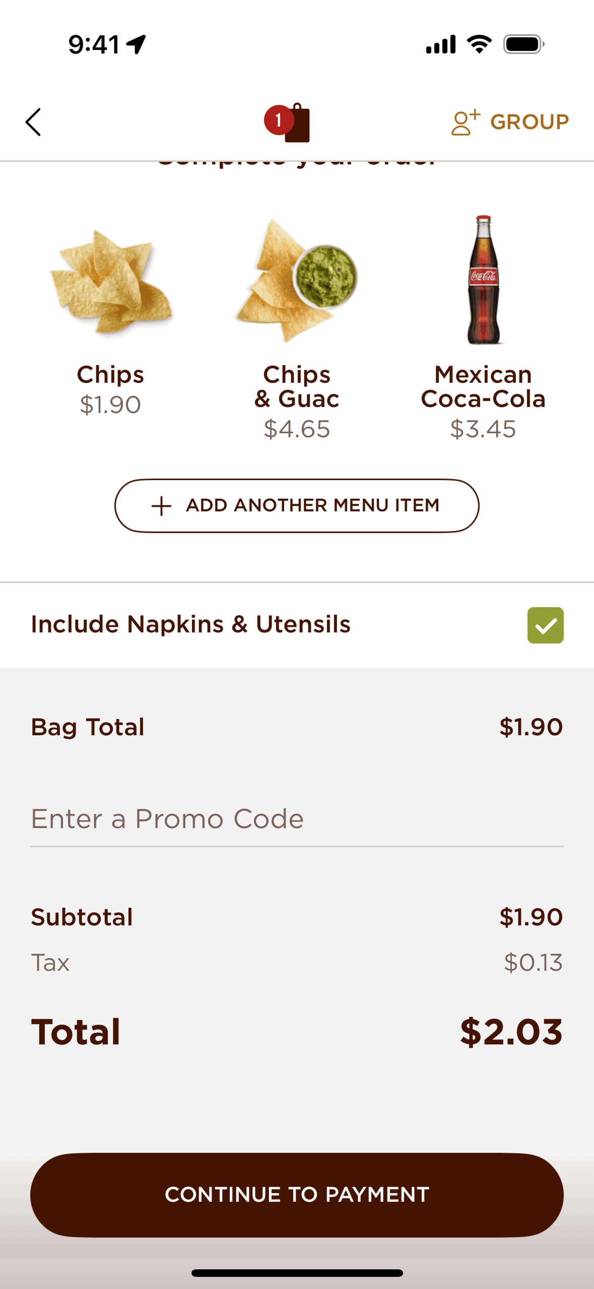 The user flow demonstrates adding a customized burrito and drinks to the bag. It ends with the order summary and option to proceed to payment.