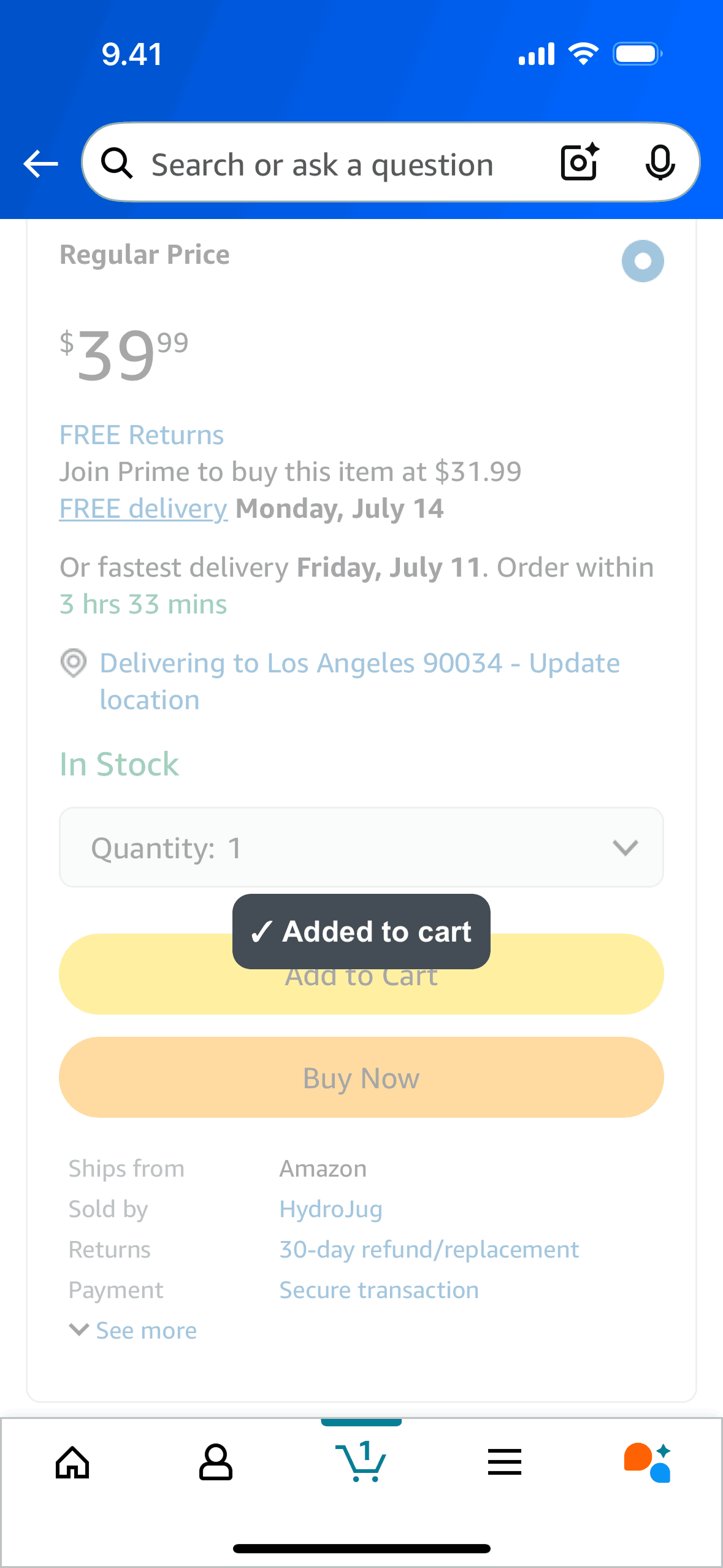 The user views a product and adds it to their cart. A confirmation message appears to confirm the action.