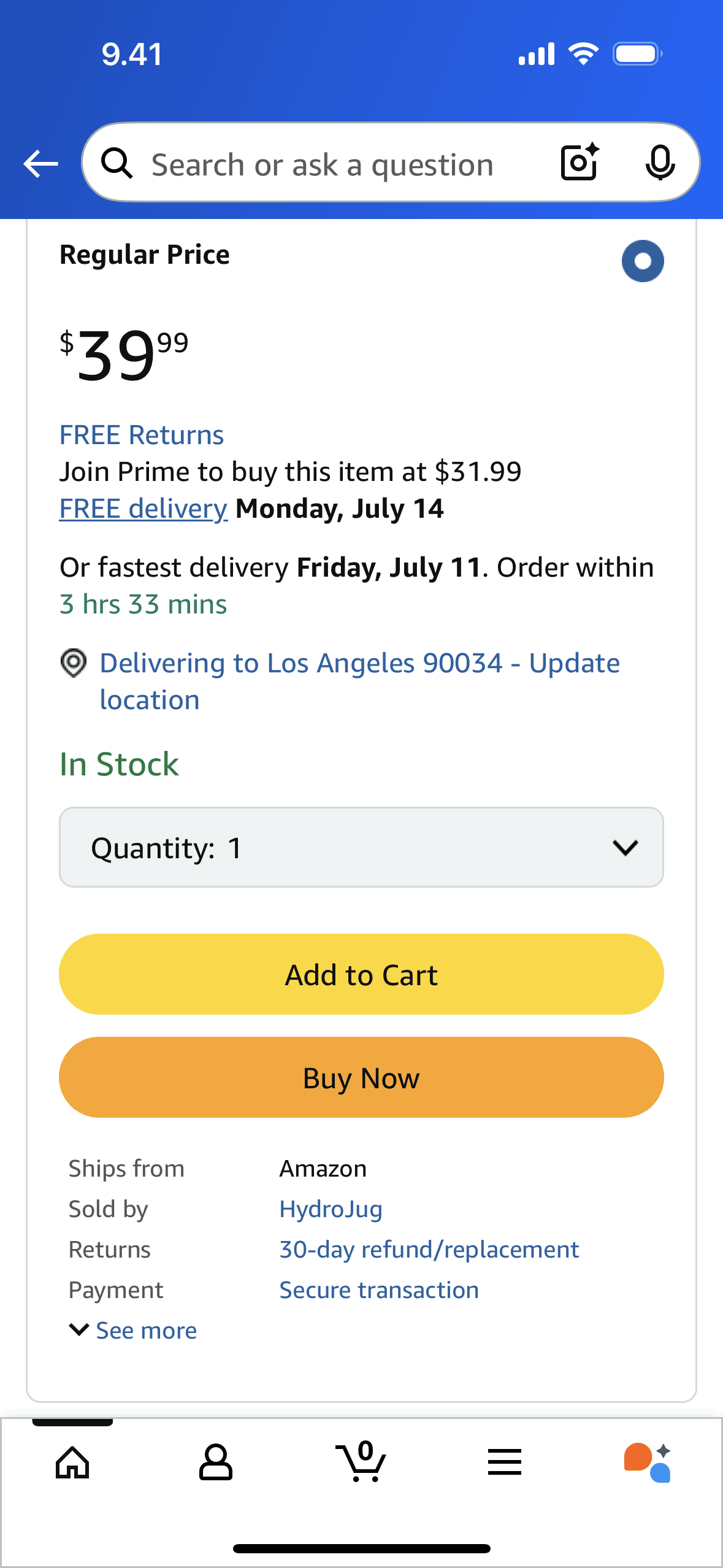 The user flow demonstrates adding a product to the cart. It involves viewing product details, selecting quantity, and proceeding to checkout.