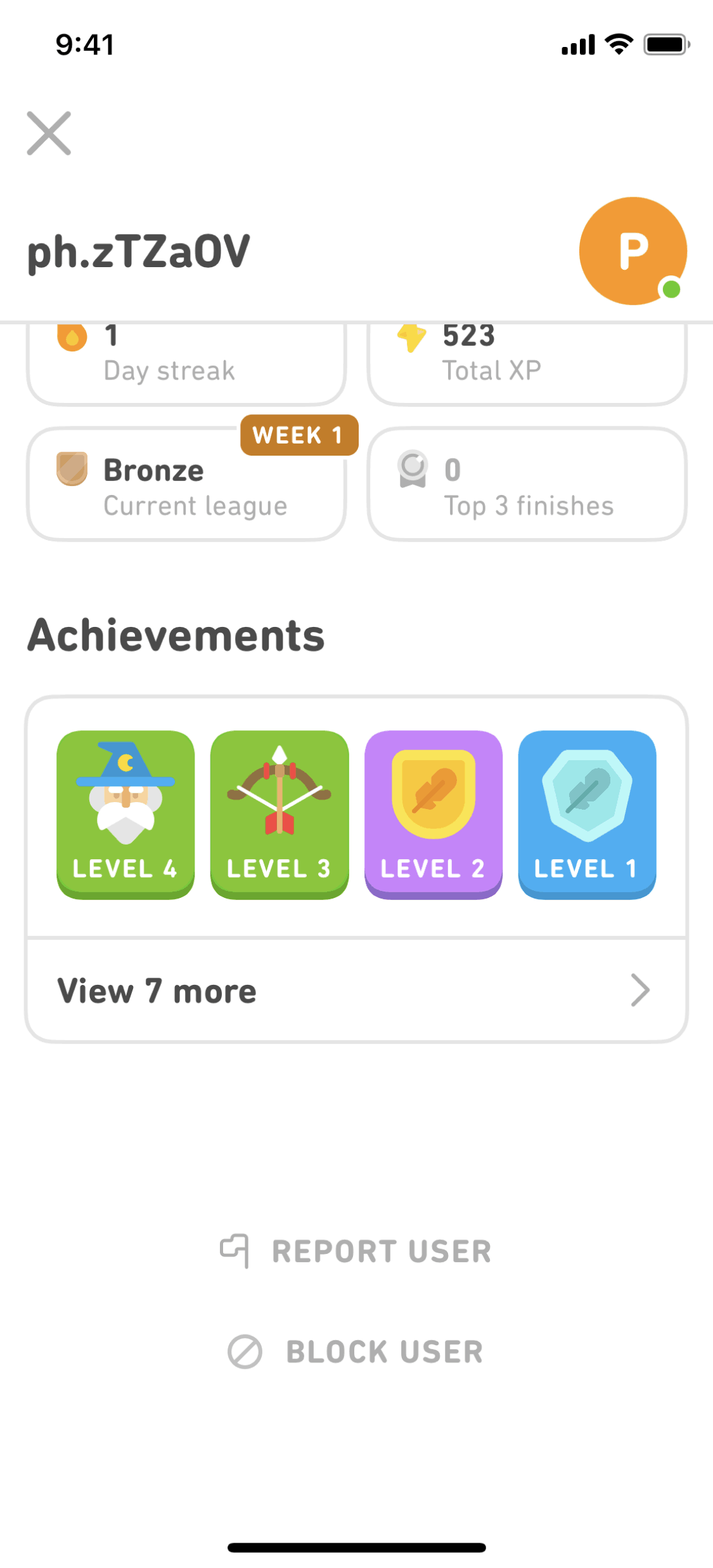 The user flow demonstrates reporting and blocking a user. It shows the report reason selection and the change of the "BLOCK USER" button to "UNBLOCK USER".