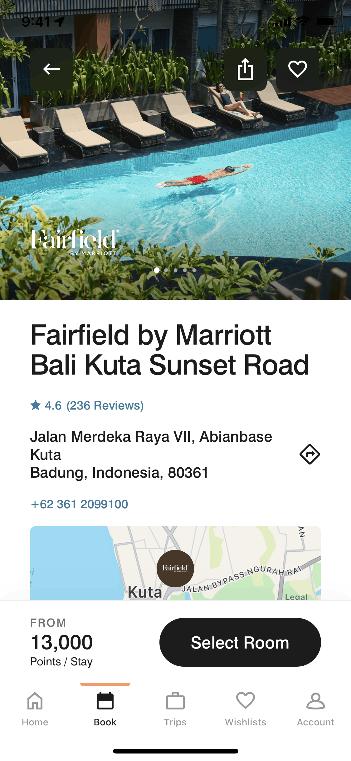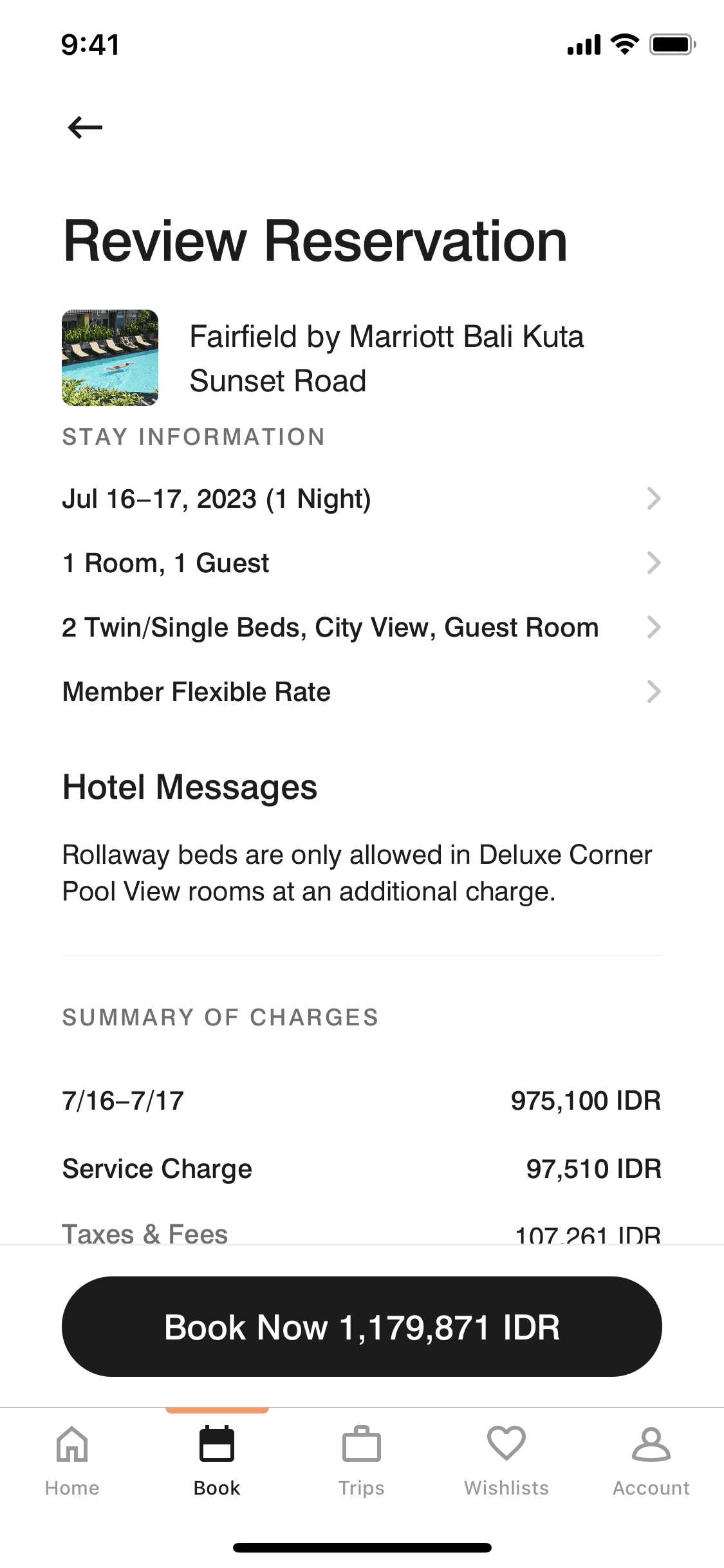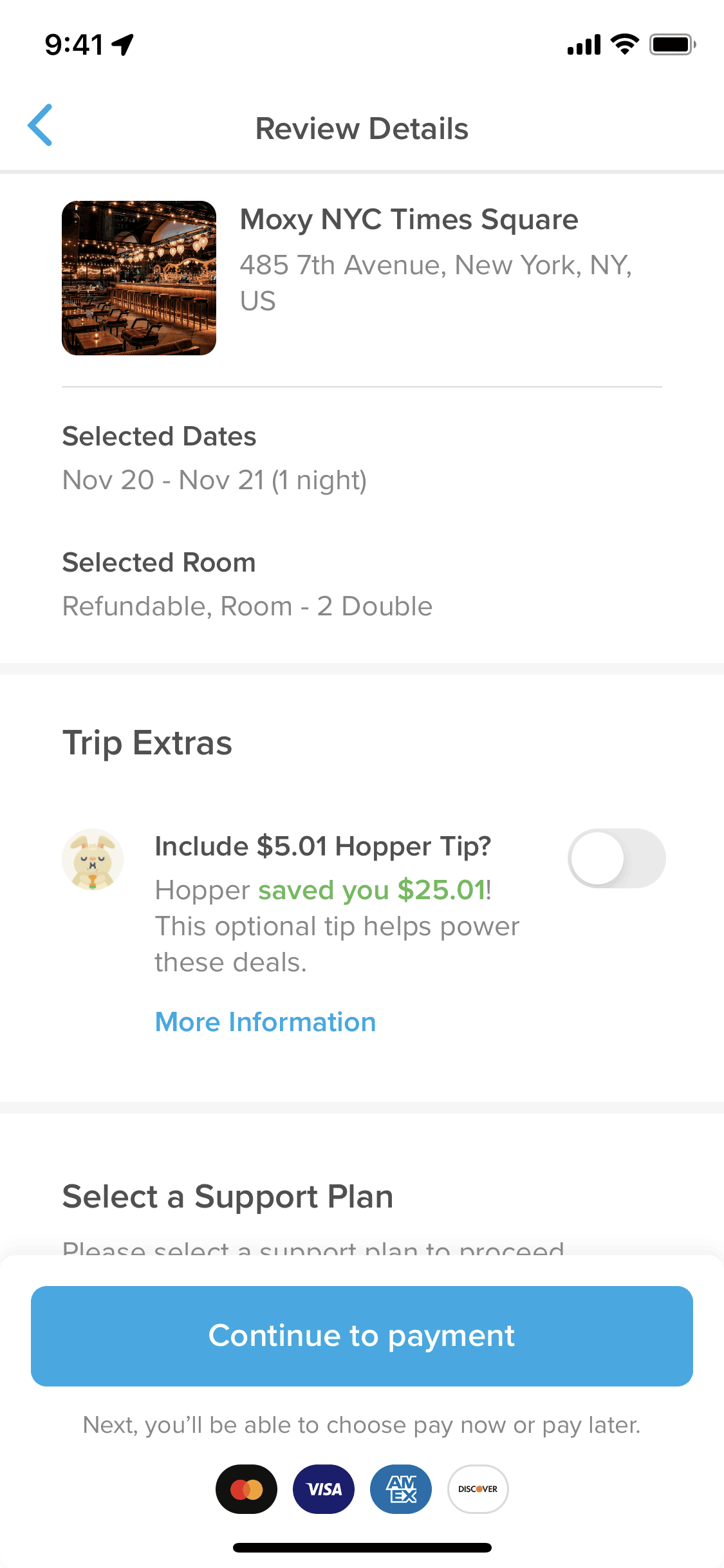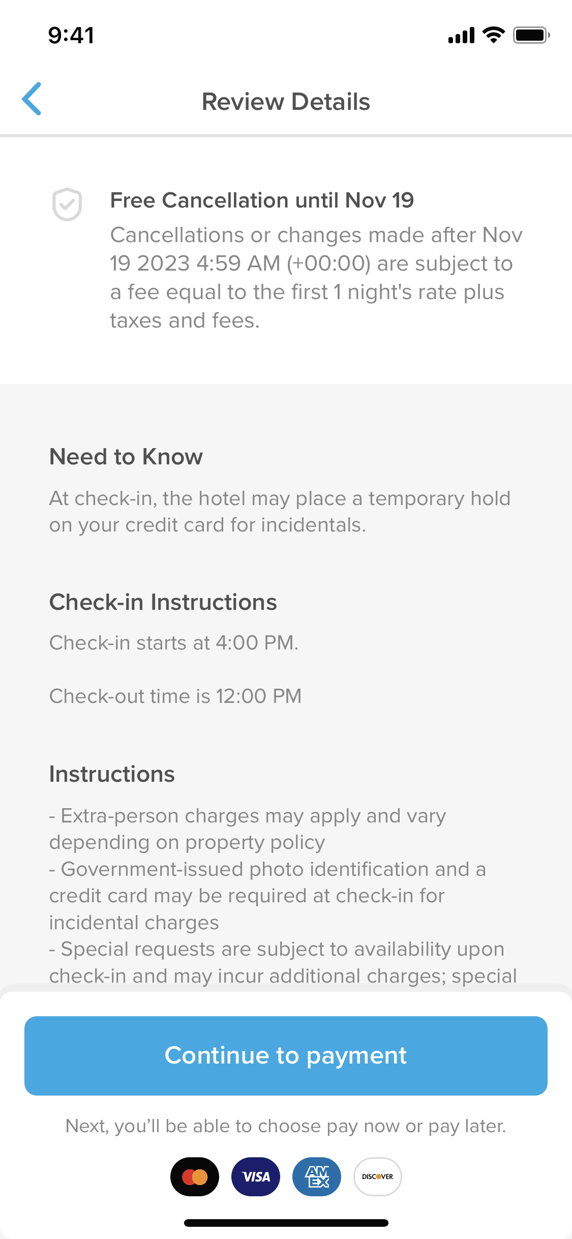 The user books a hotel room by selecting a room, adding extras, entering guest details, and completing the payment. The flow ends with a booking confirmation and feedback request.