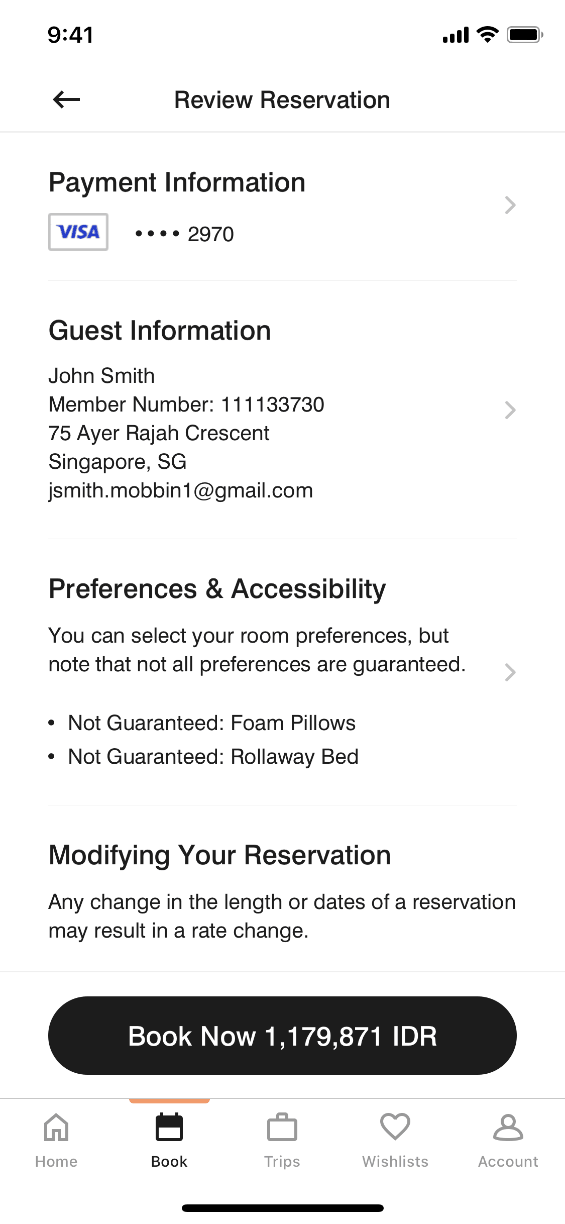The user books a hotel by searching, selecting a room, and providing payment. They can also edit preferences before confirming the reservation.