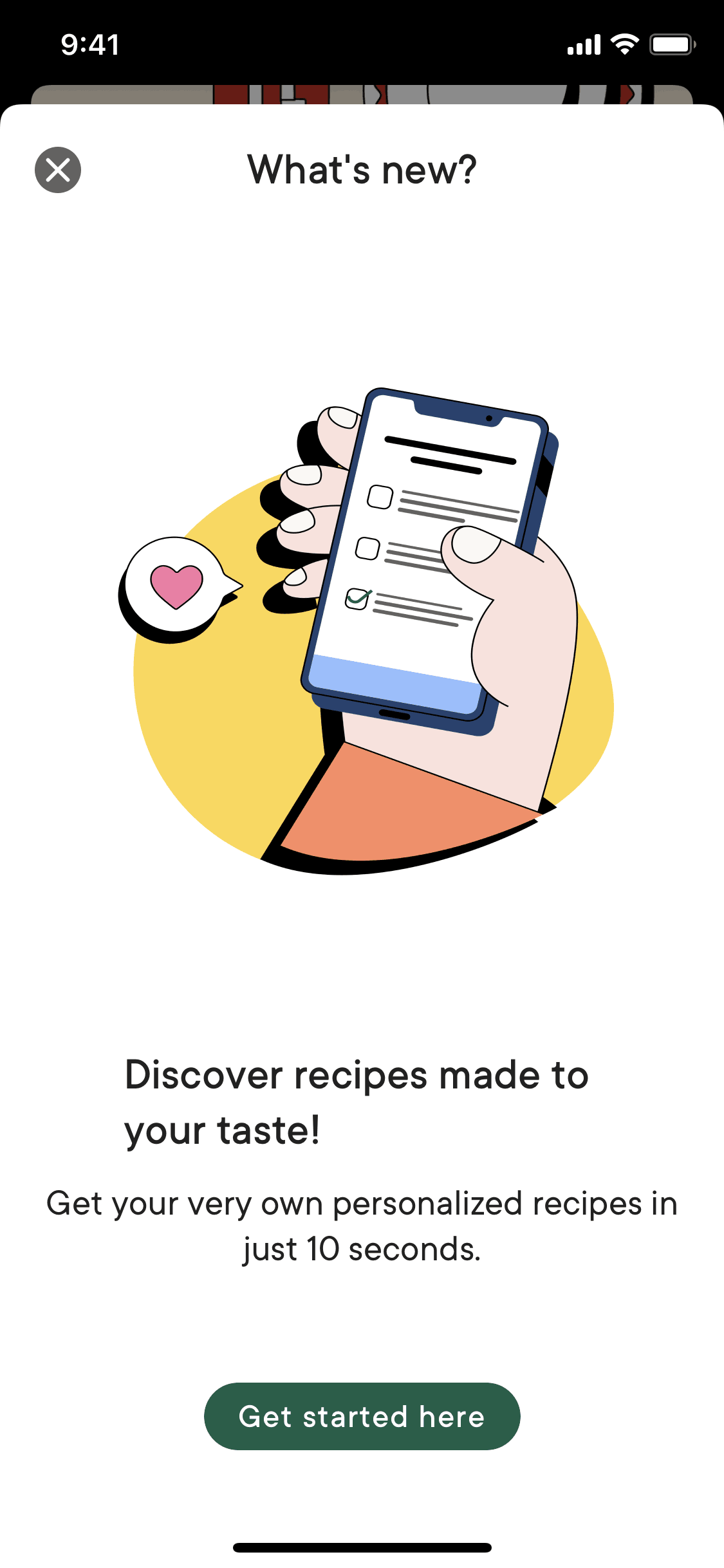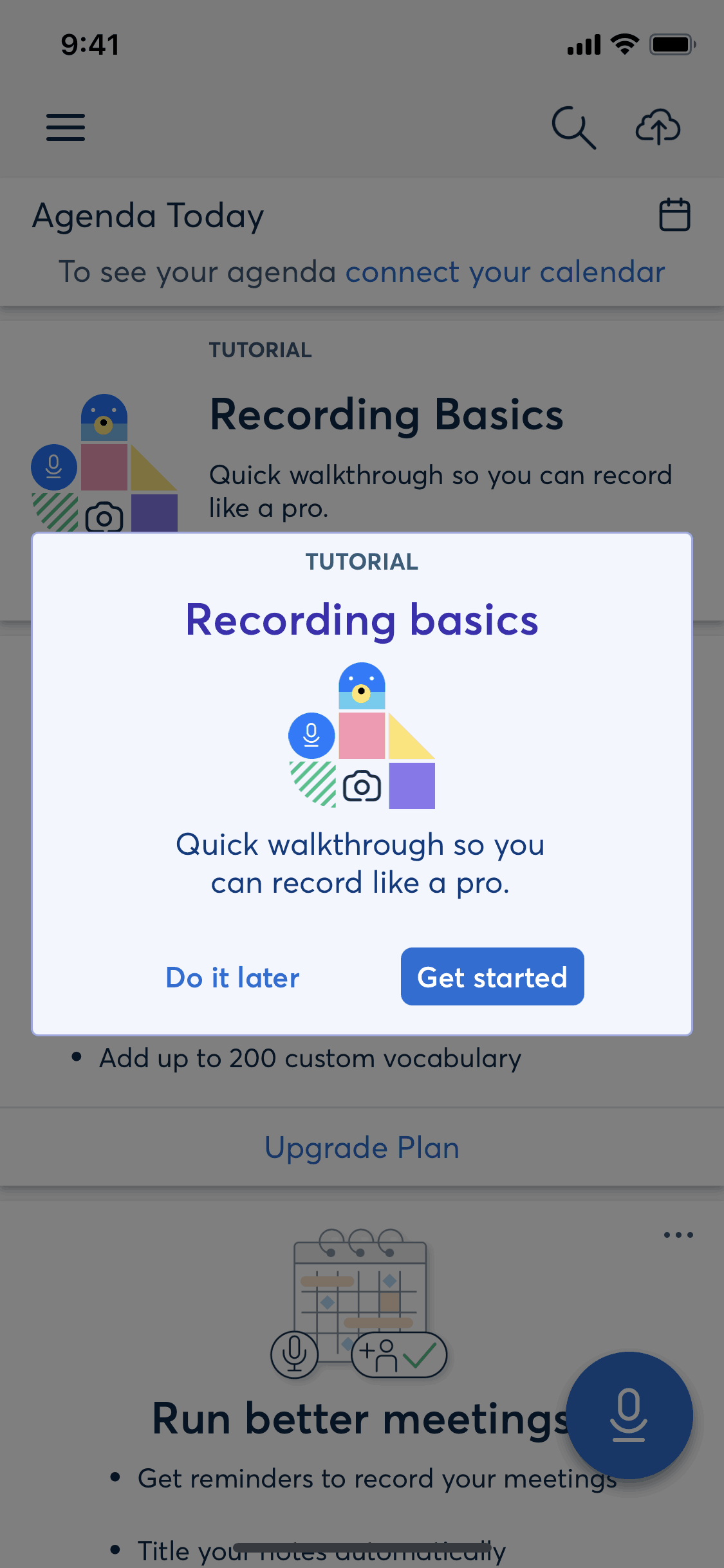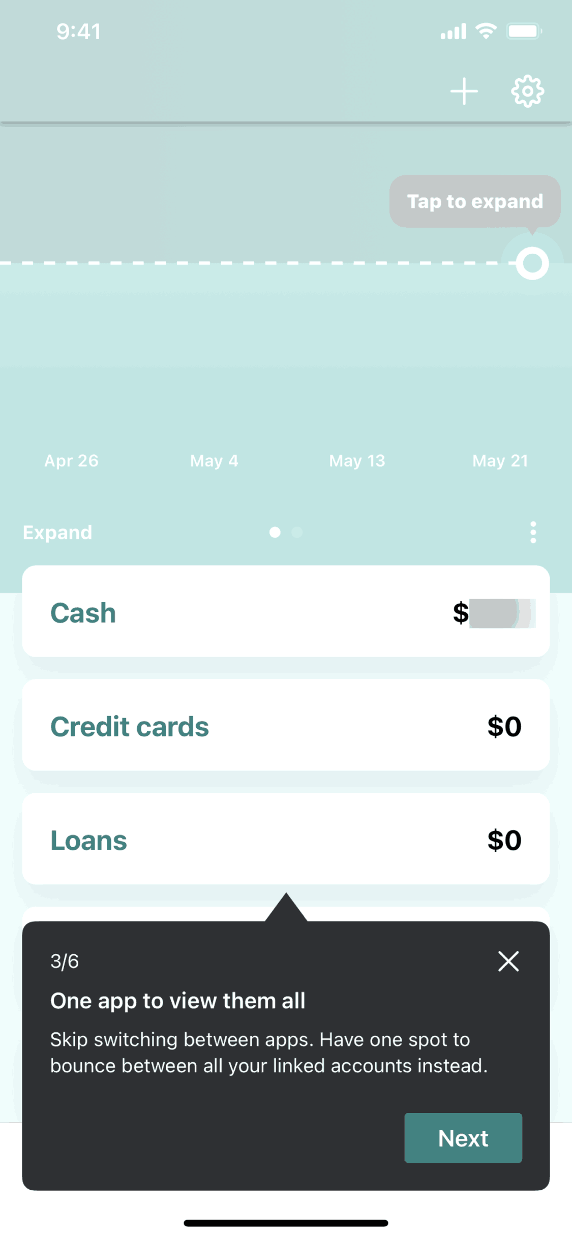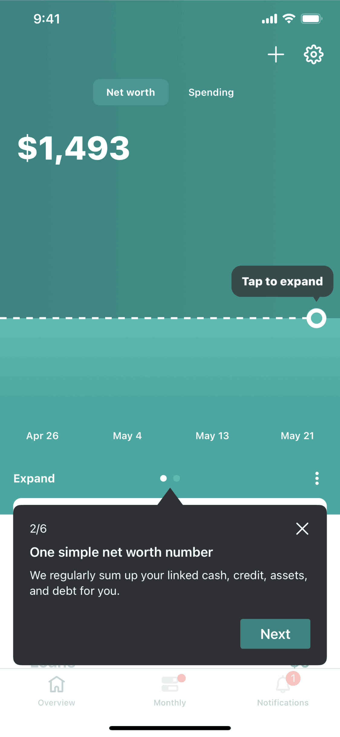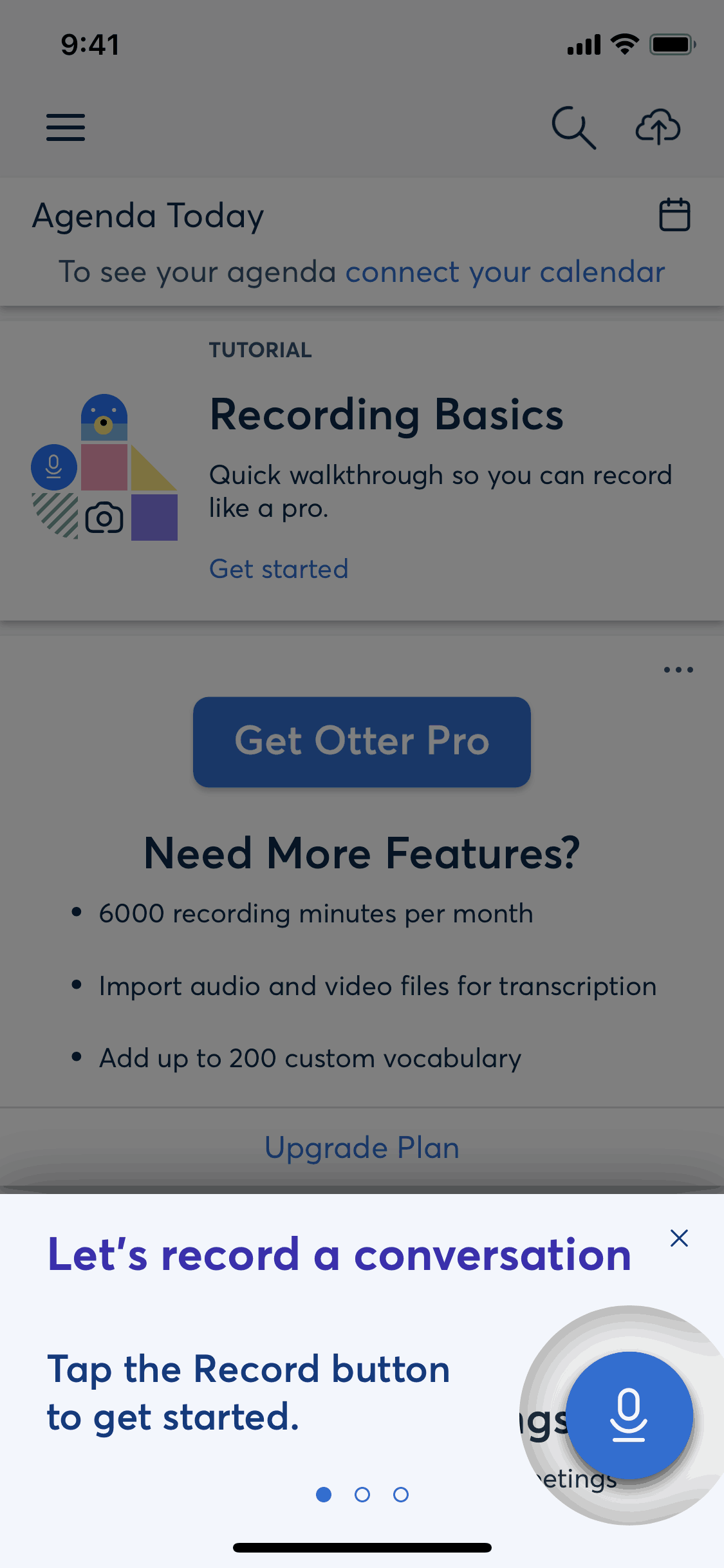 The user goes through an onboarding flow introducing key features. The flow concludes by presenting the main interface.