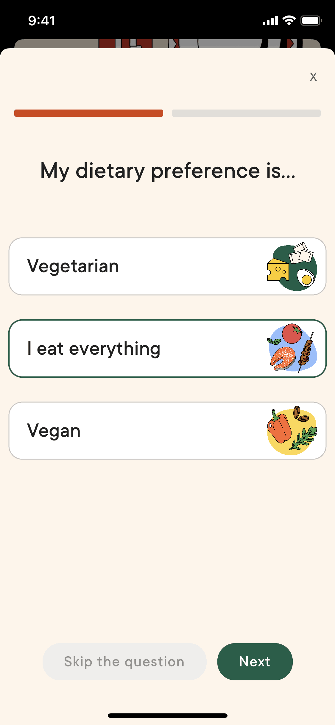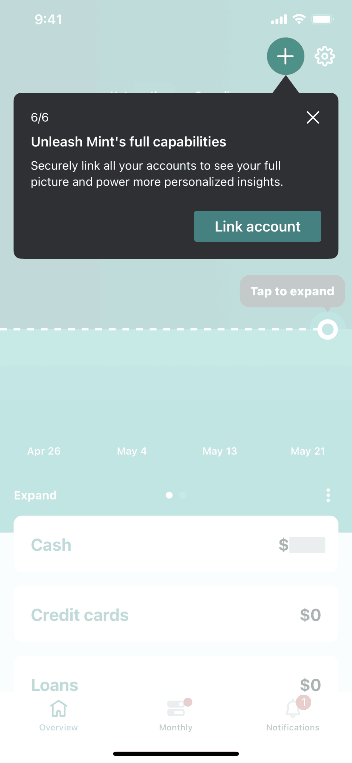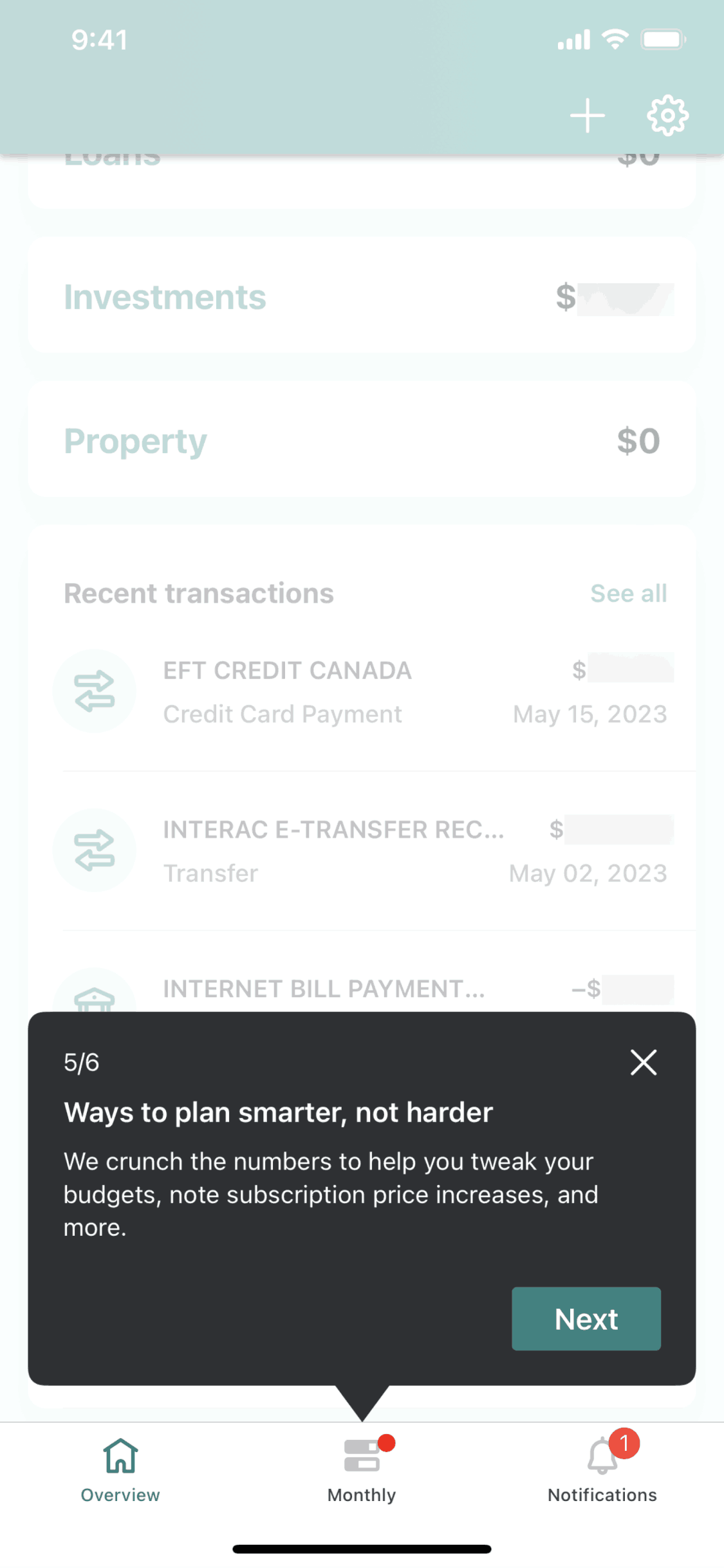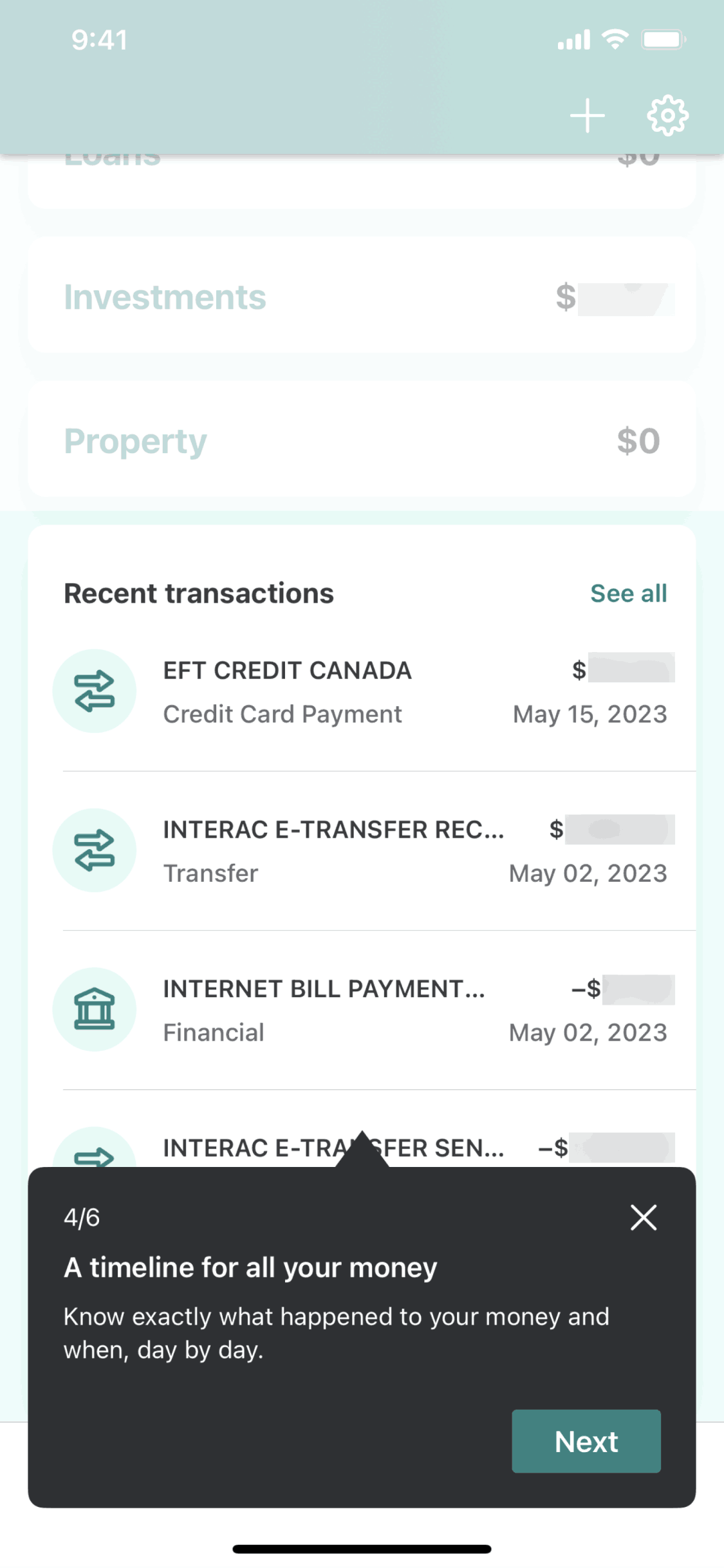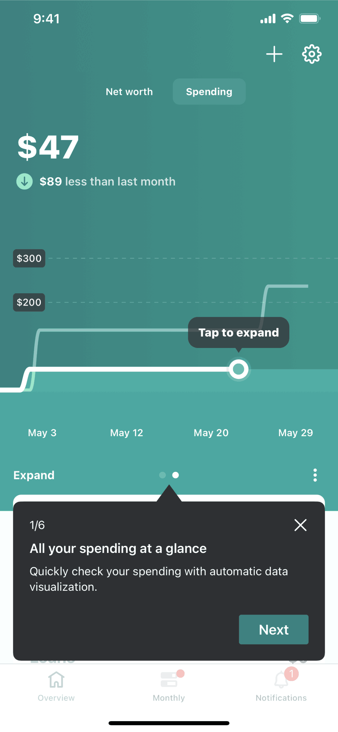 The user goes through an onboarding flow introducing key features. The flow concludes by presenting the main interface.