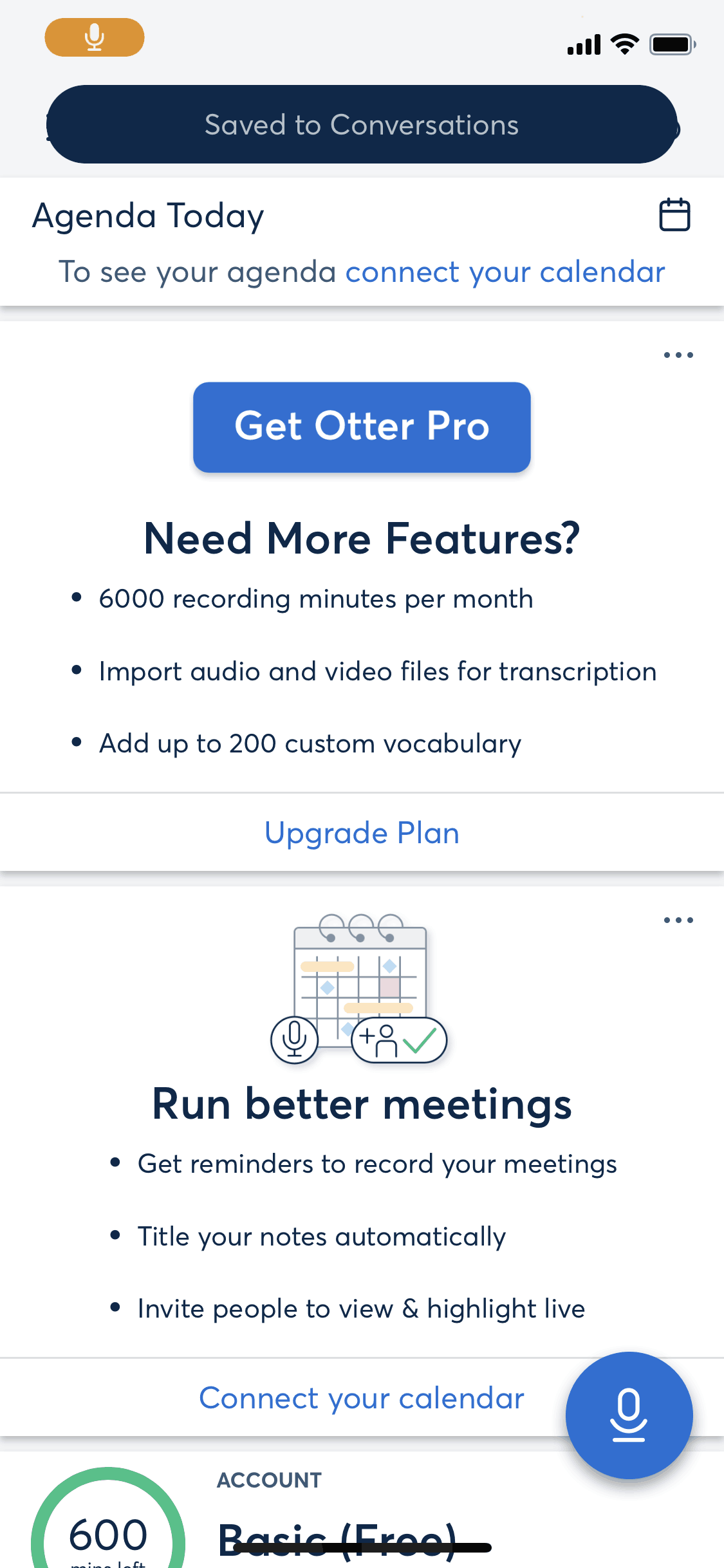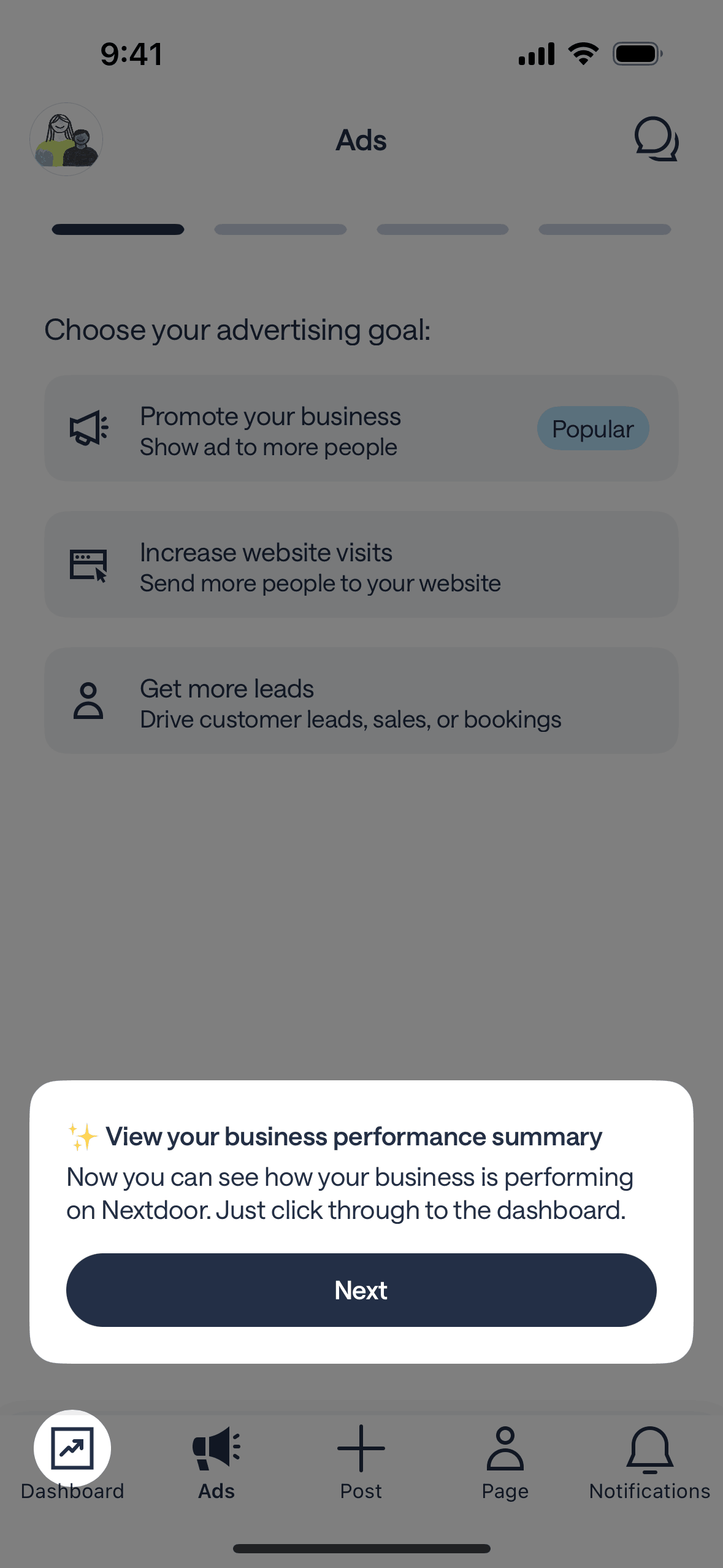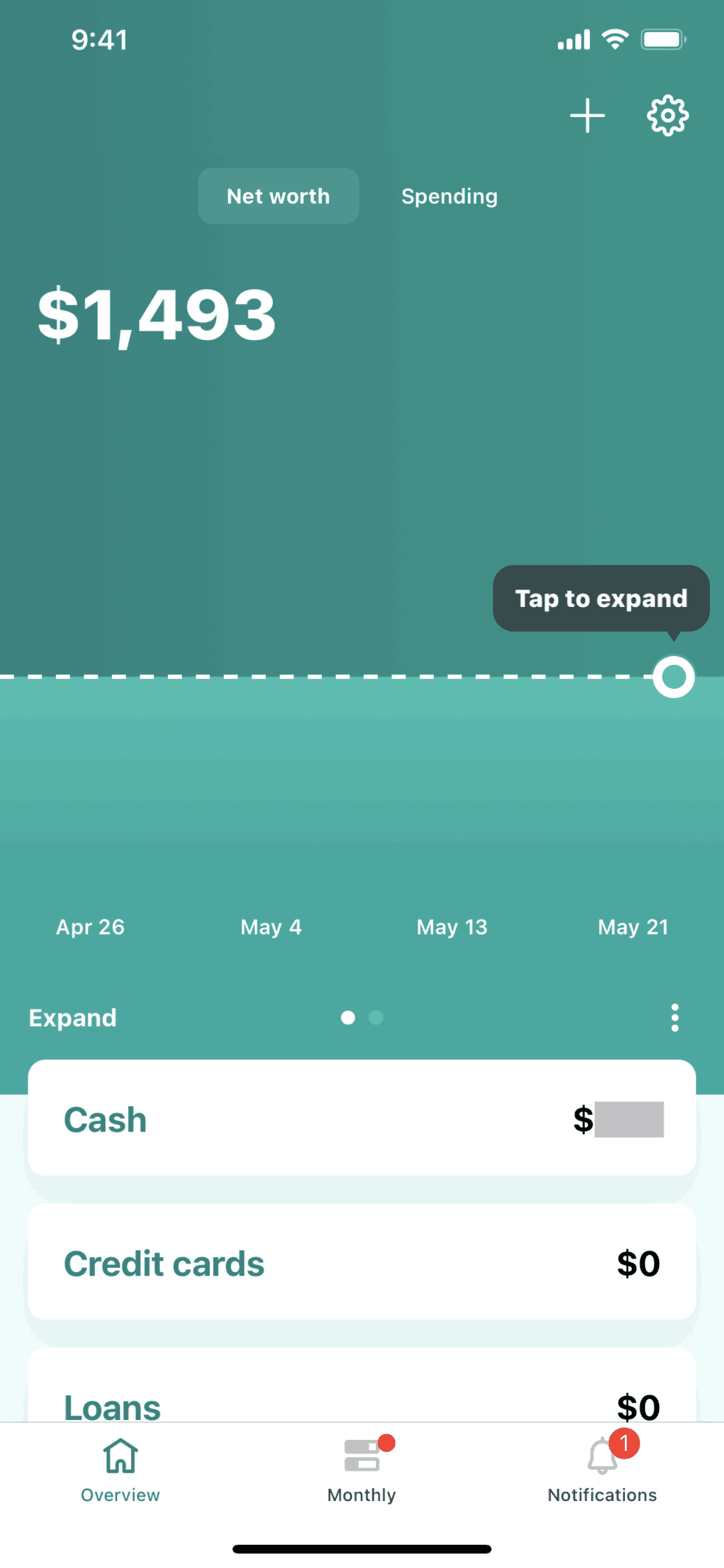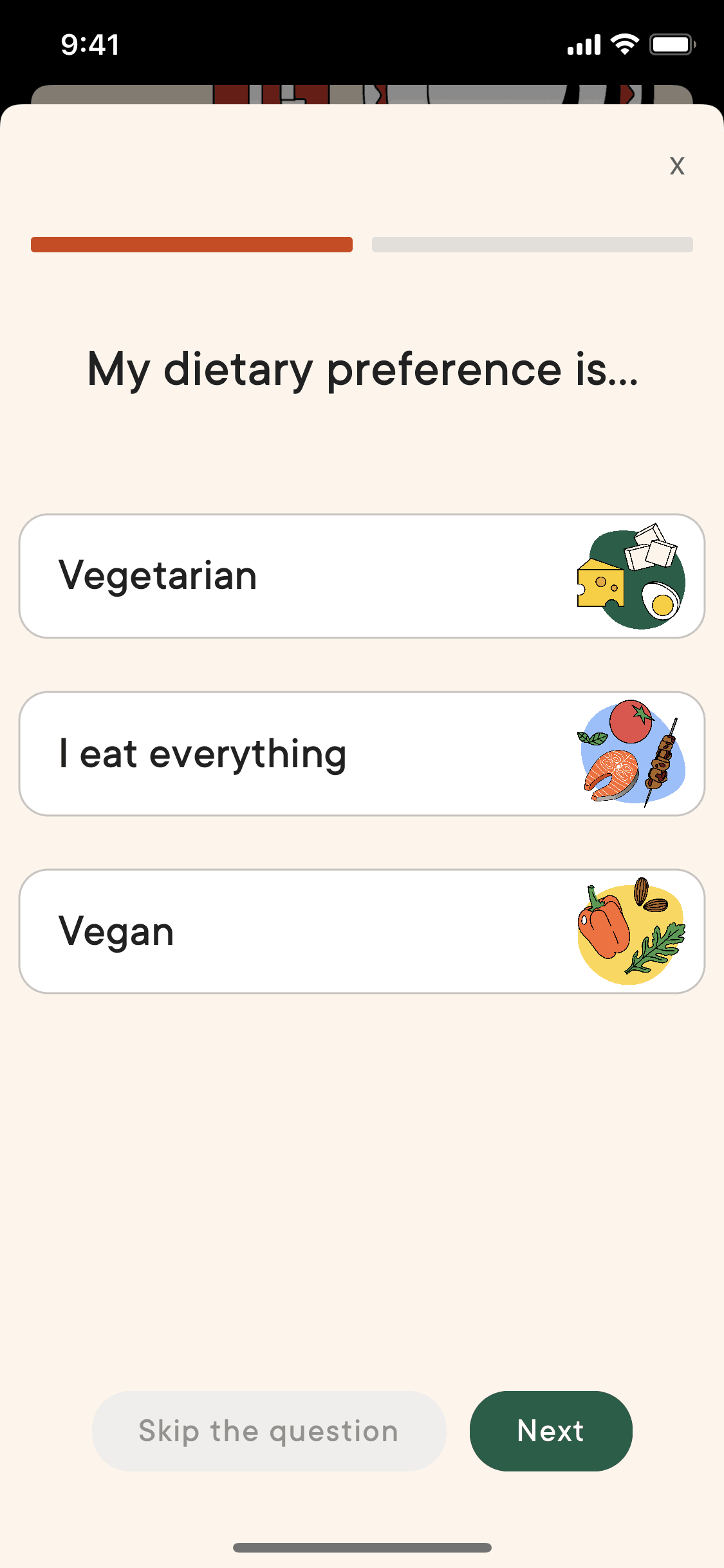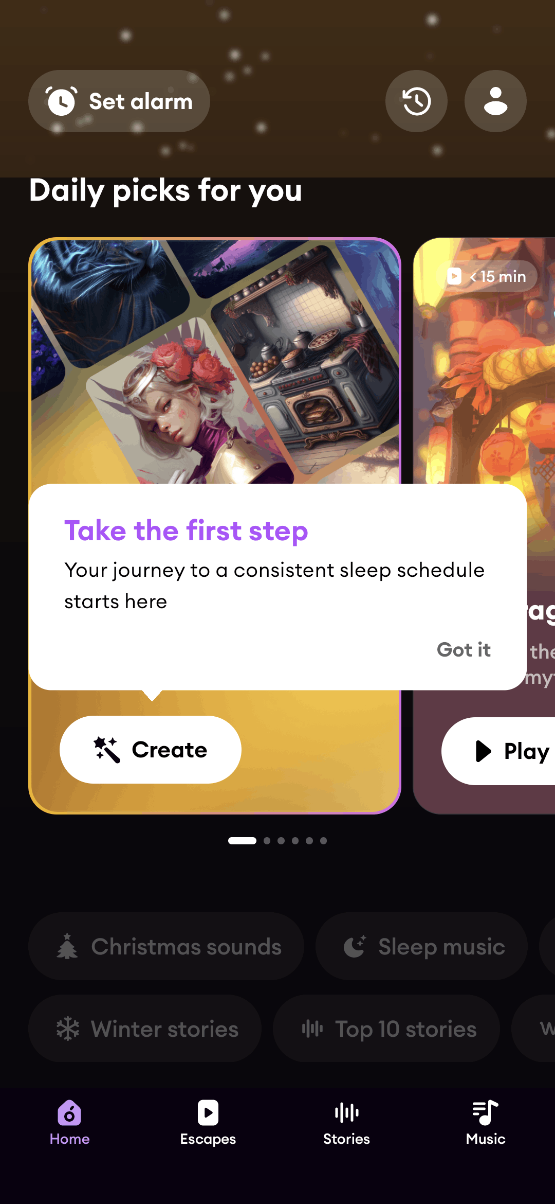 The user goes through an onboarding flow introducing key features. The flow concludes by presenting the main interface.