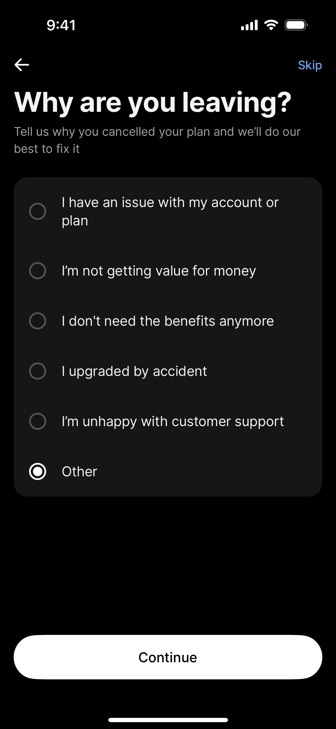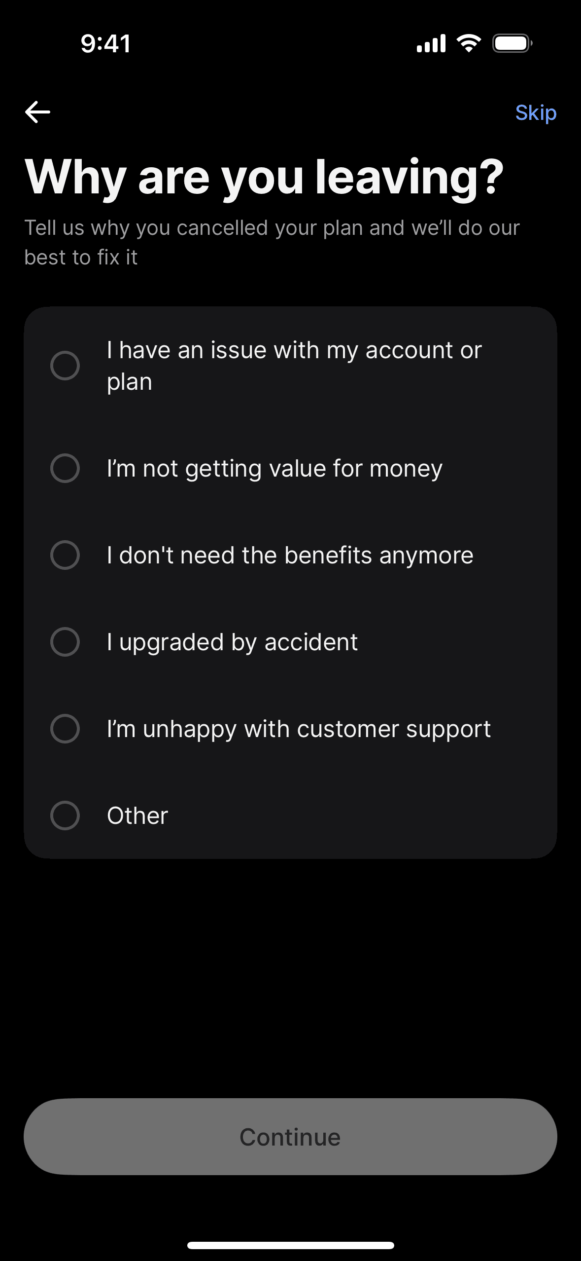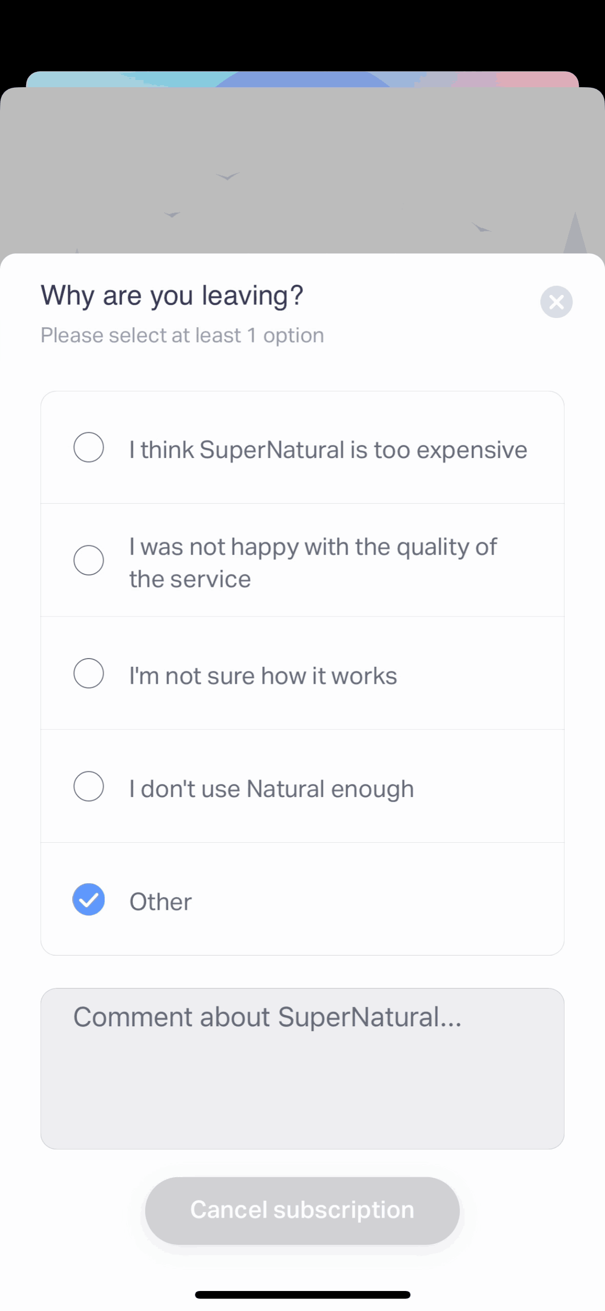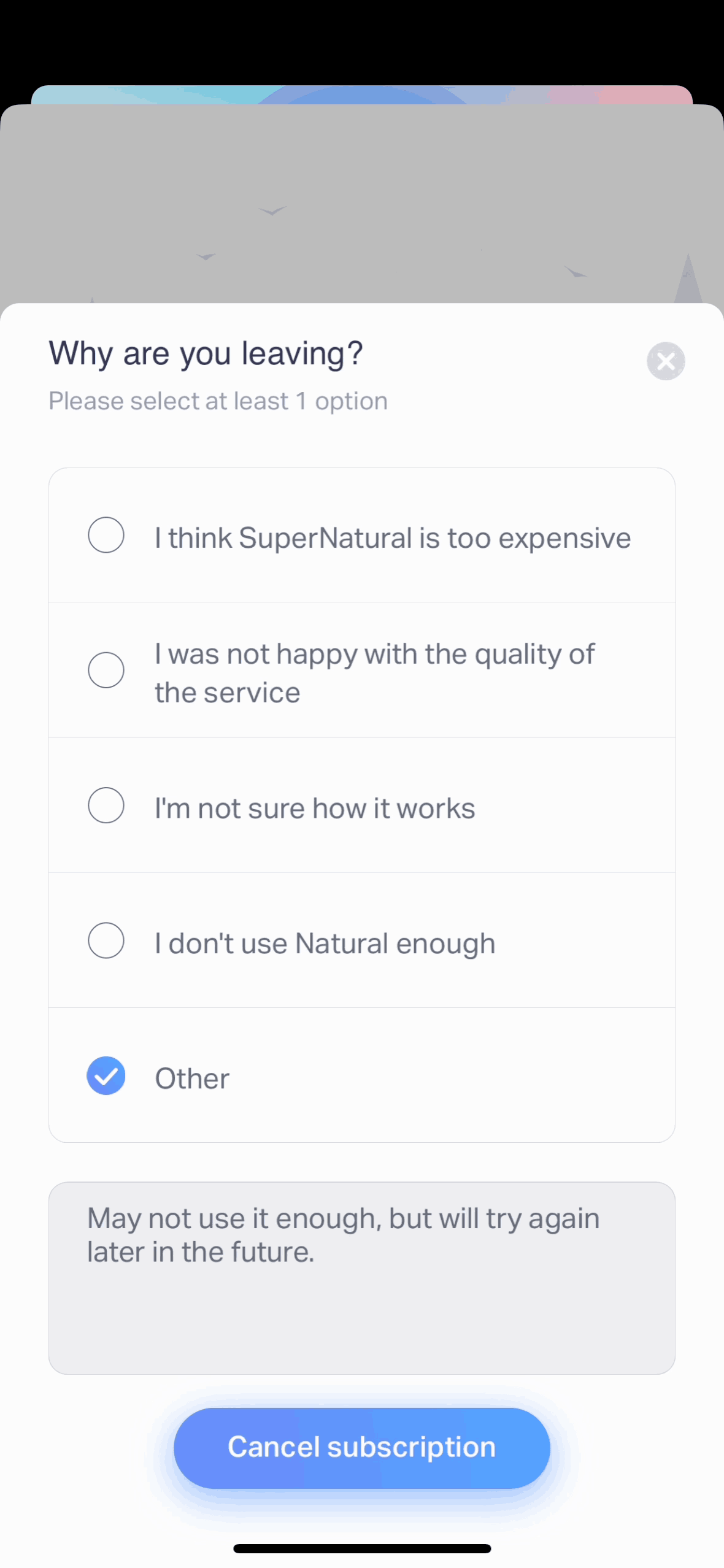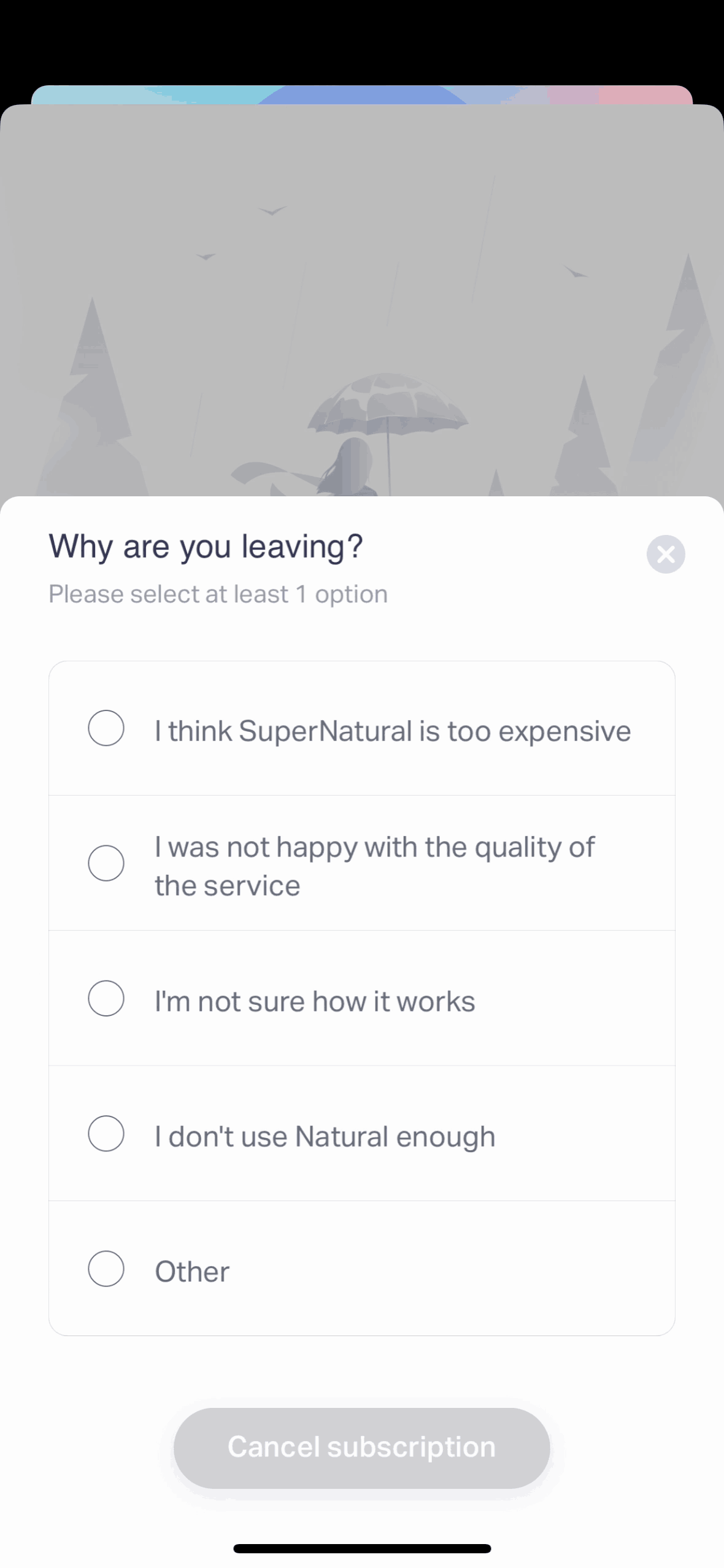 Discover best mobile app designs for Canceling Subscription flows. Get inspired by the best apps in the world.