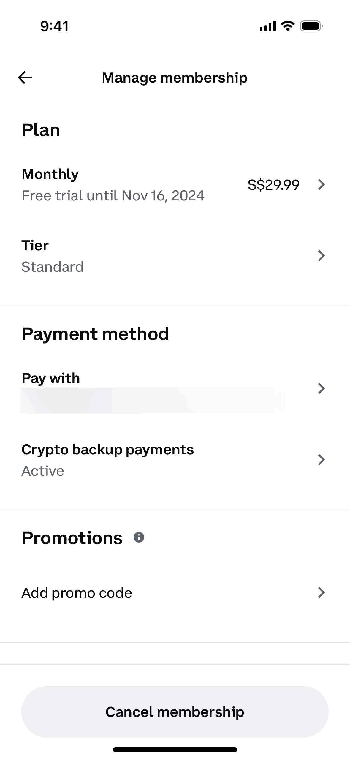 Canceling membershipon