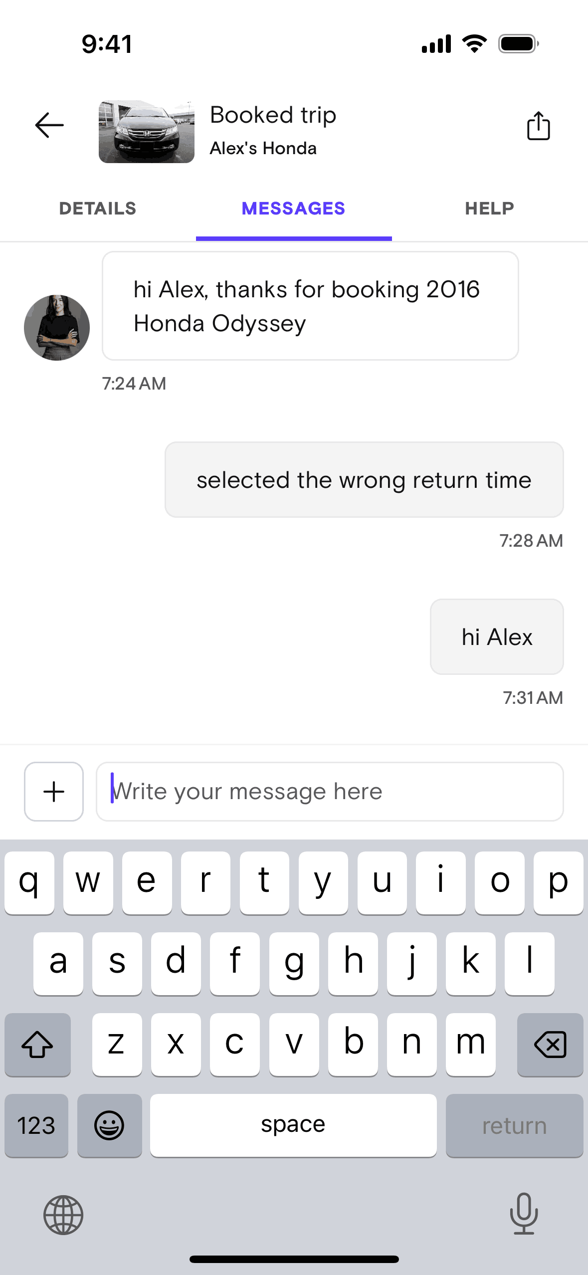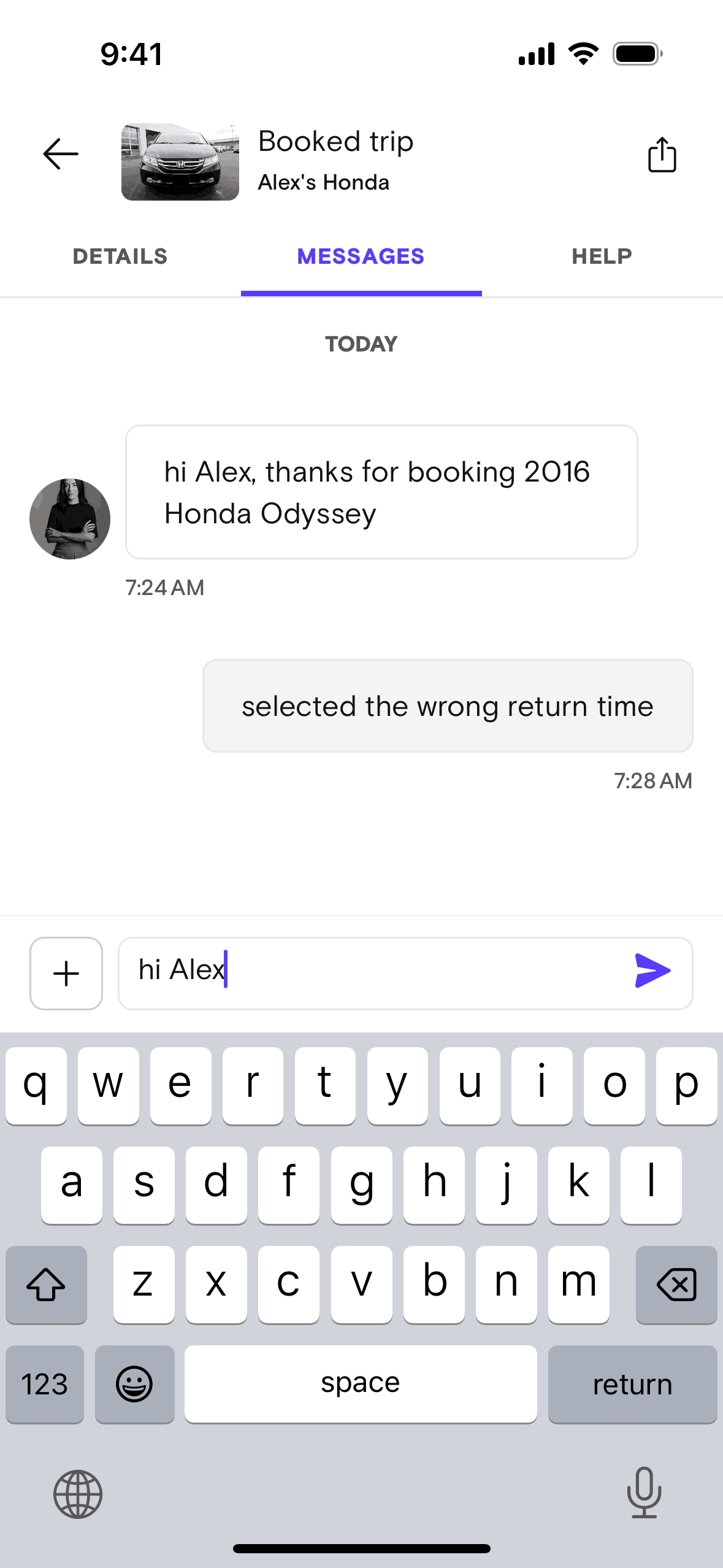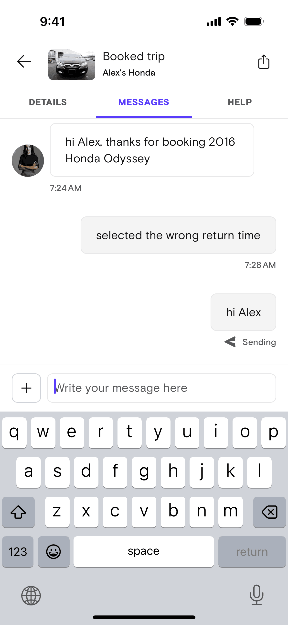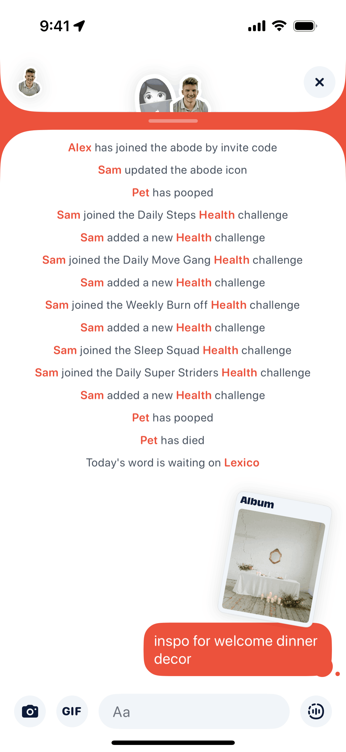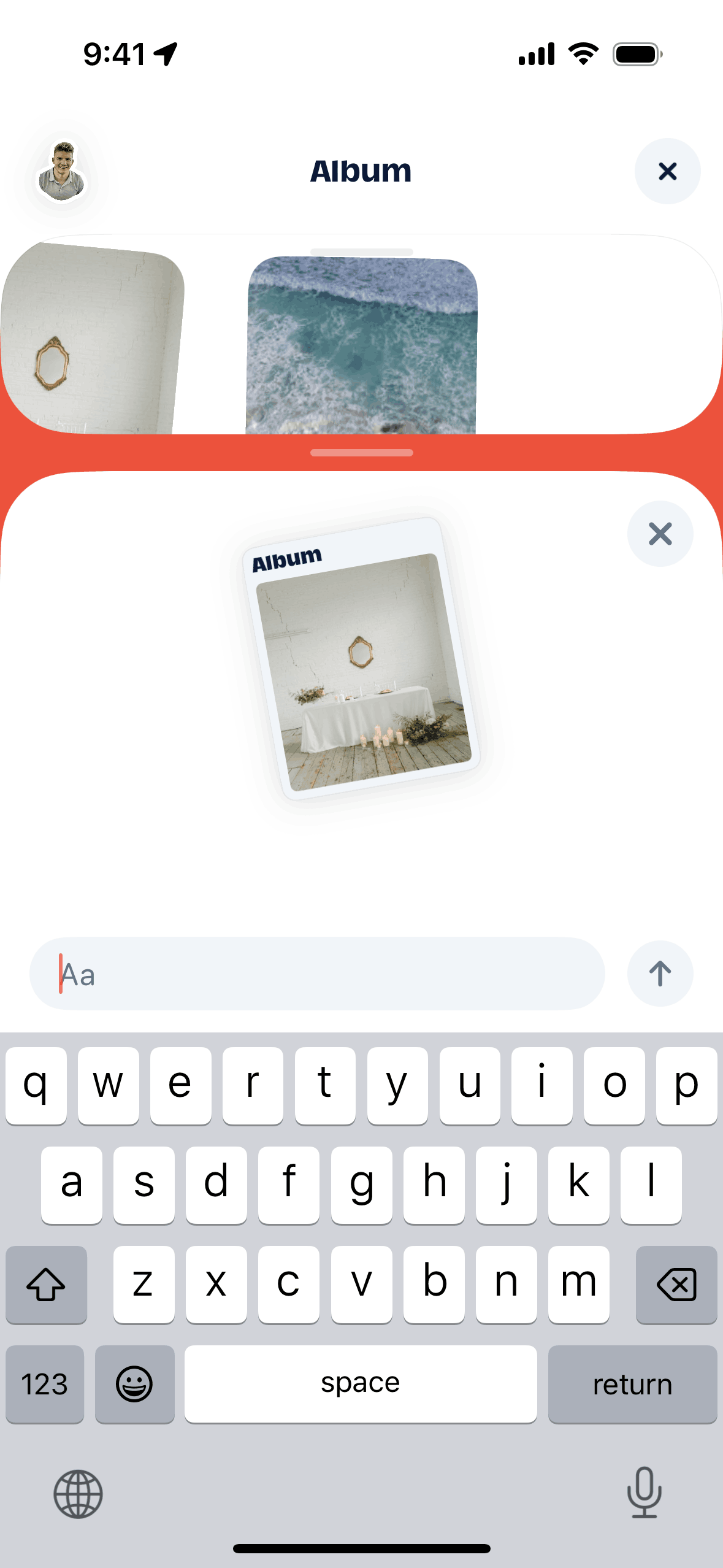The user composes and sends a message with text, image, and GIF. The recipient then responds with multiple messages.