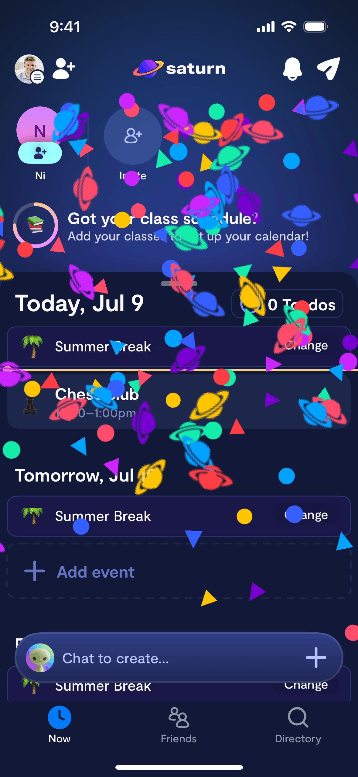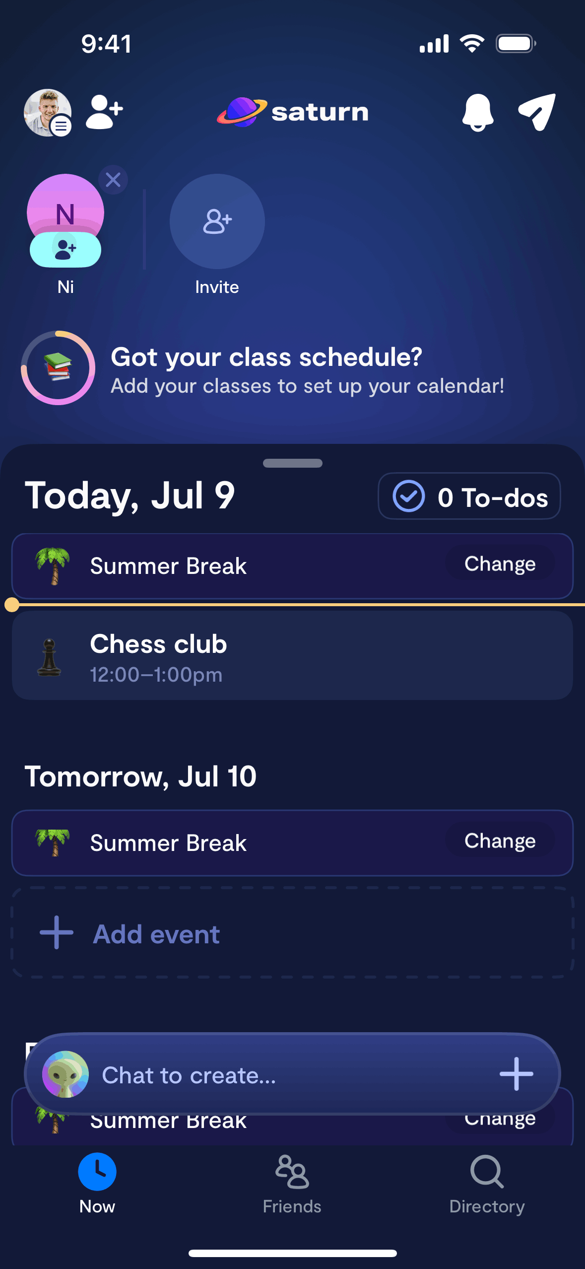 The user adds an event to their calendar by interacting with a chat bot. The bot processes the user's input and adds the event.