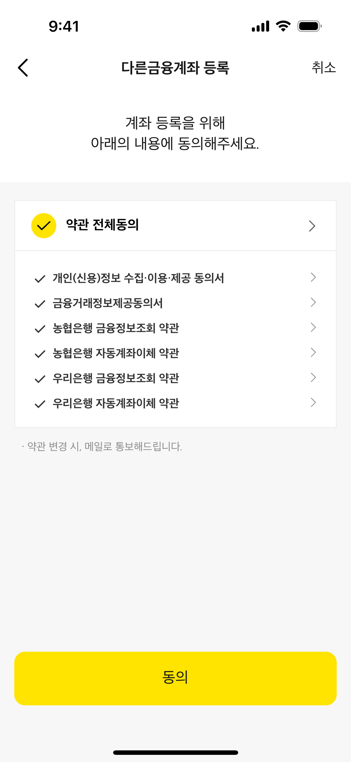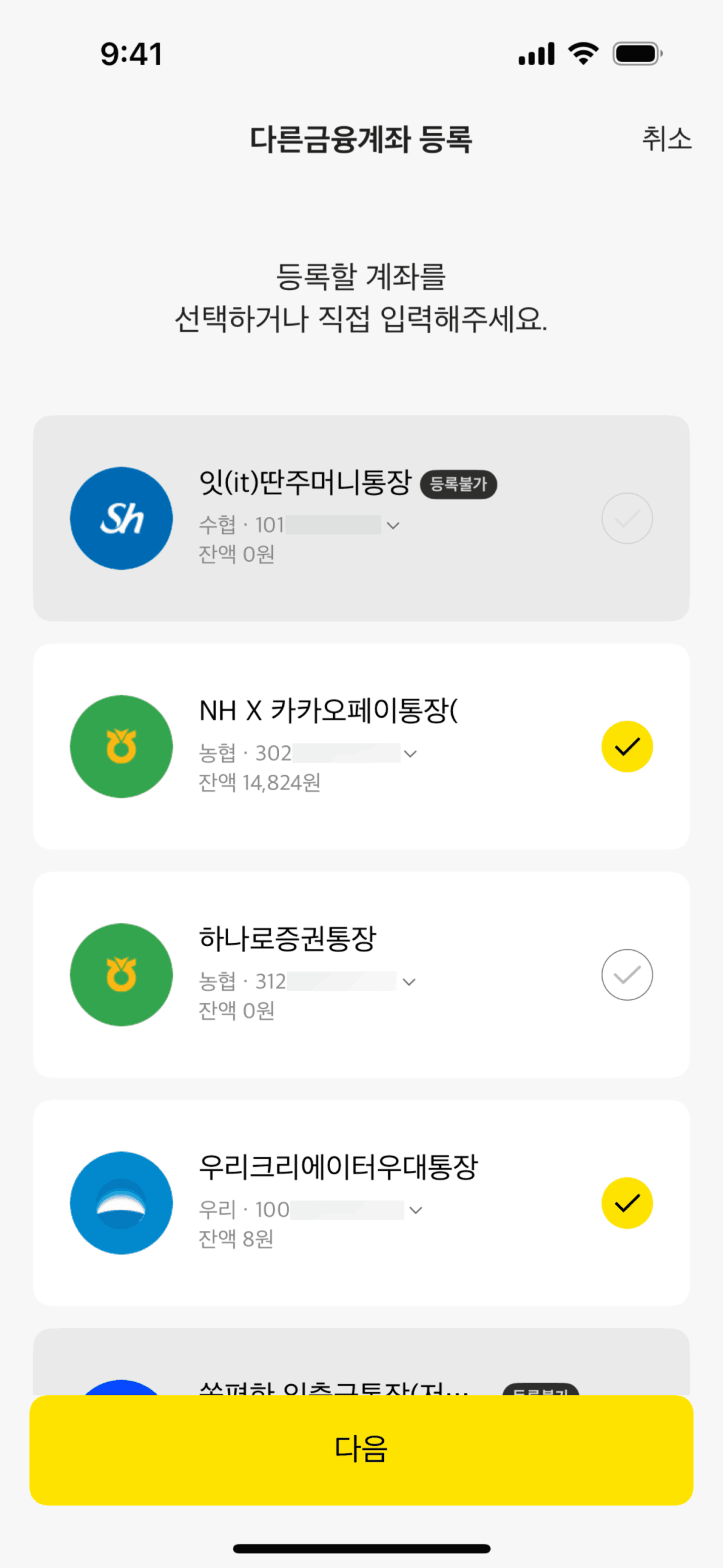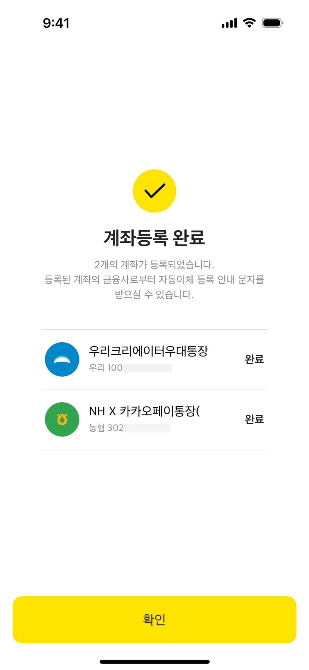 The user navigates through settings to connect their Kakao account. After connecting, the user is presented with the option to disconnect.