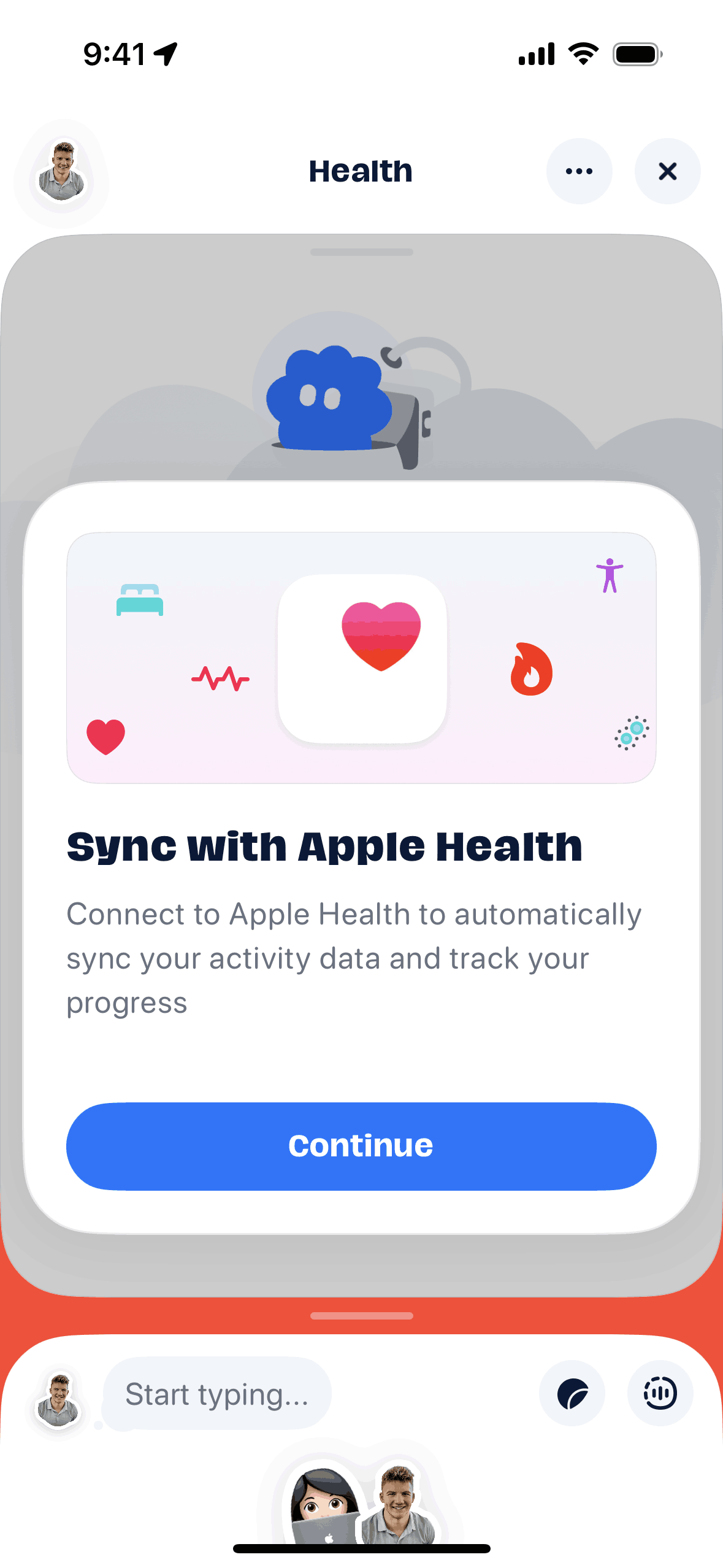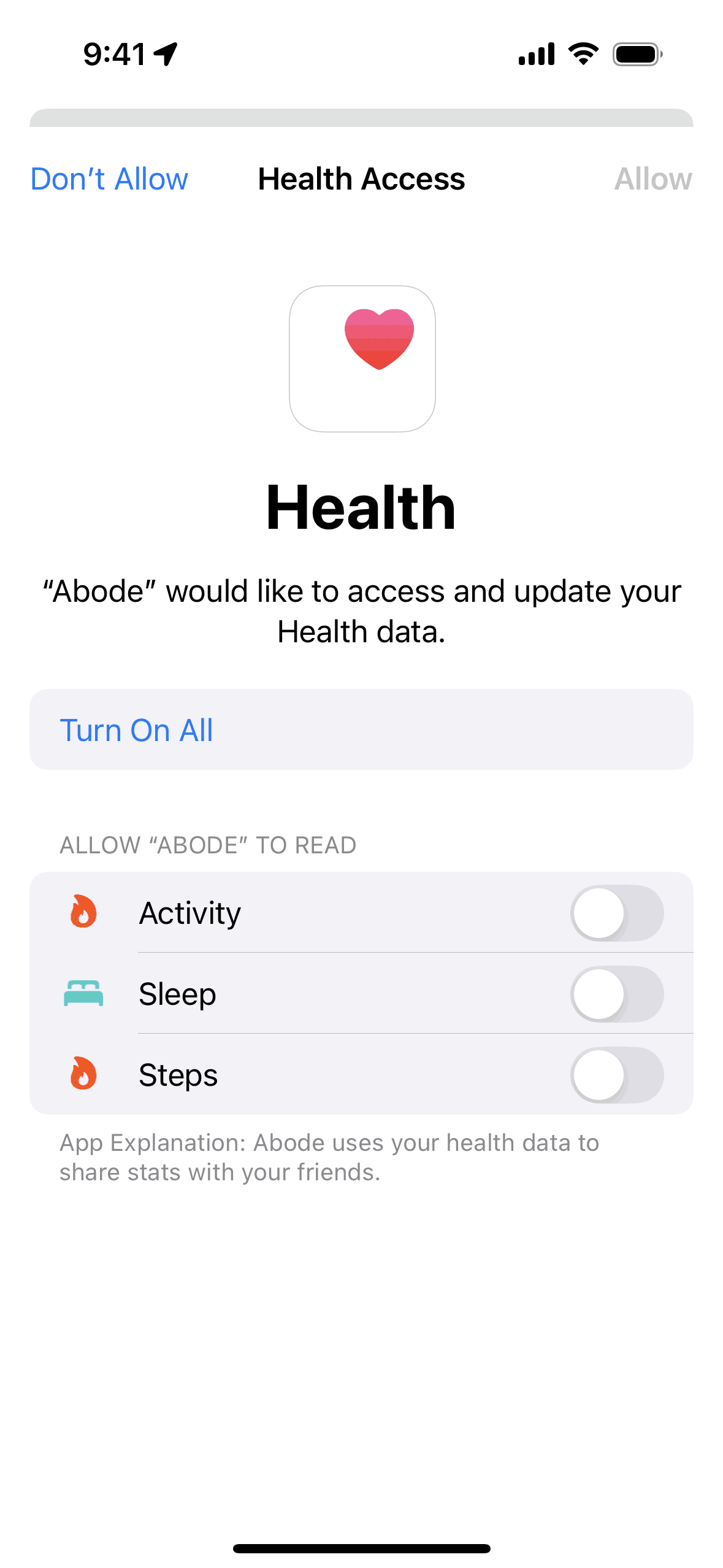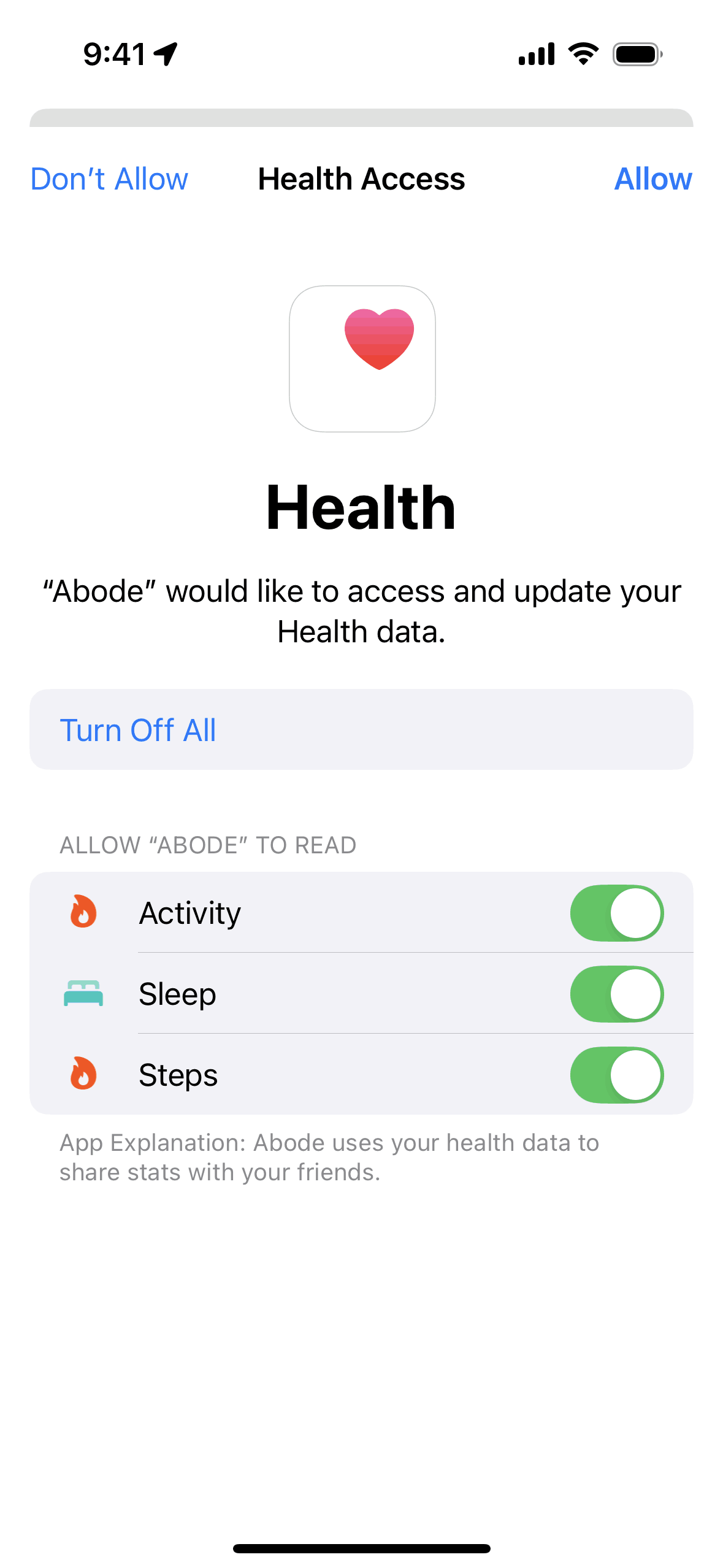 The user flow demonstrates linking with Apple Health. It involves granting permissions and viewing the health dashboard.