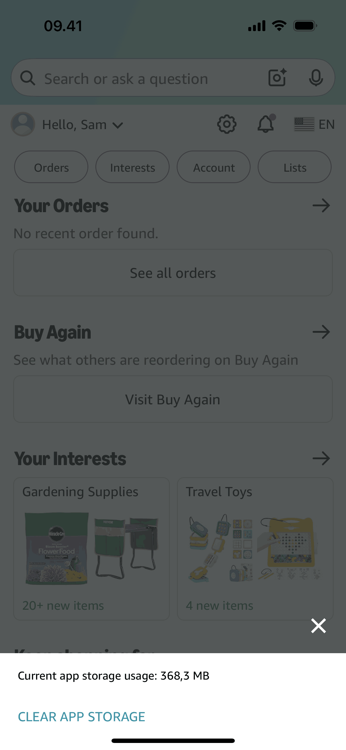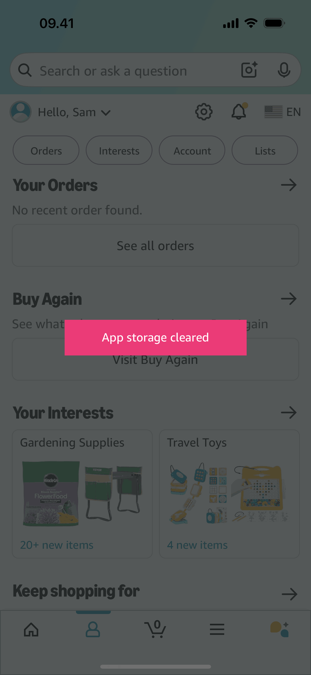 The user navigates to app settings, clears the app's storage, and receives a confirmation. The goal is to free up device storage space.