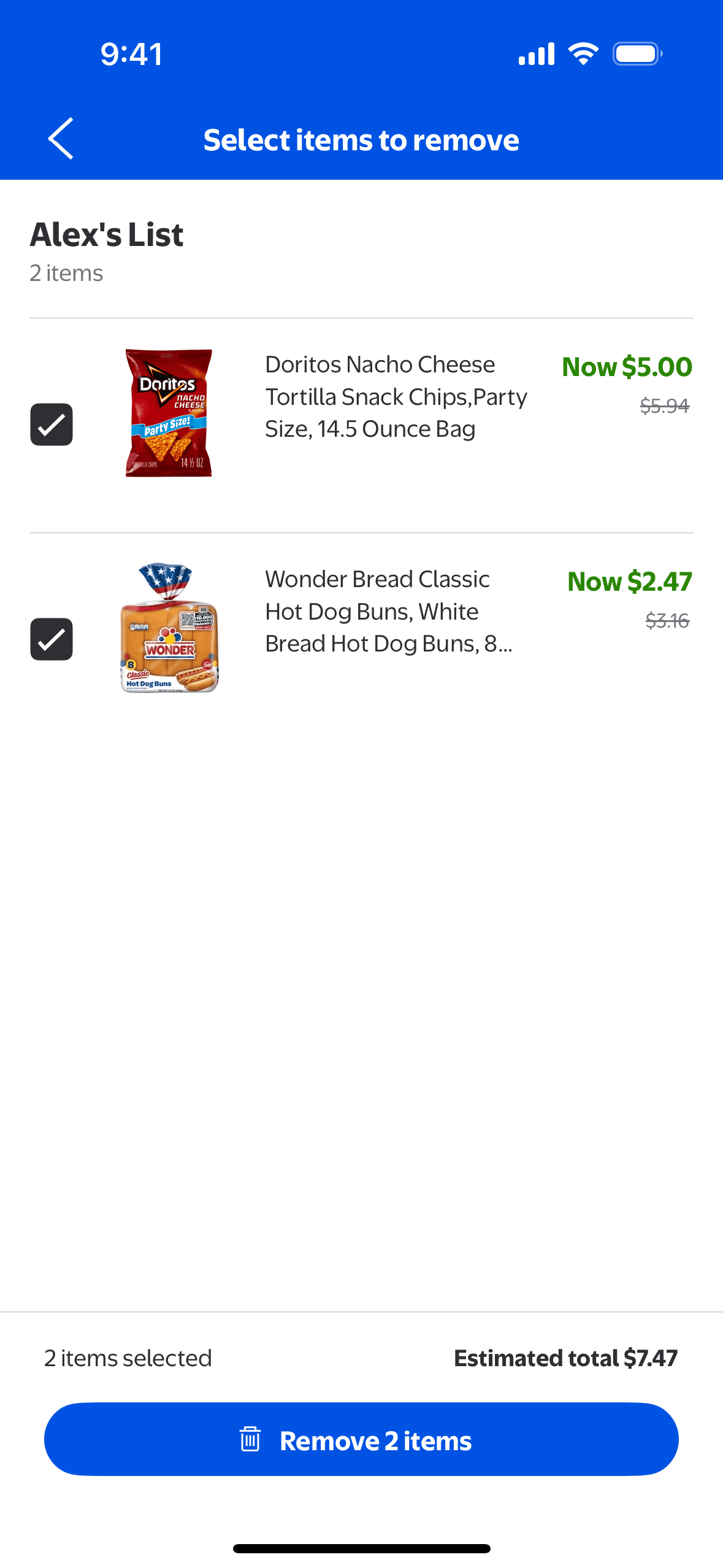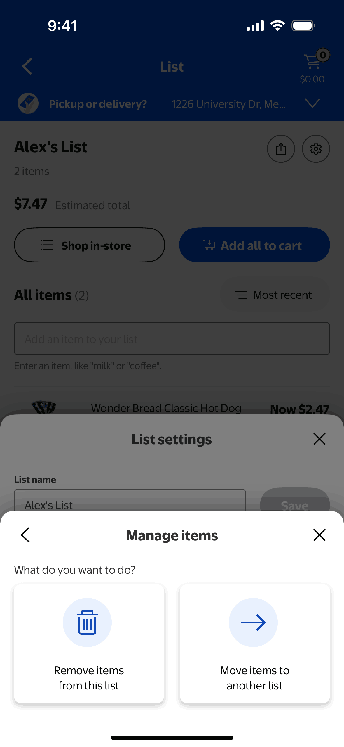 The user selects and removes items from a list, resulting in an empty list. The flow demonstrates how to delete items.