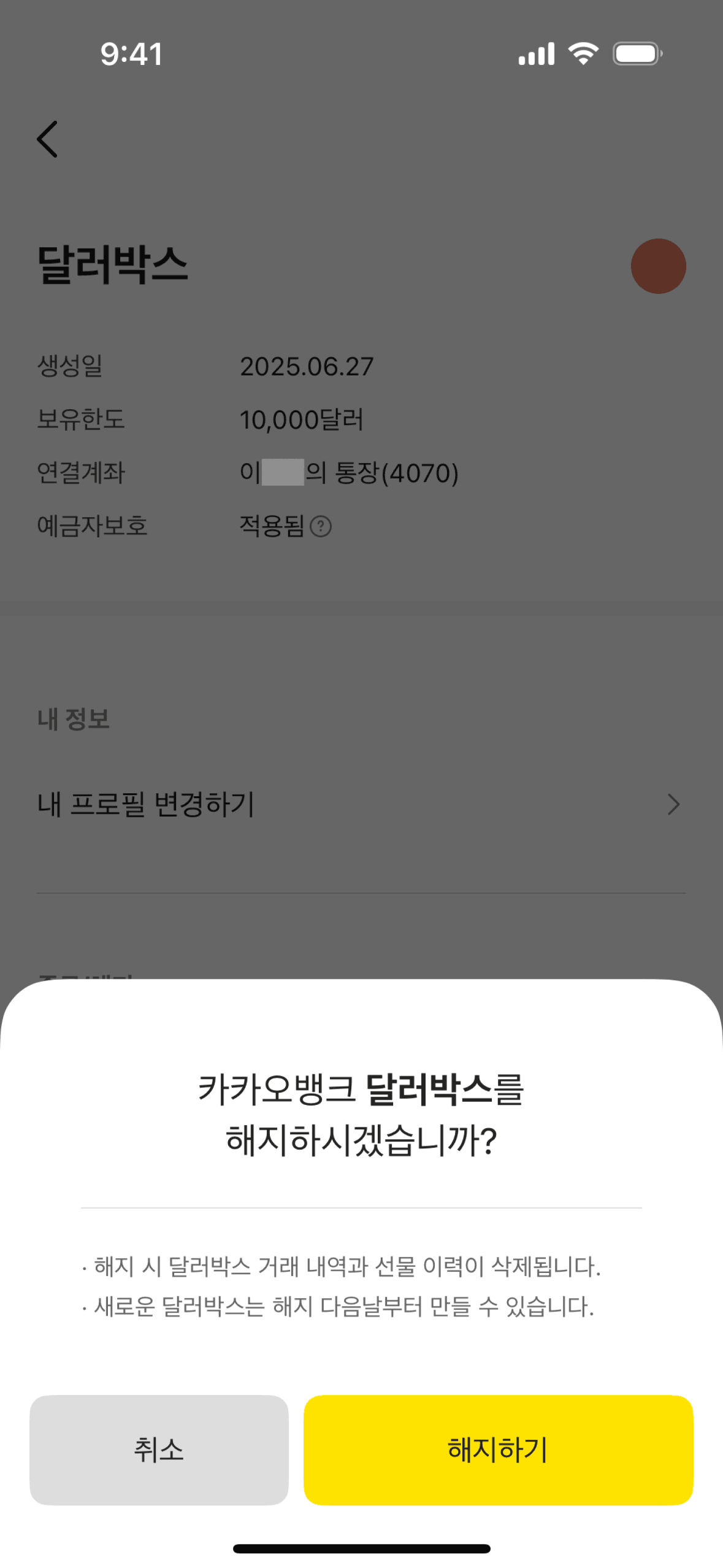 The user flow demonstrates closing a dollar box account. It involves confirming the closure, entering the PIN, and receiving a confirmation.