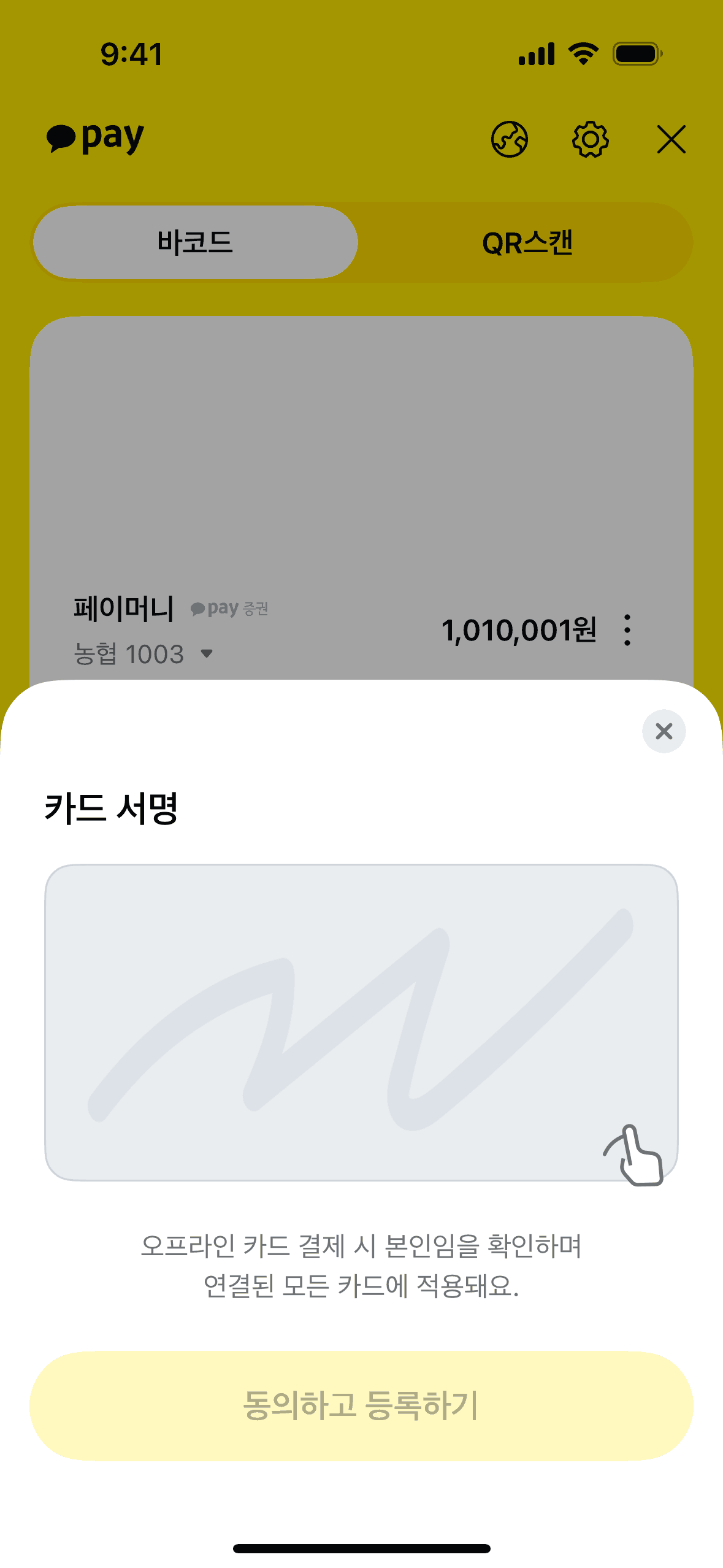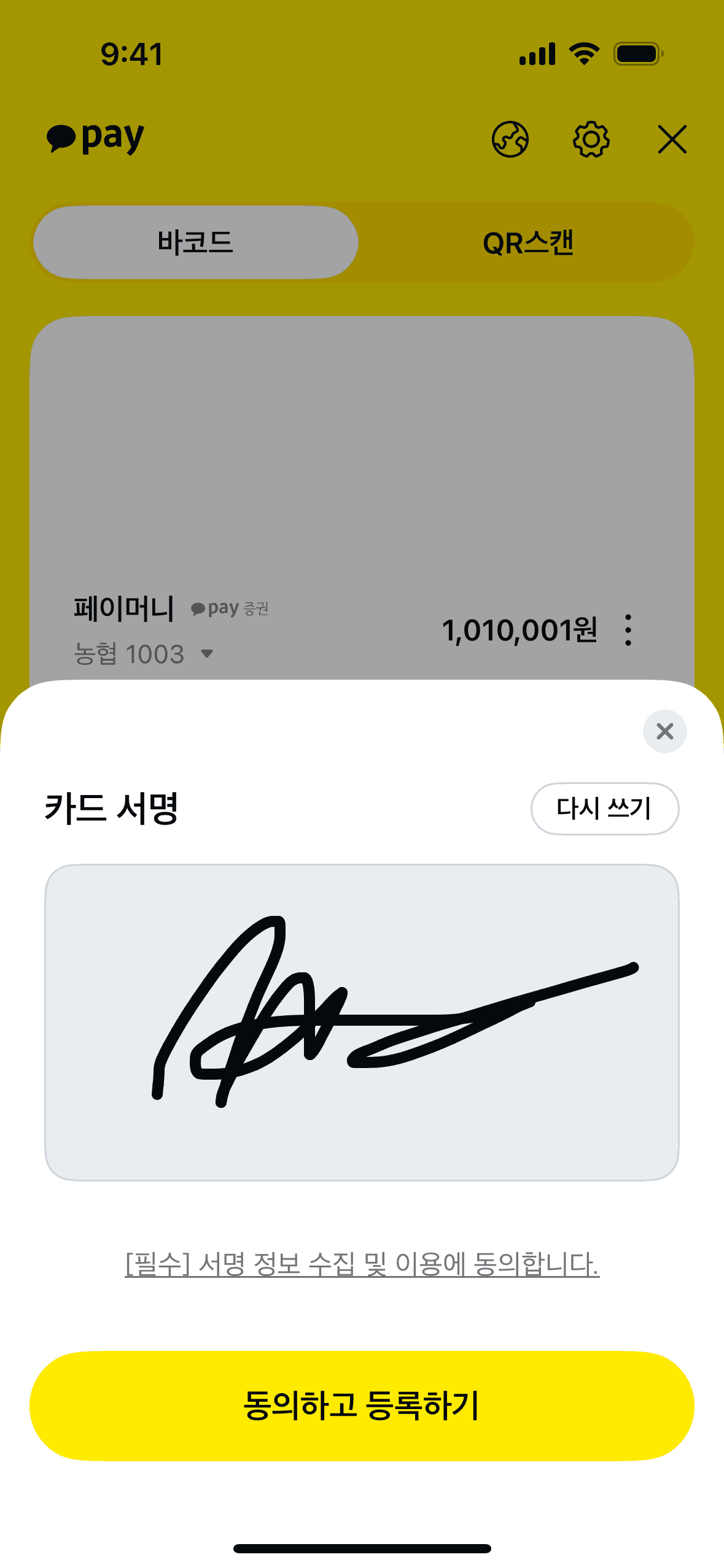 The user navigates to the card signature change option, inputs their signature, and confirms the new signature.