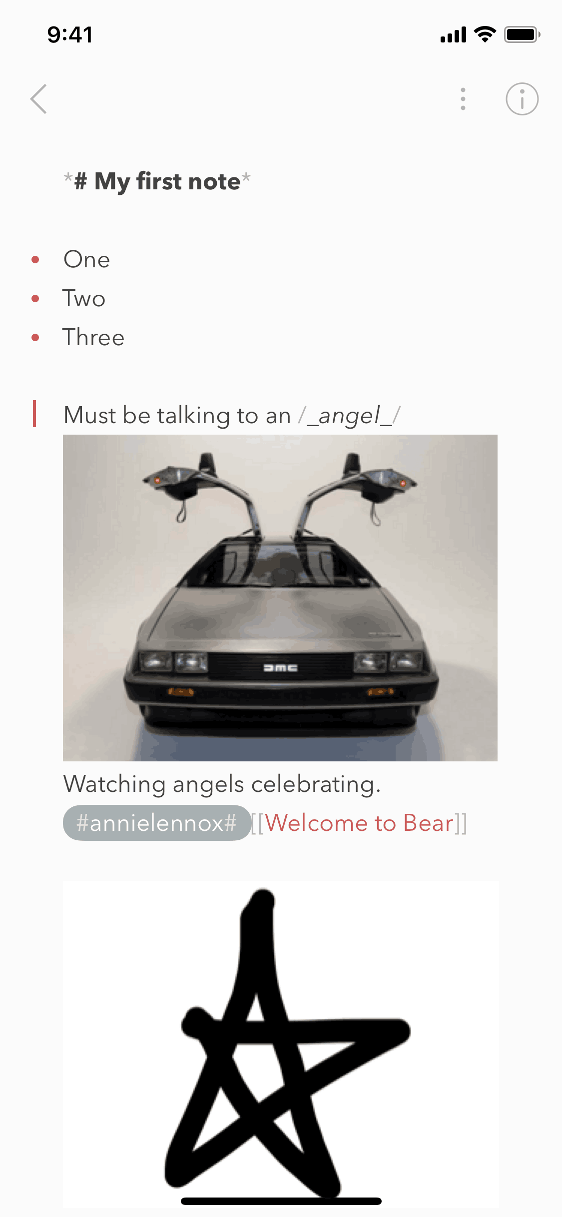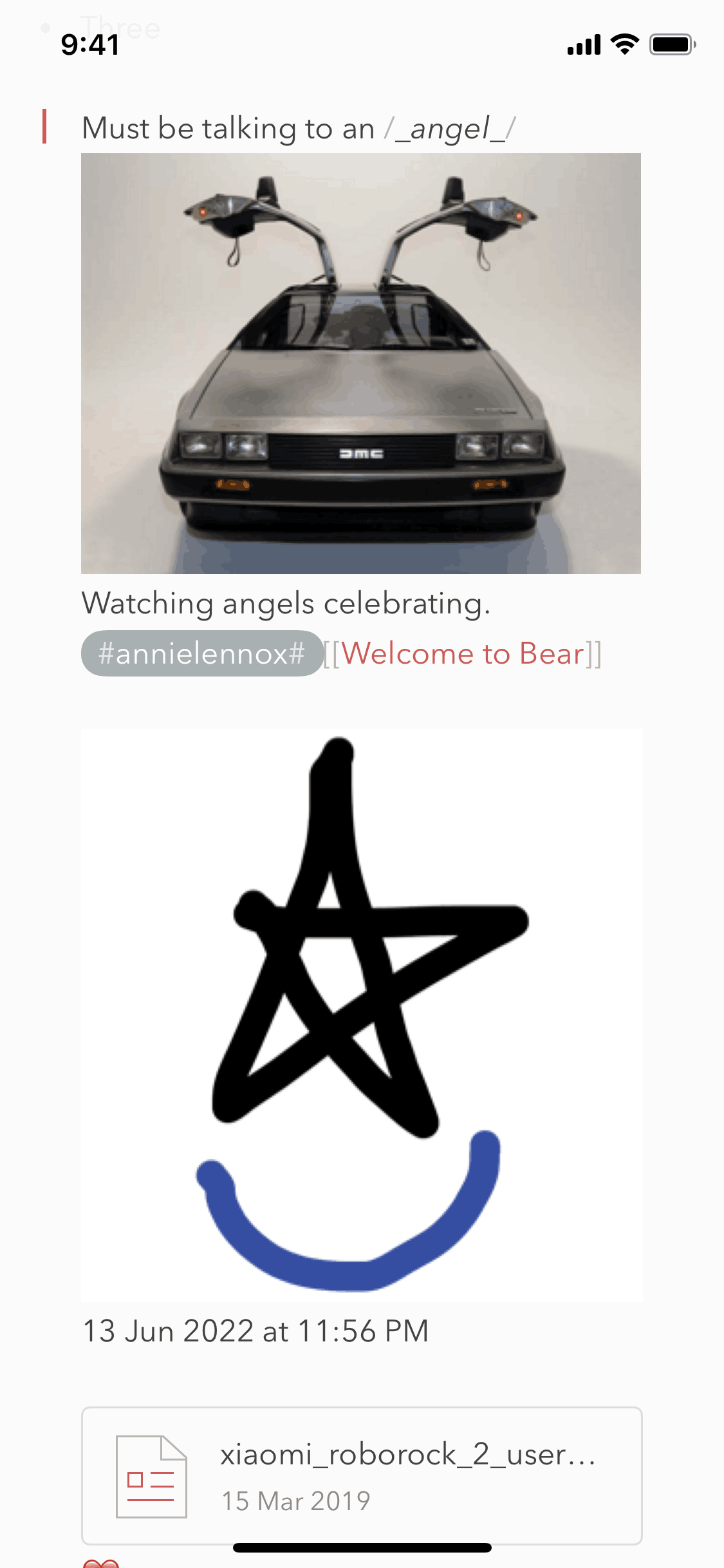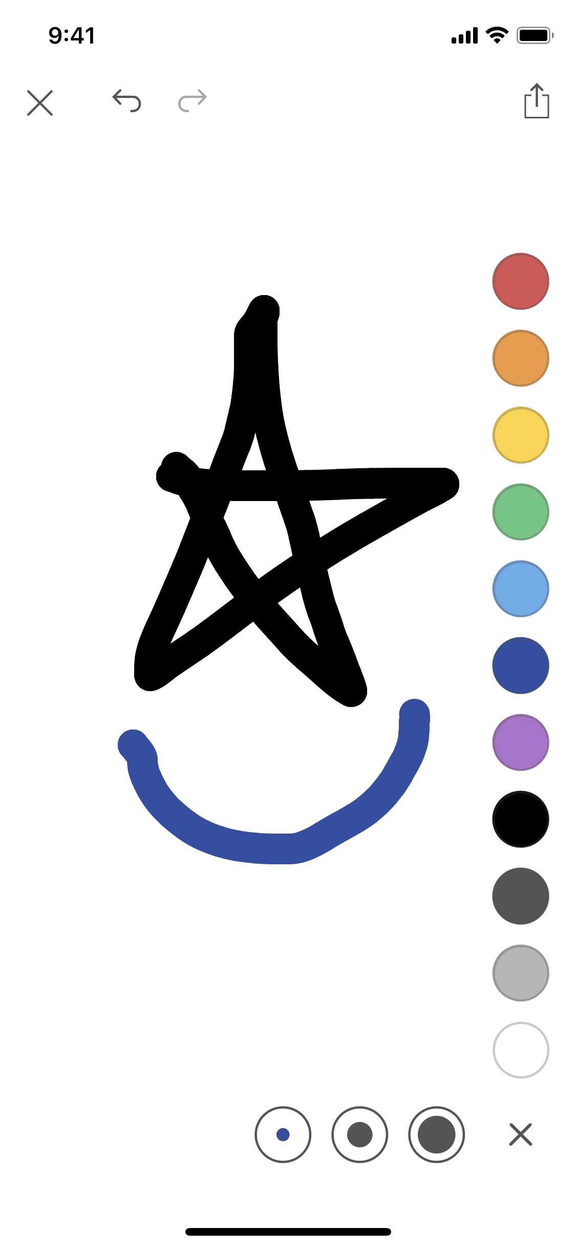 The user opens a drawing from a note, edits it by changing the pen thickness and adding a smile, and then saves the updated drawing back to the note.