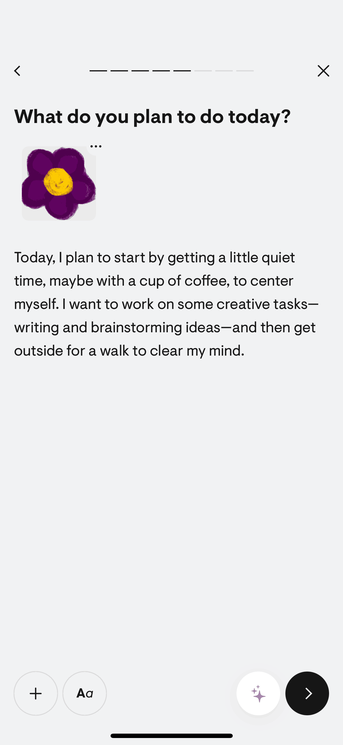 The user creates a sketch and adds it to their daily plan. The flow demonstrates adding visual content to a text-based plan.