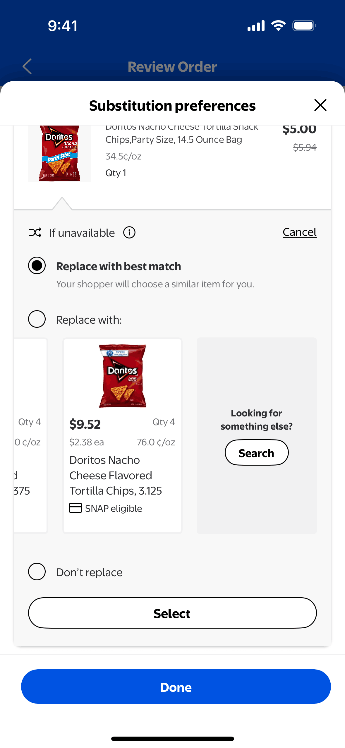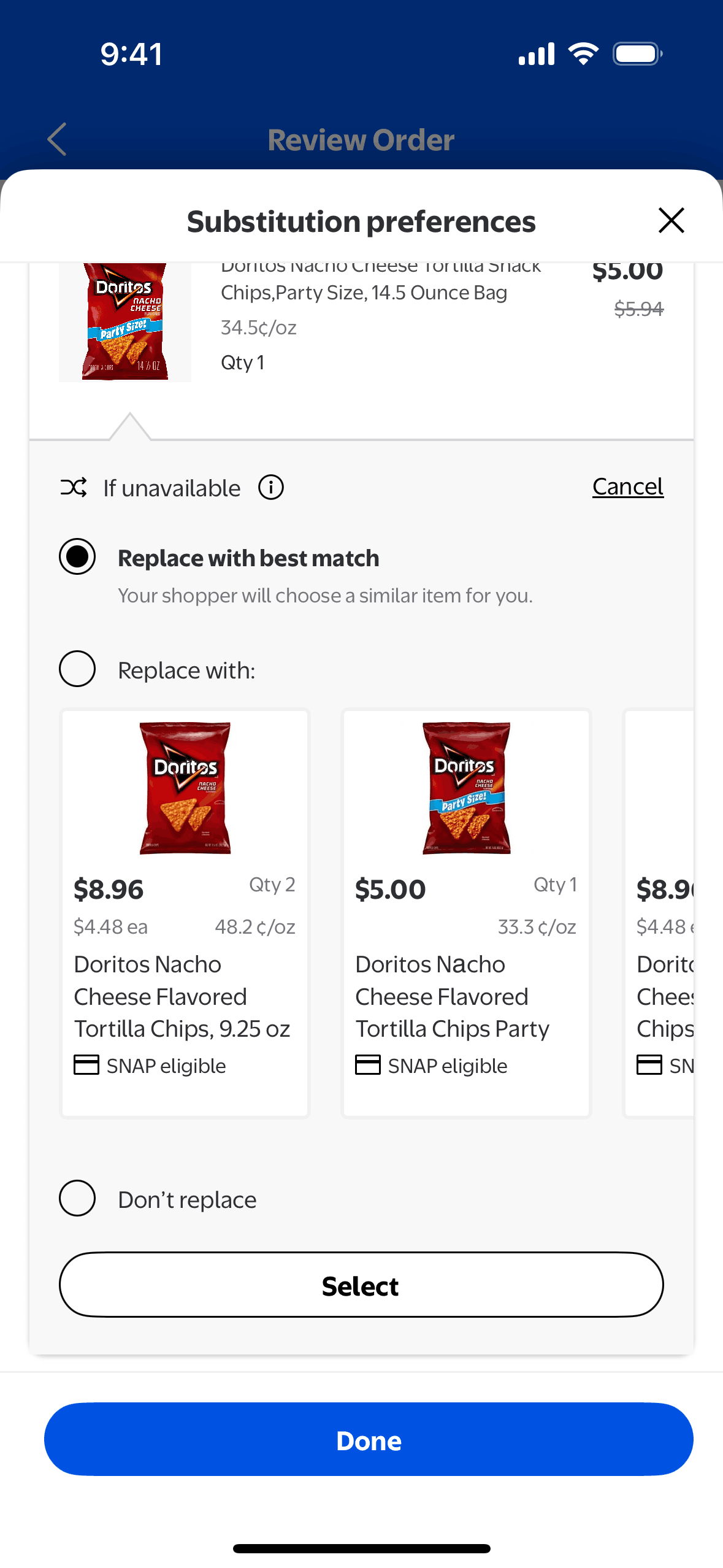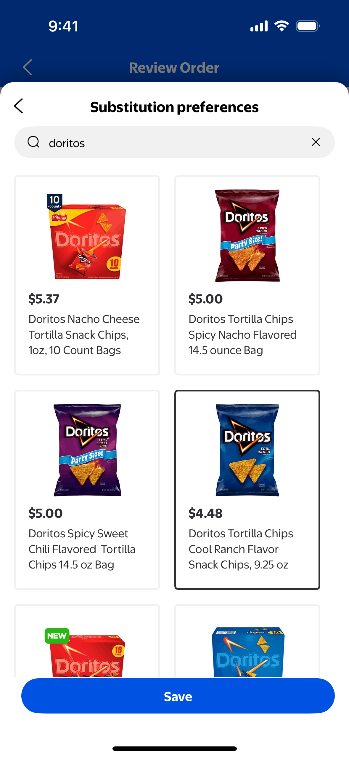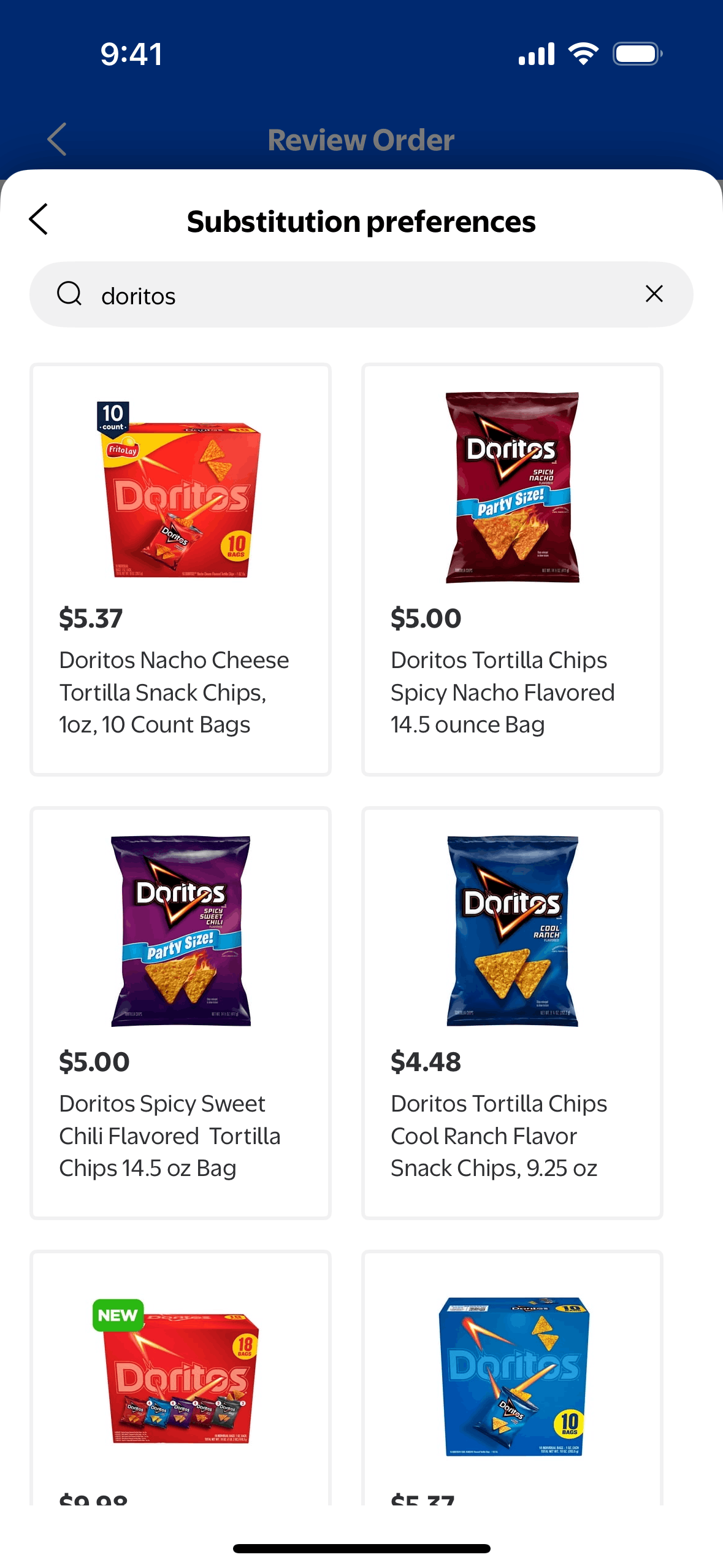 The user flow demonstrates how a user can modify substitution preferences for an order. The user can allow substitutions and select preferred replacement items.