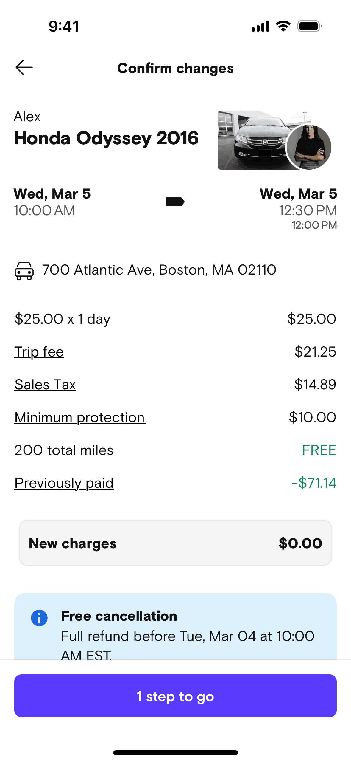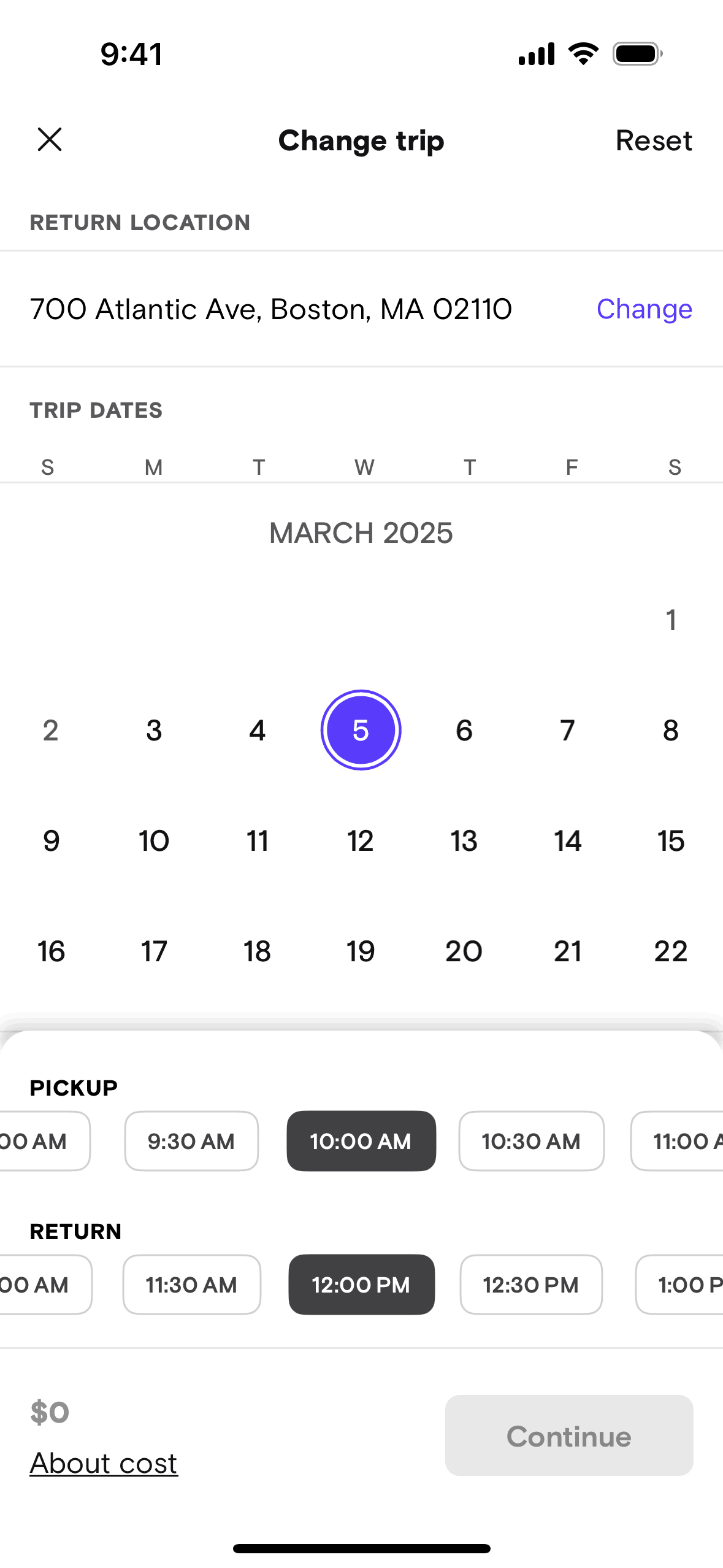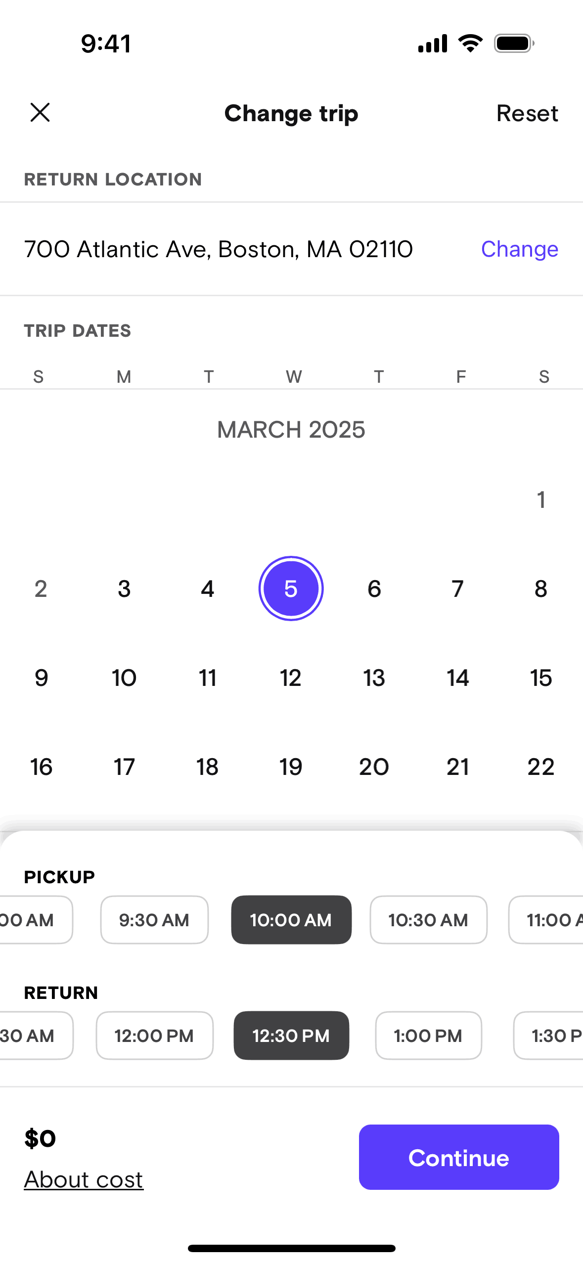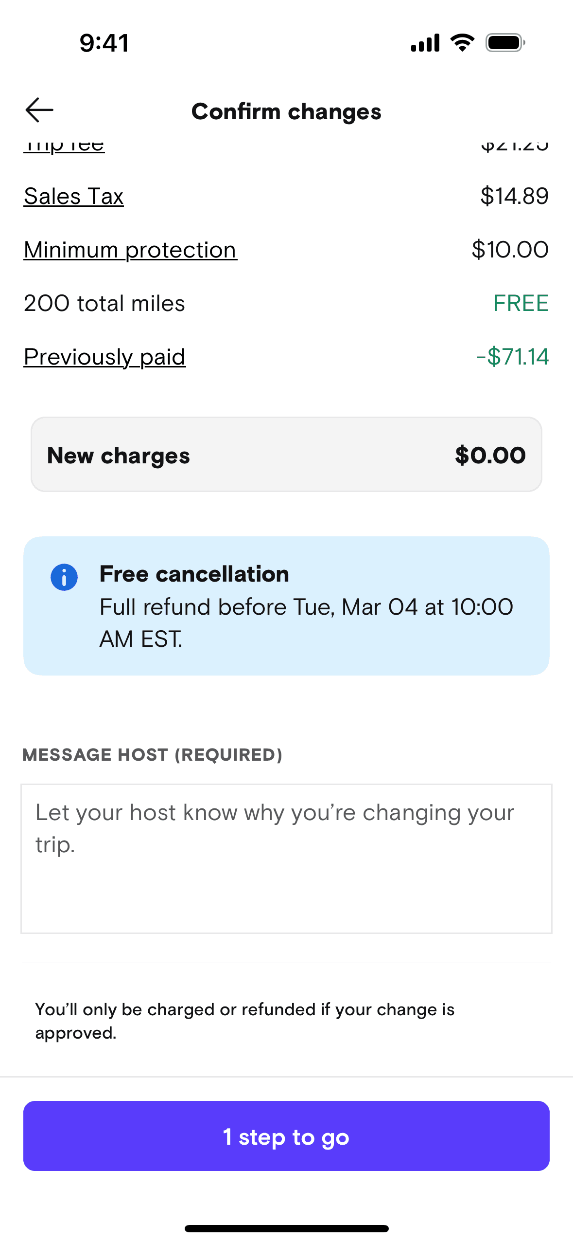 The user modifies the date and time of a booked trip. They confirm the changes and submit a request to the host.