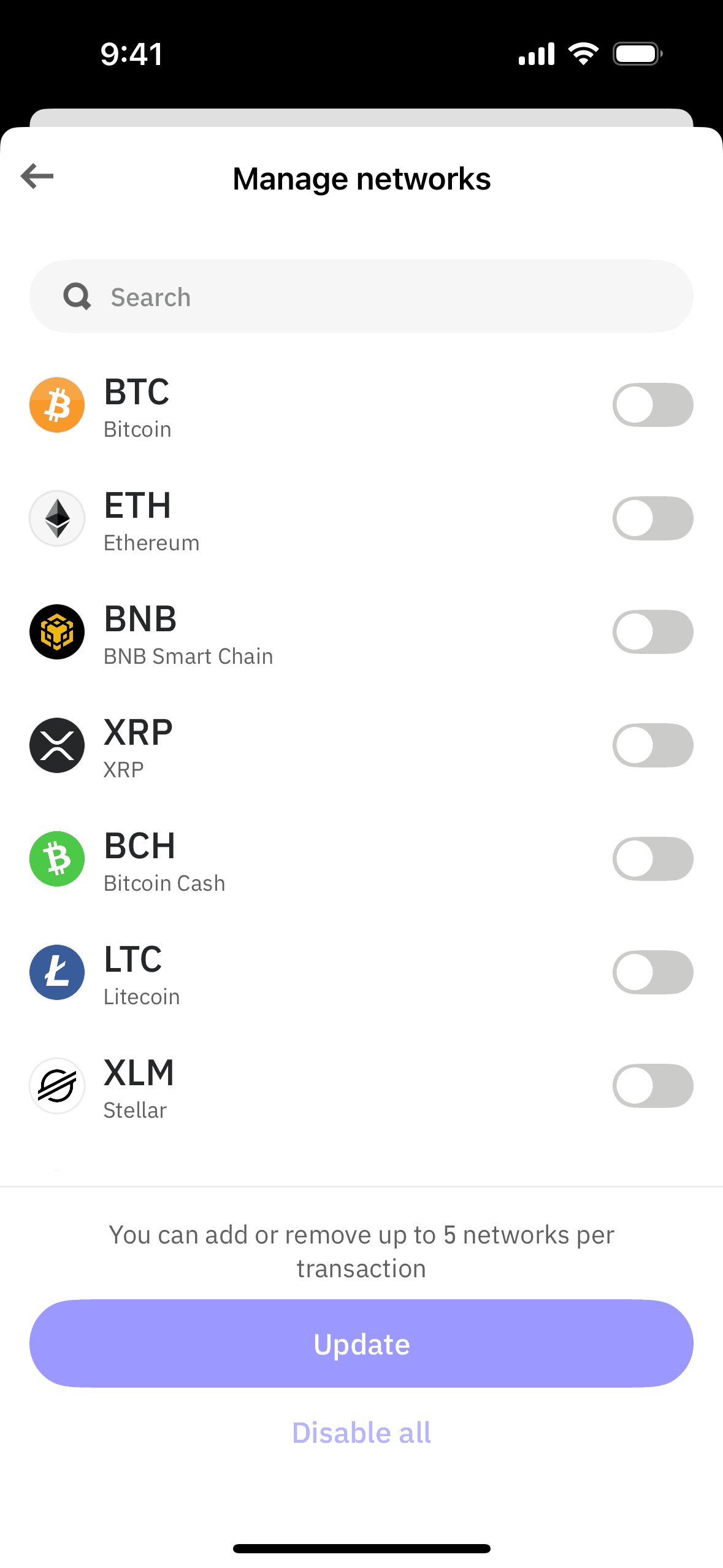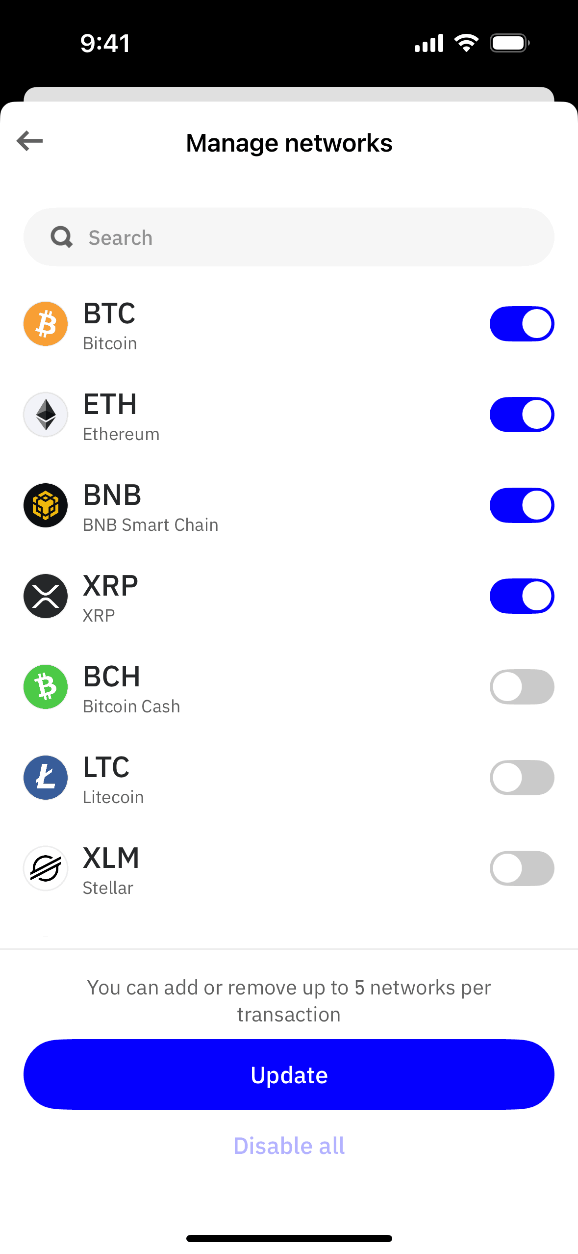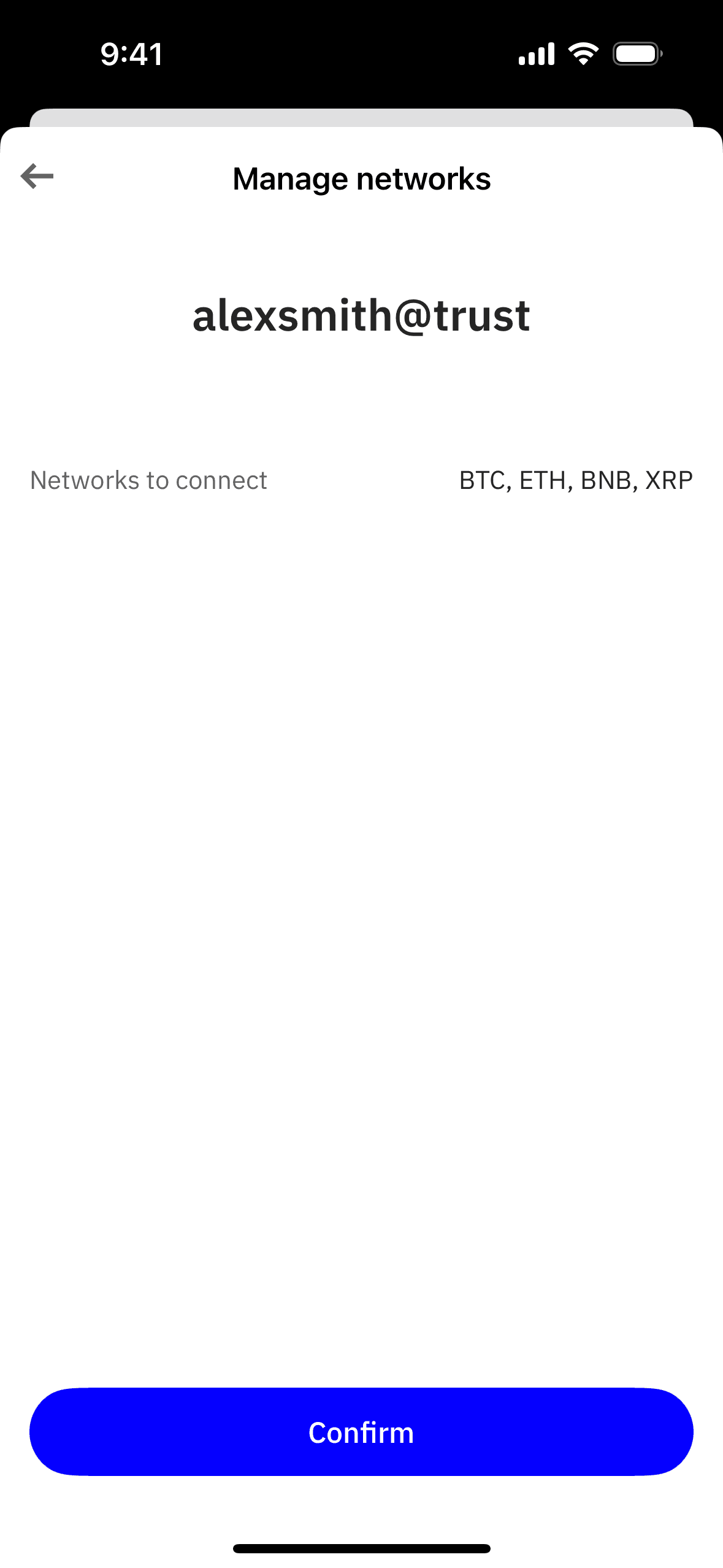 The user flow showcases managing networks for a wallet handle. It involves selecting networks and confirming the changes.