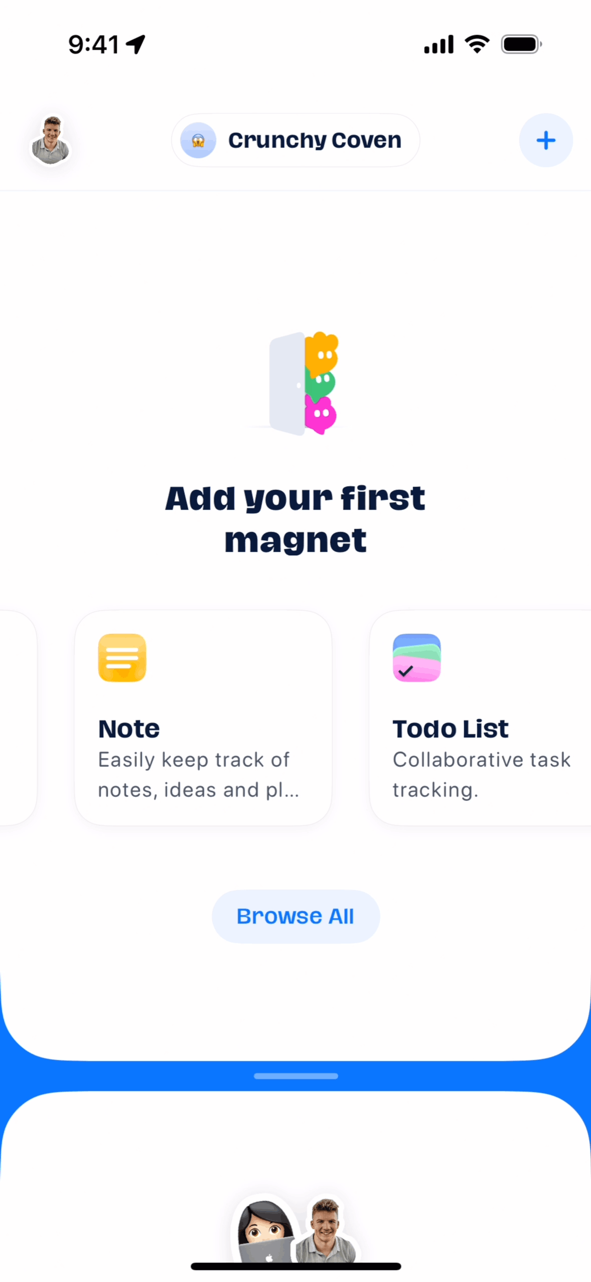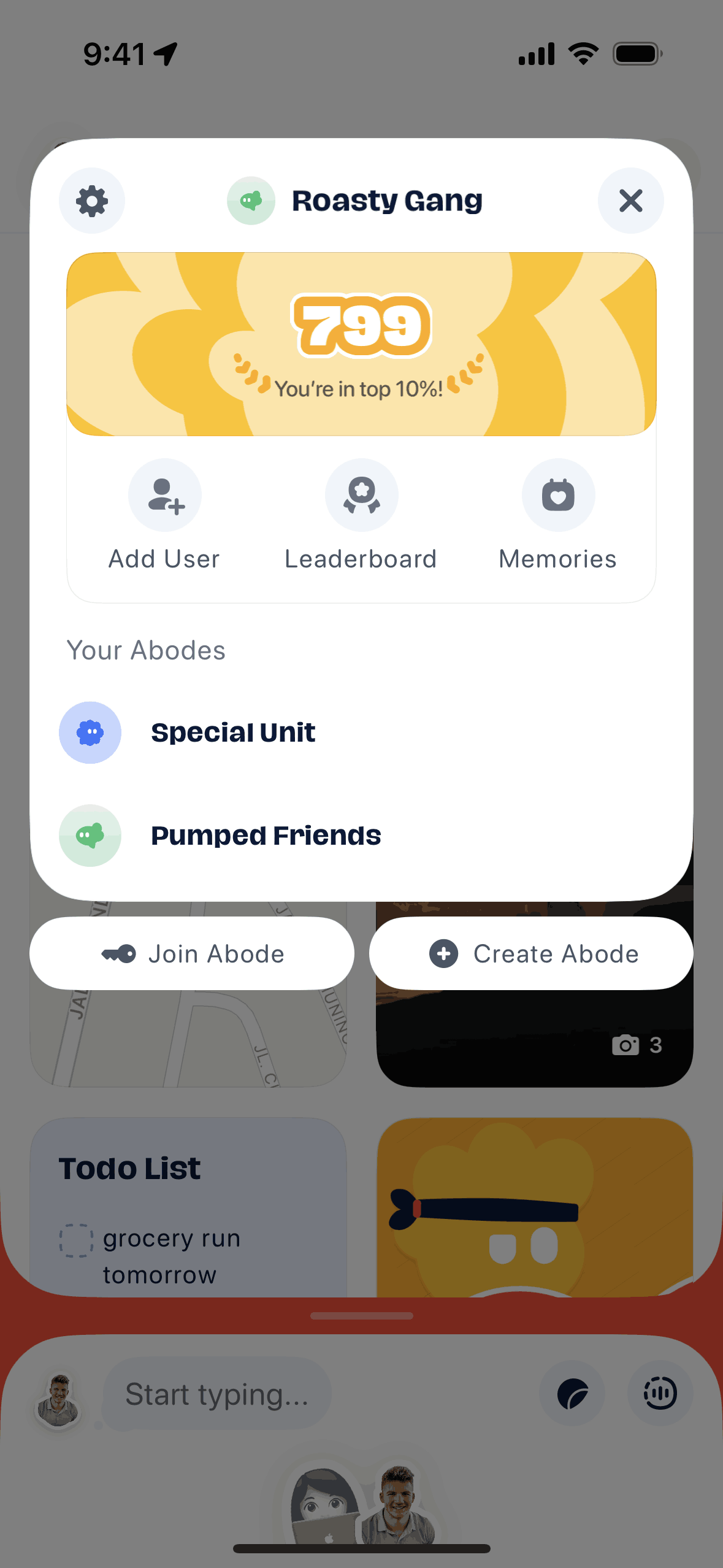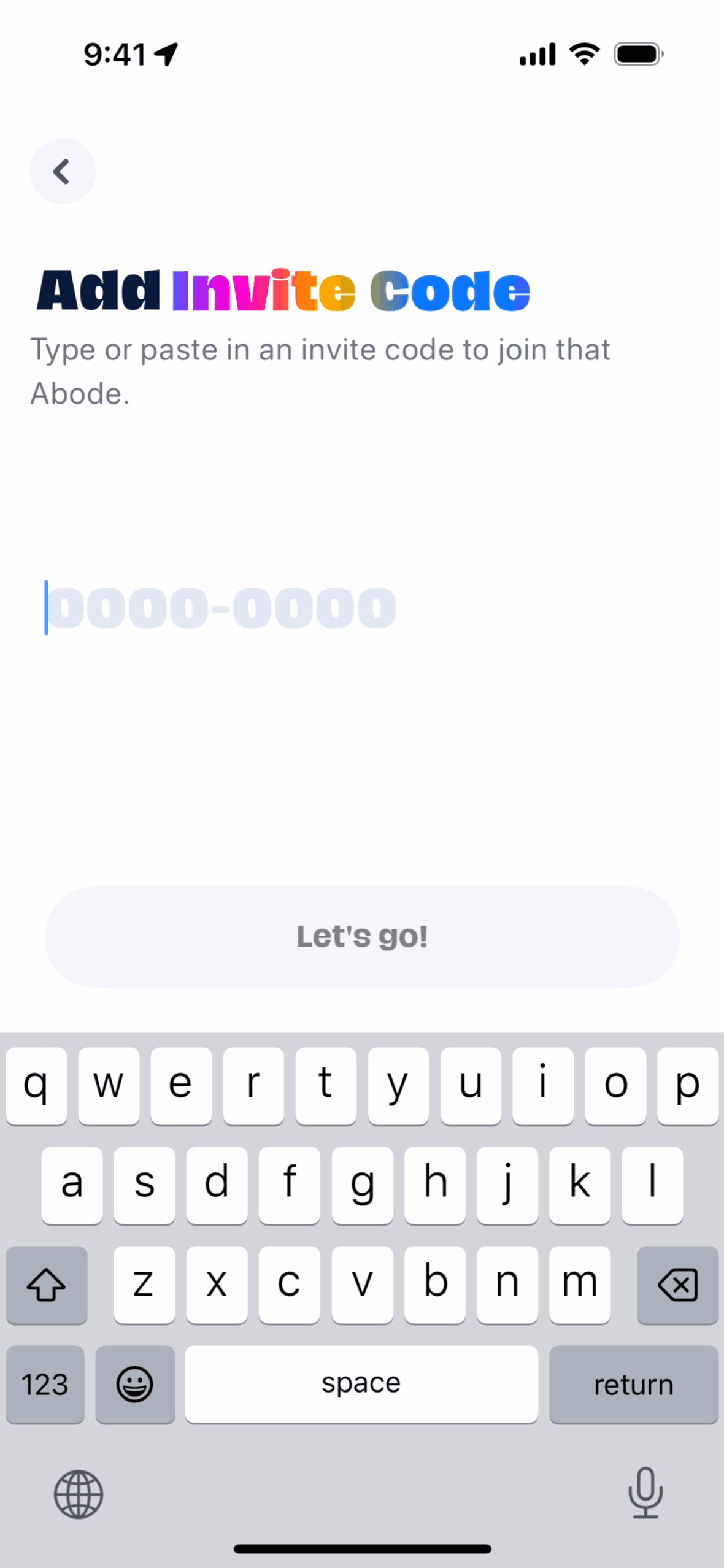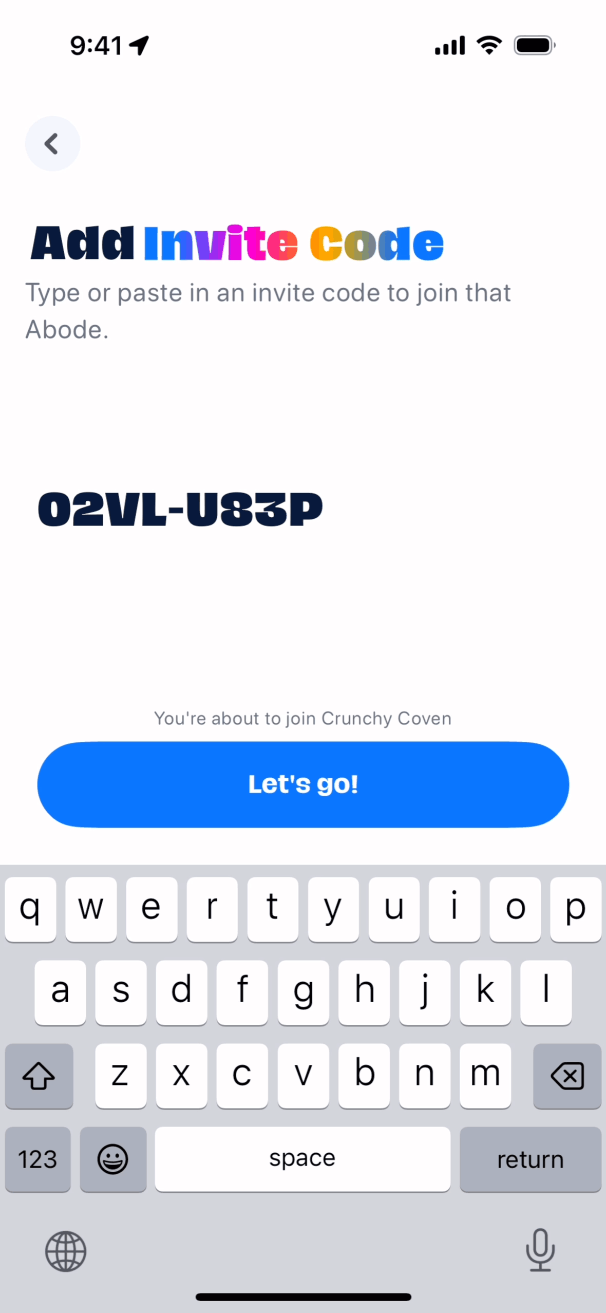 The user joins an abode by entering an invite code. They are then presented with the interface for the newly joined abode.