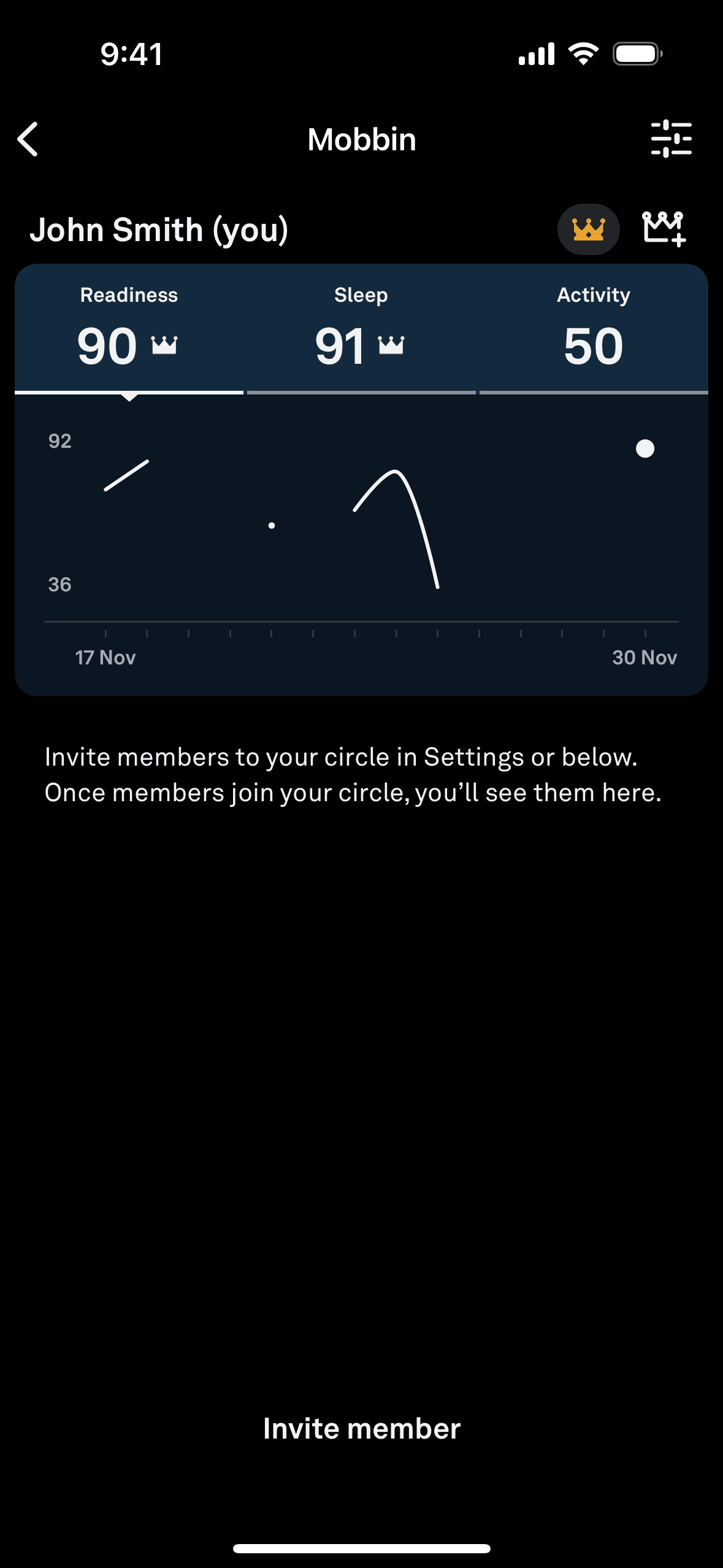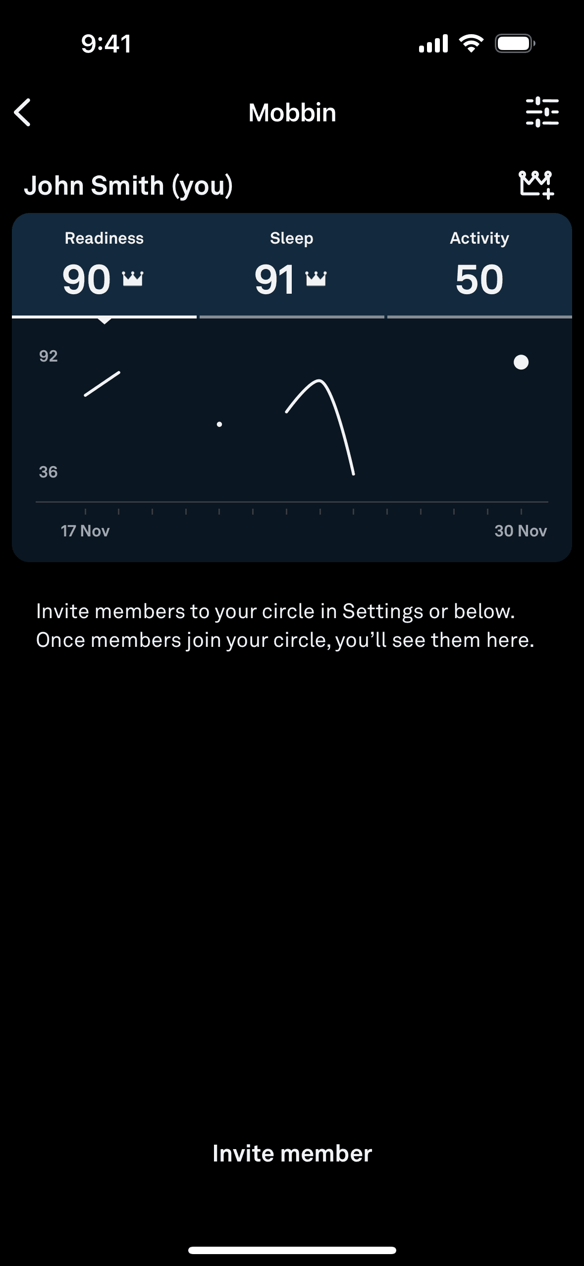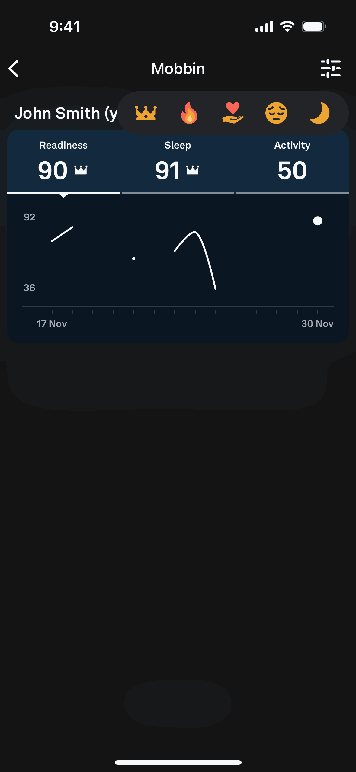 The user views their dashboard and selects a reaction to the displayed data. The screen then returns to the original dashboard.