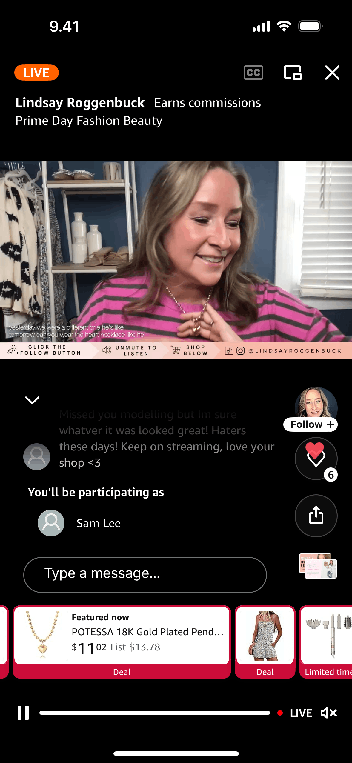 The user views a live video and then likes the video. The like button count increments from five to six.