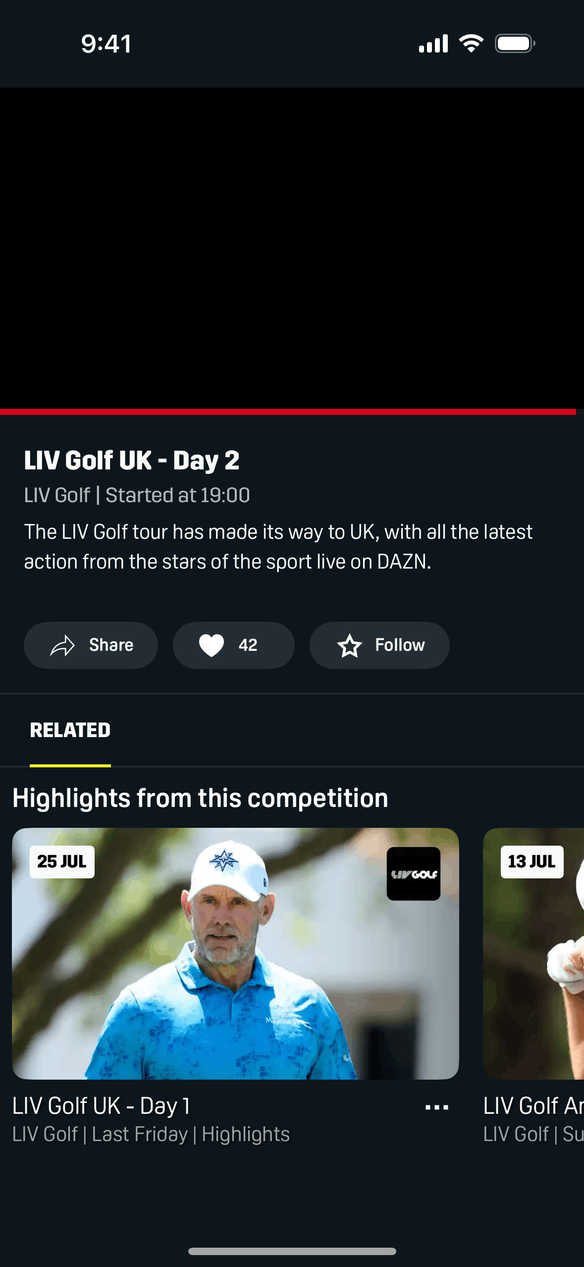 The user views a live event and then likes the event. The like count increases after the user interaction.