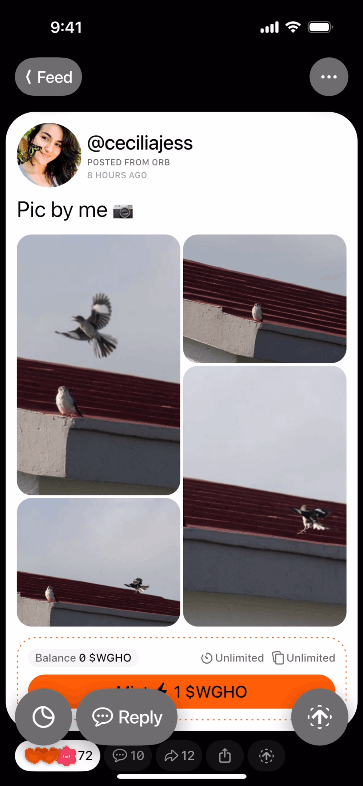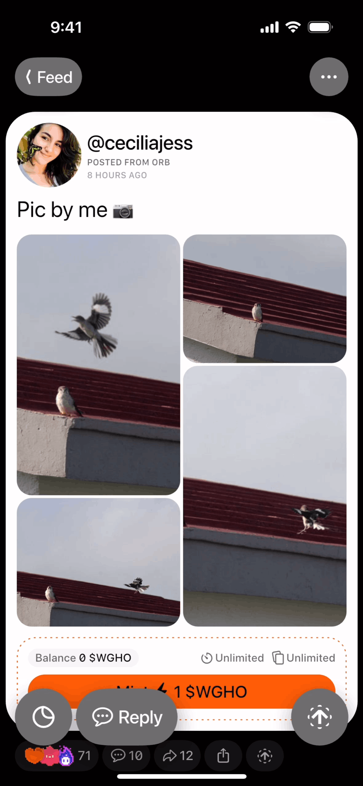 The user views a social media post and then likes it by pressing the like button. The like count is updated to reflect the user's action.
