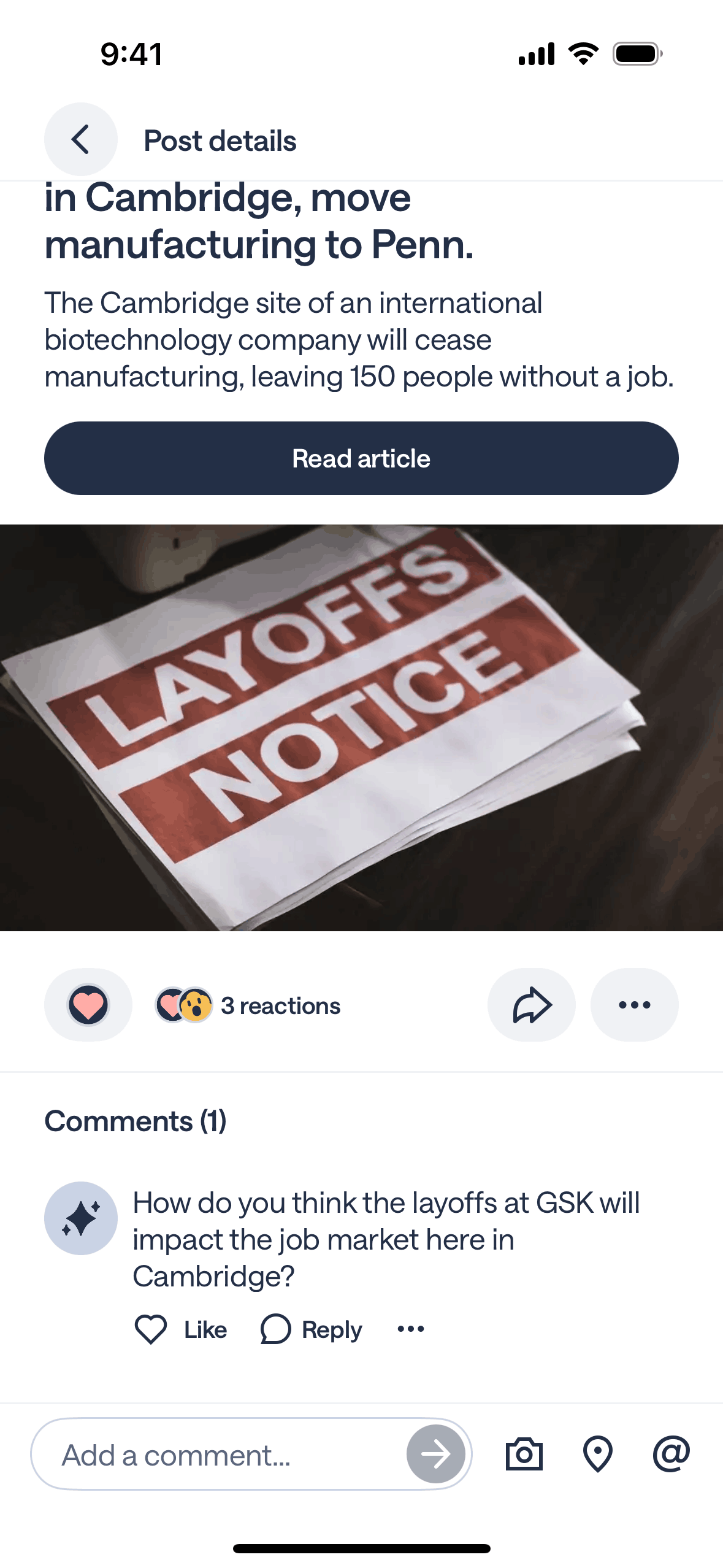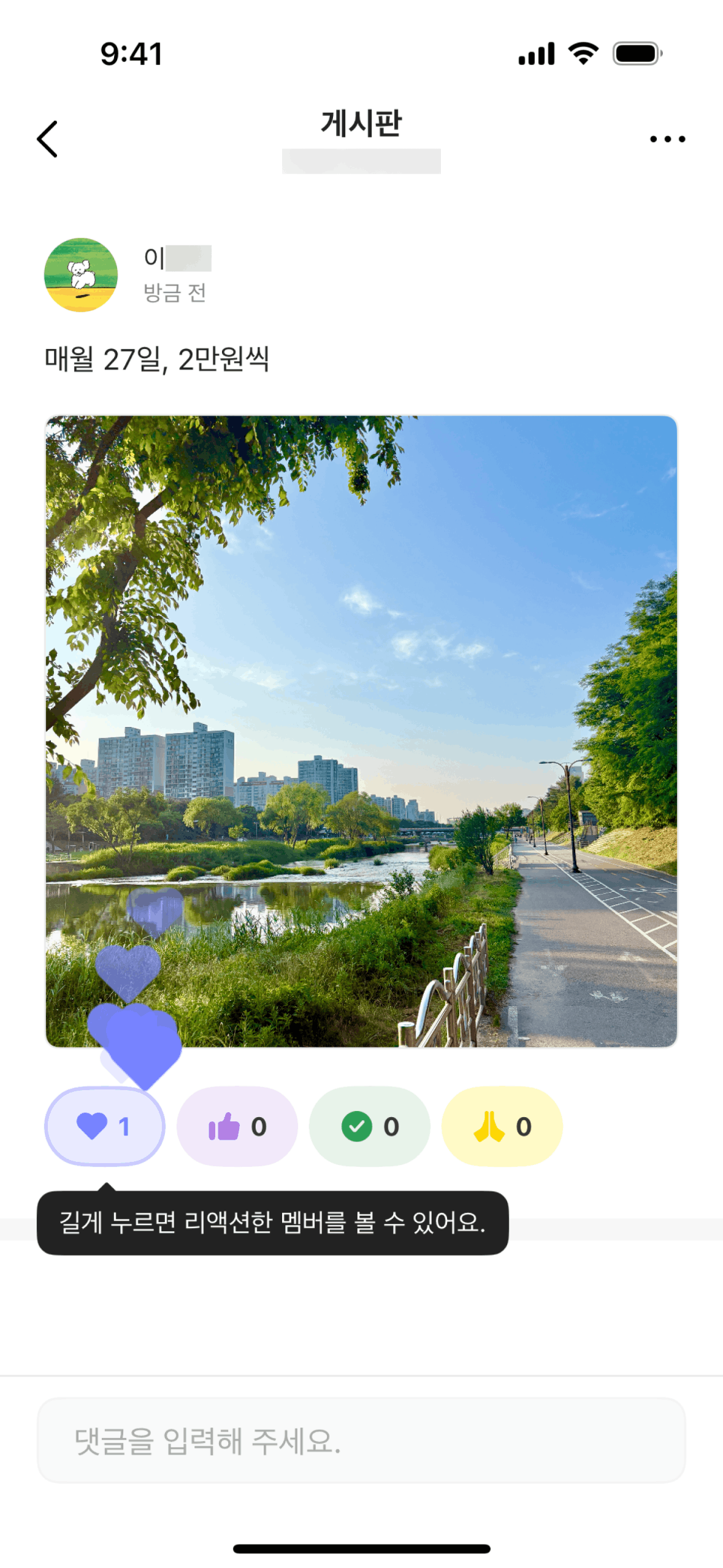 The user views a post and sees the reaction count increase after someone reacts to it. The flow highlights post interaction.