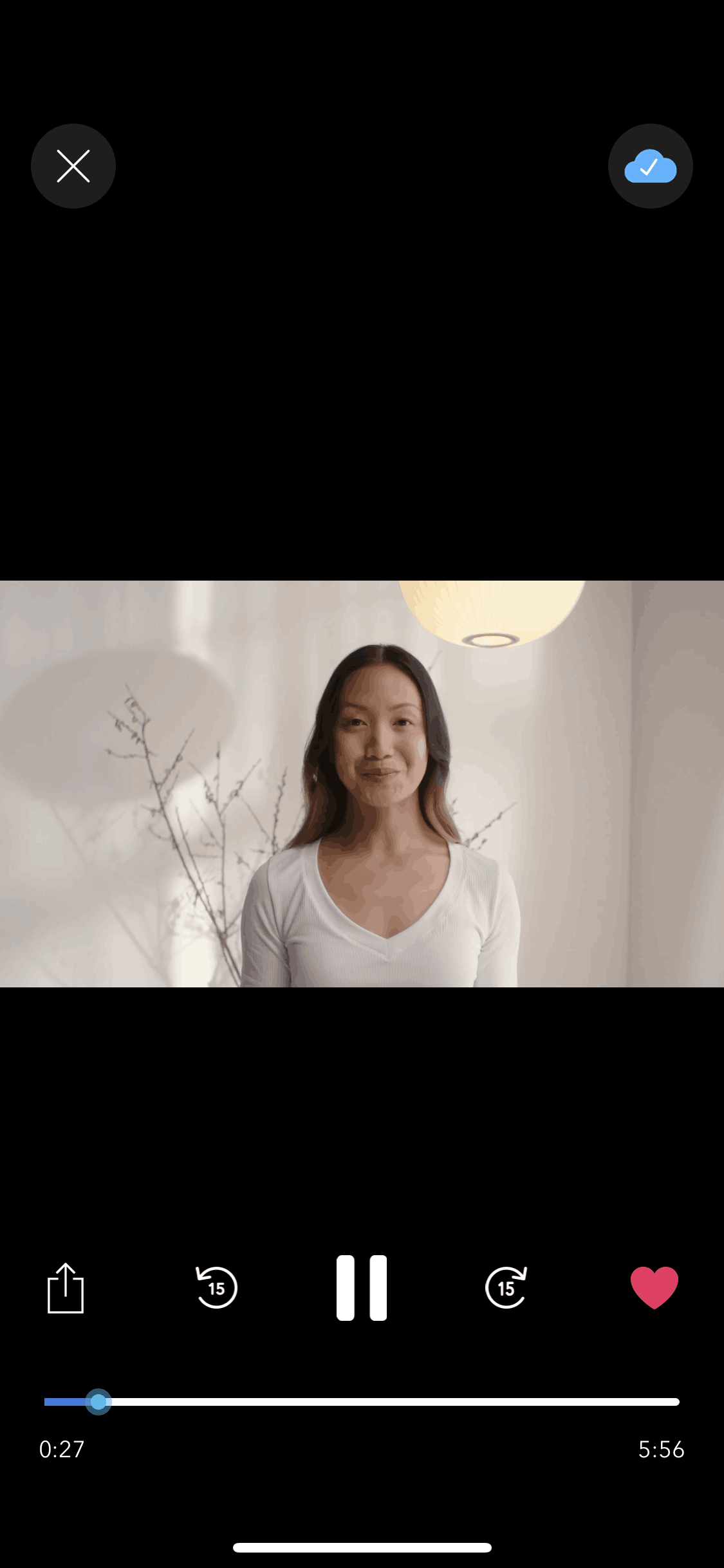The user watches a video and then likes it. The like button is highlighted to indicate that the video has been liked.