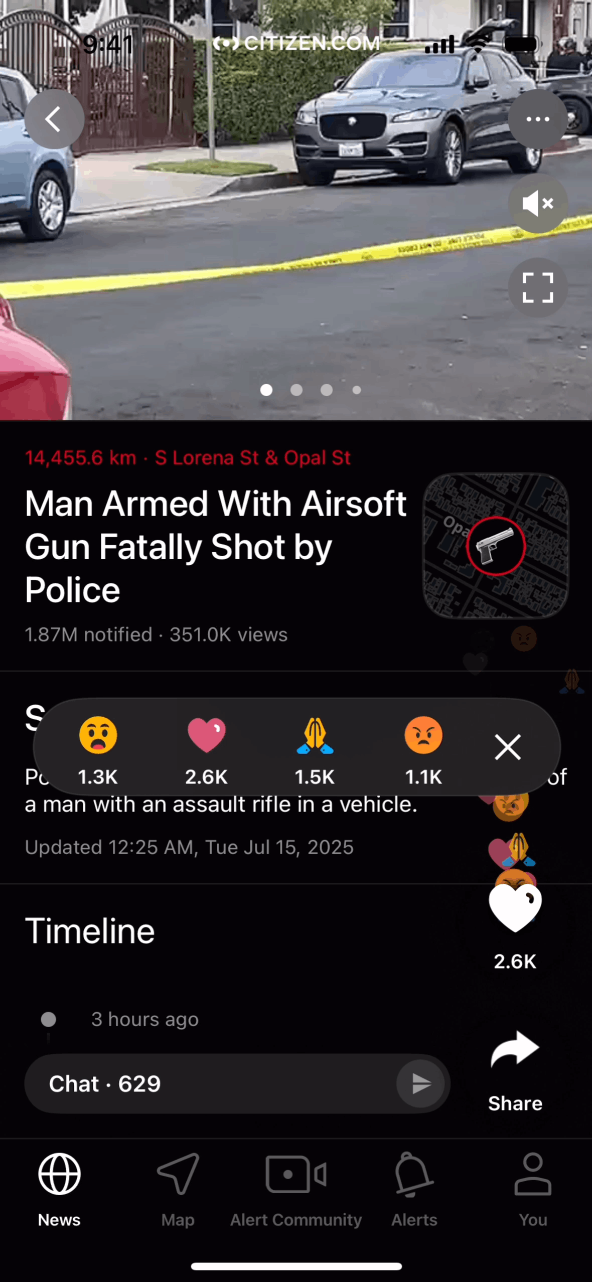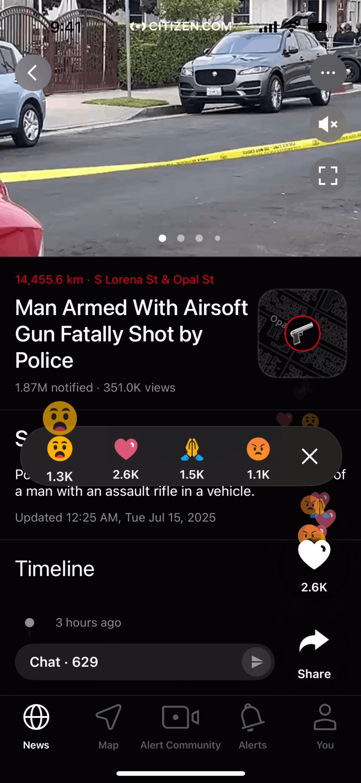 The user views an incident and reacts to it. They open the reaction menu and select a reaction.