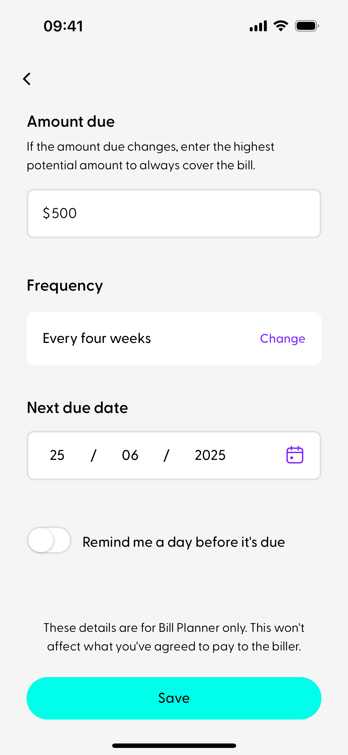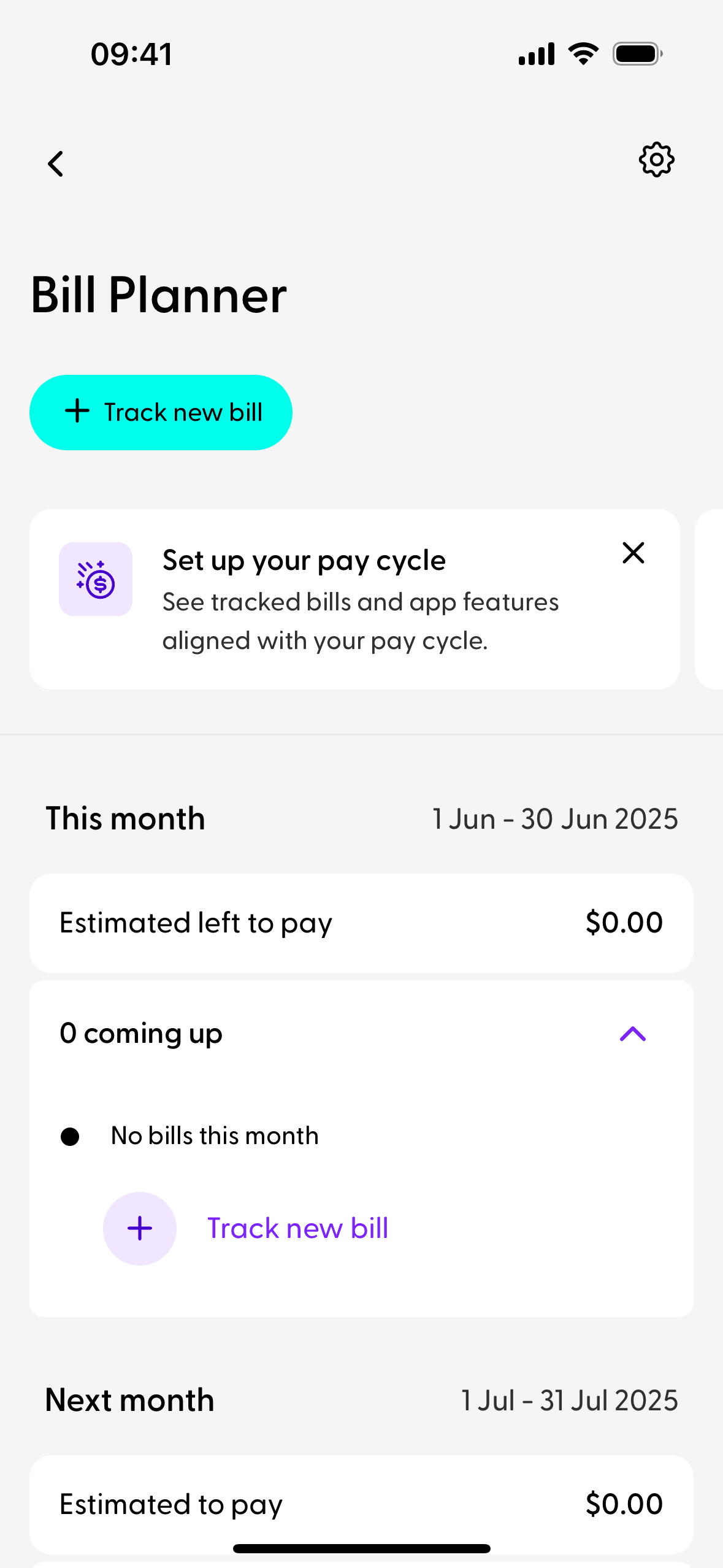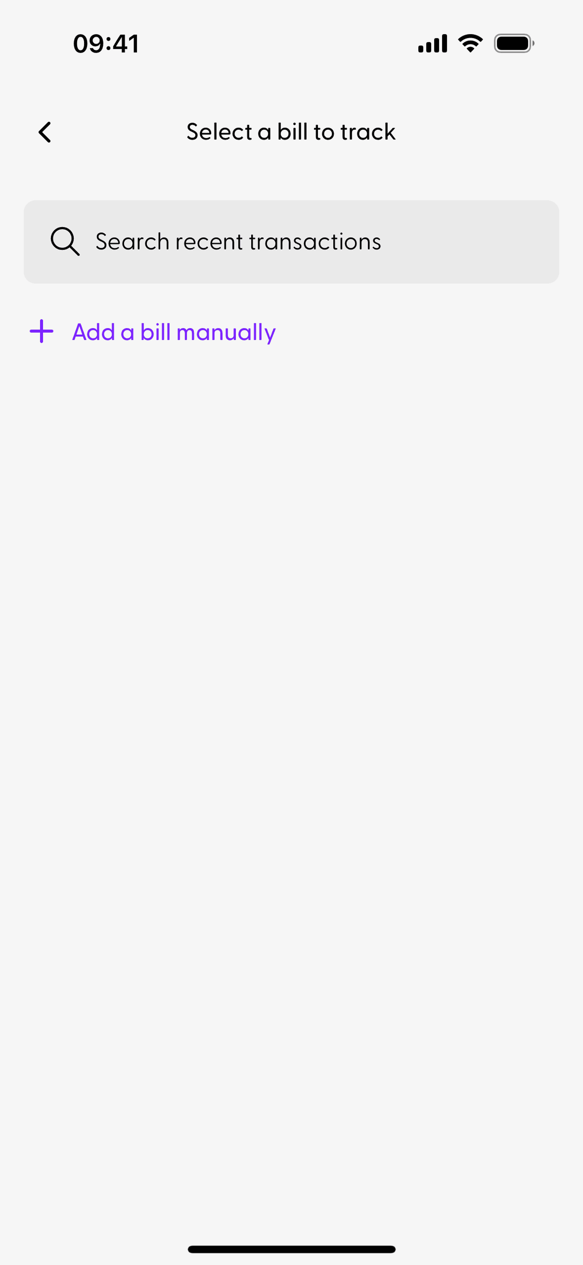 The user tracks a past transaction by selecting it from a list and then confirming the bill details. A confirmation message appears upon successful tracking.