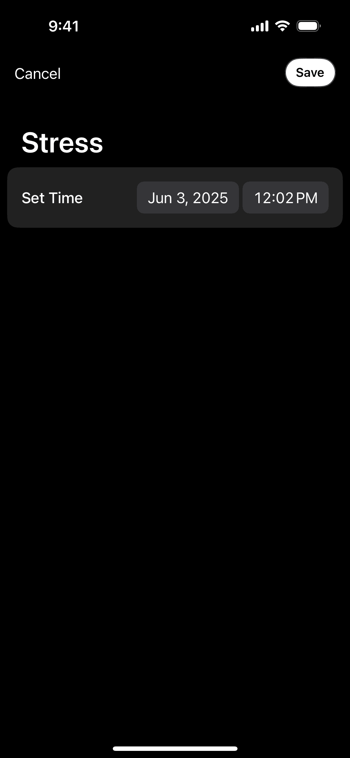 The user logs a stress event by selecting the event type and setting the time. The timeline is then updated to display the logged event.