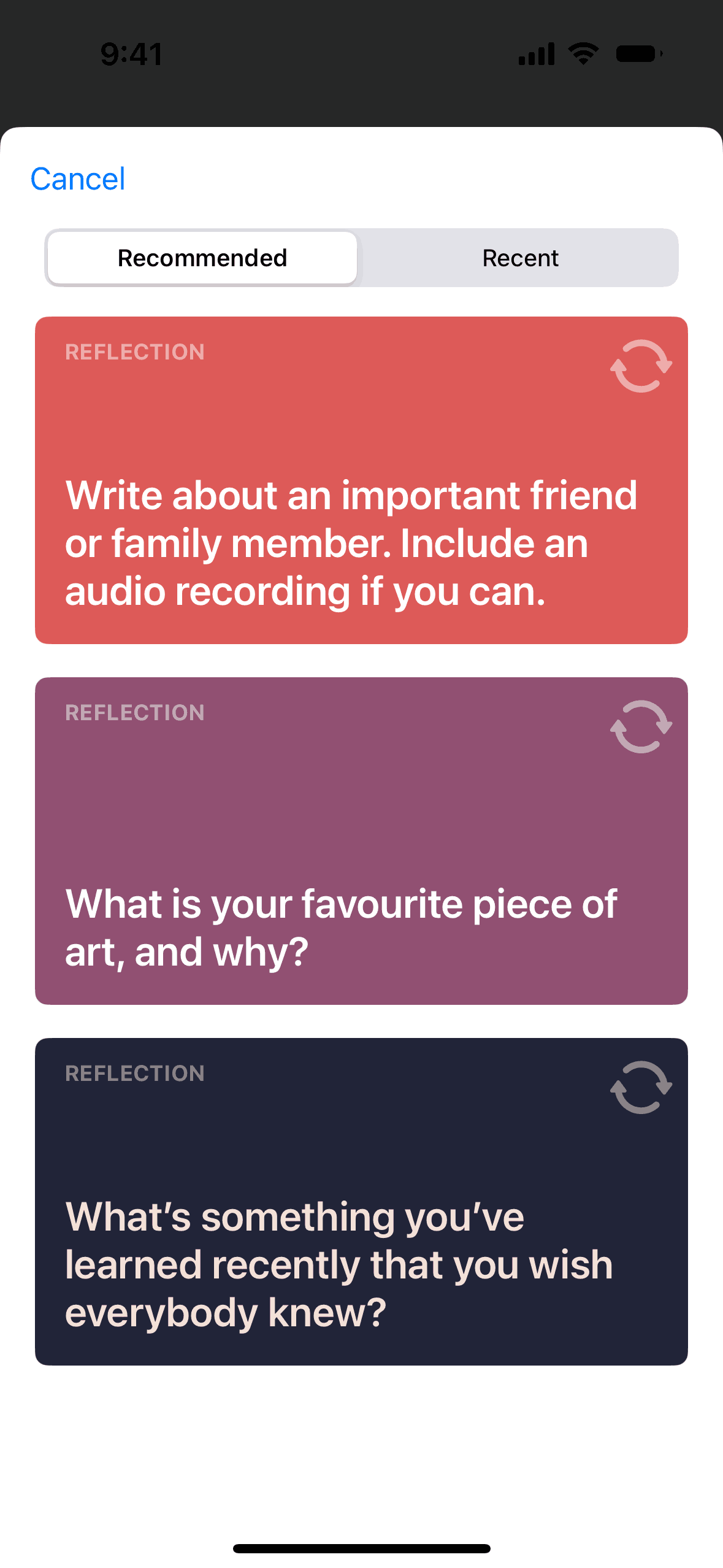 Logging a daily reflection (morning)on