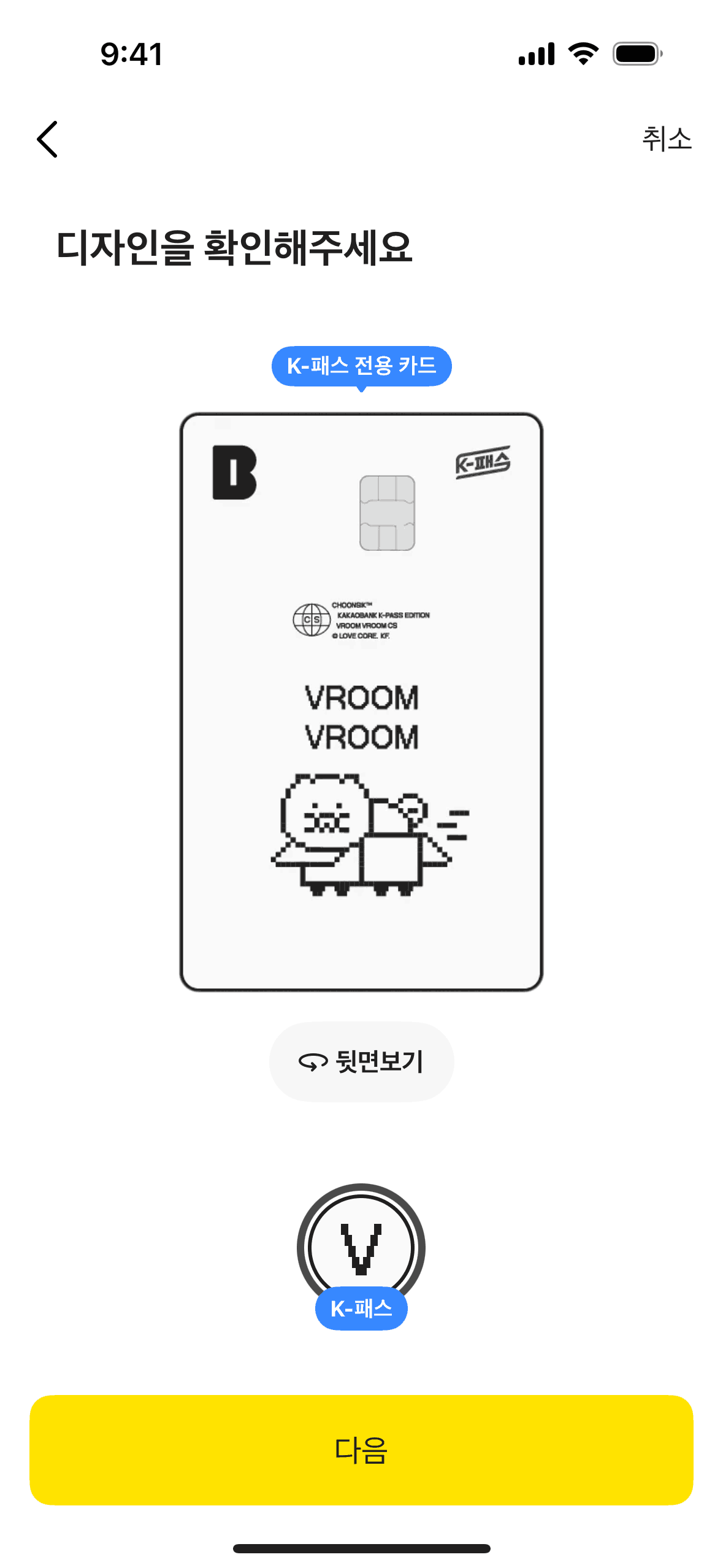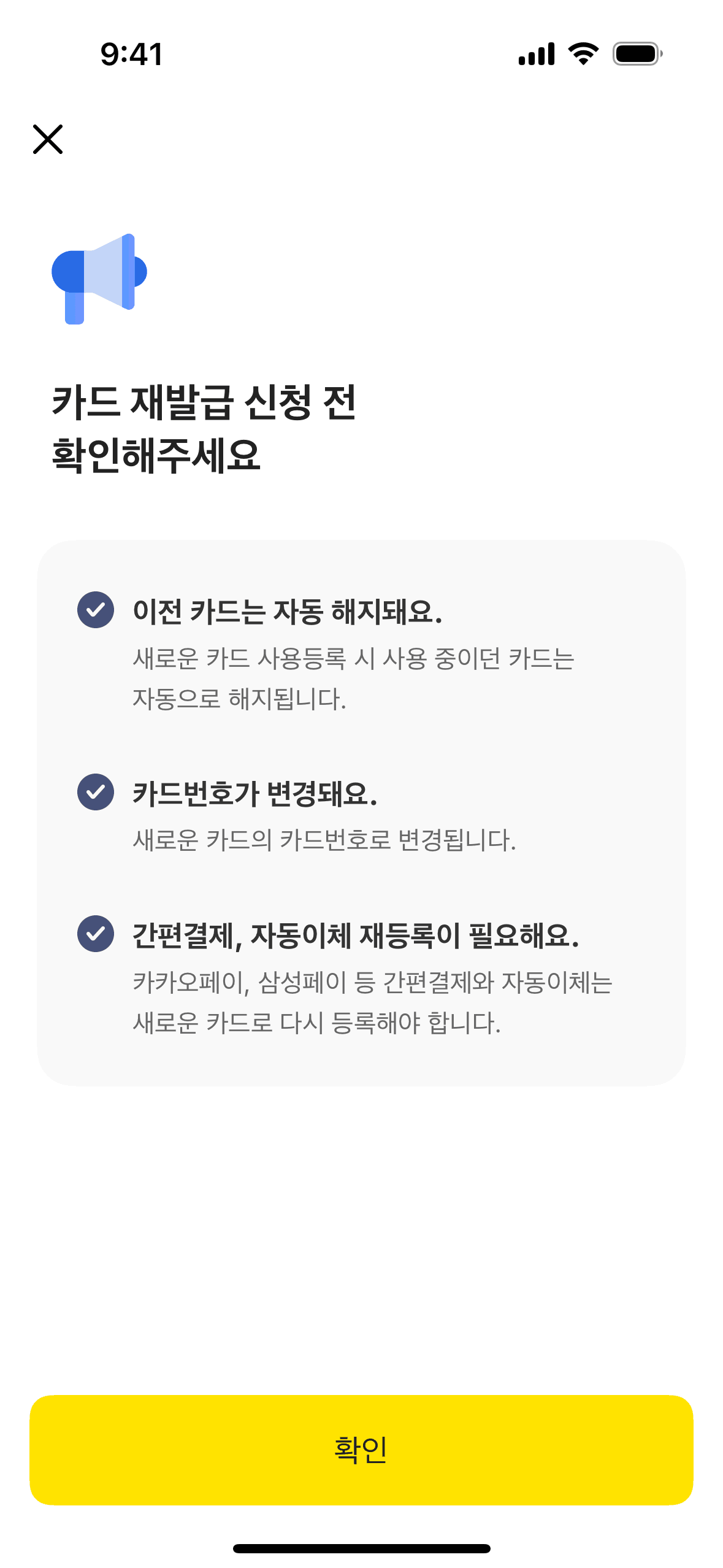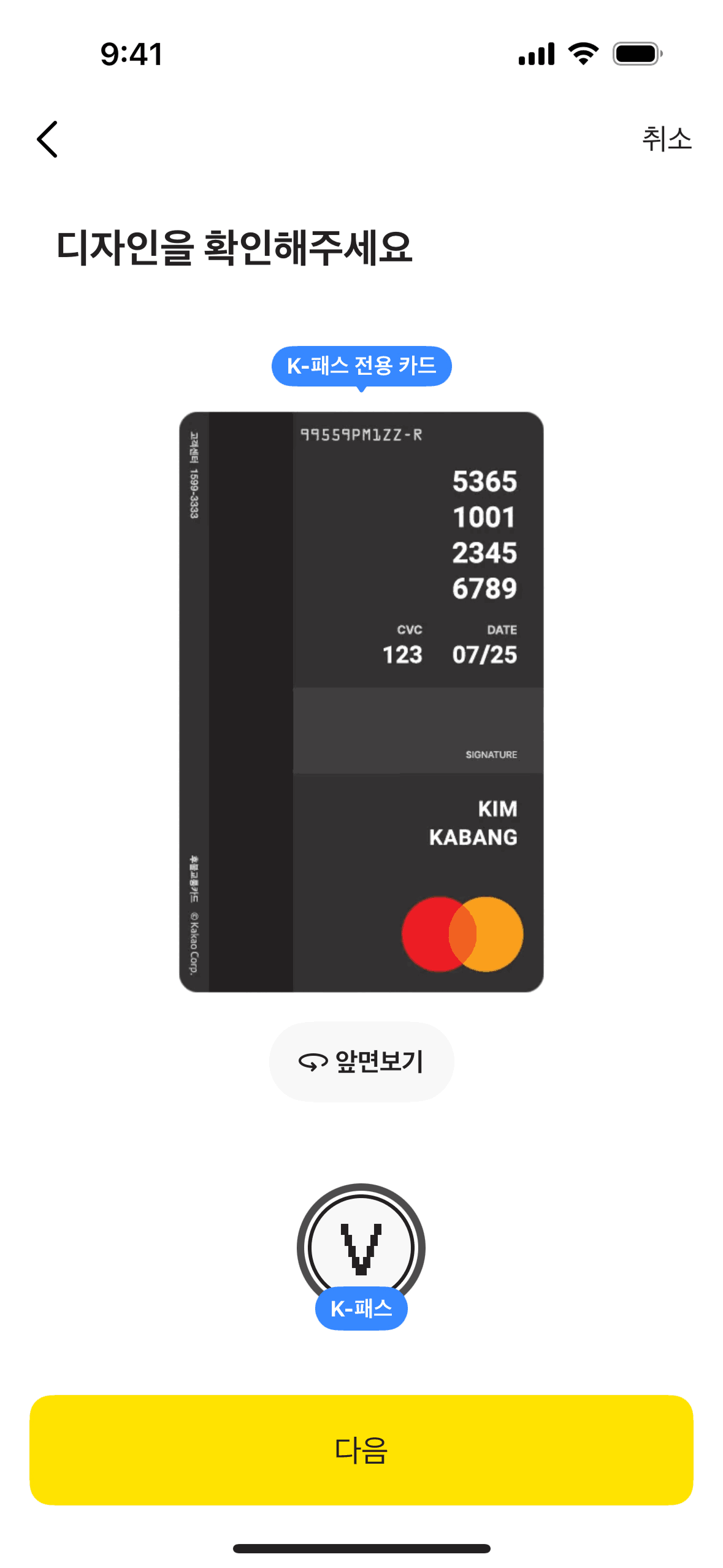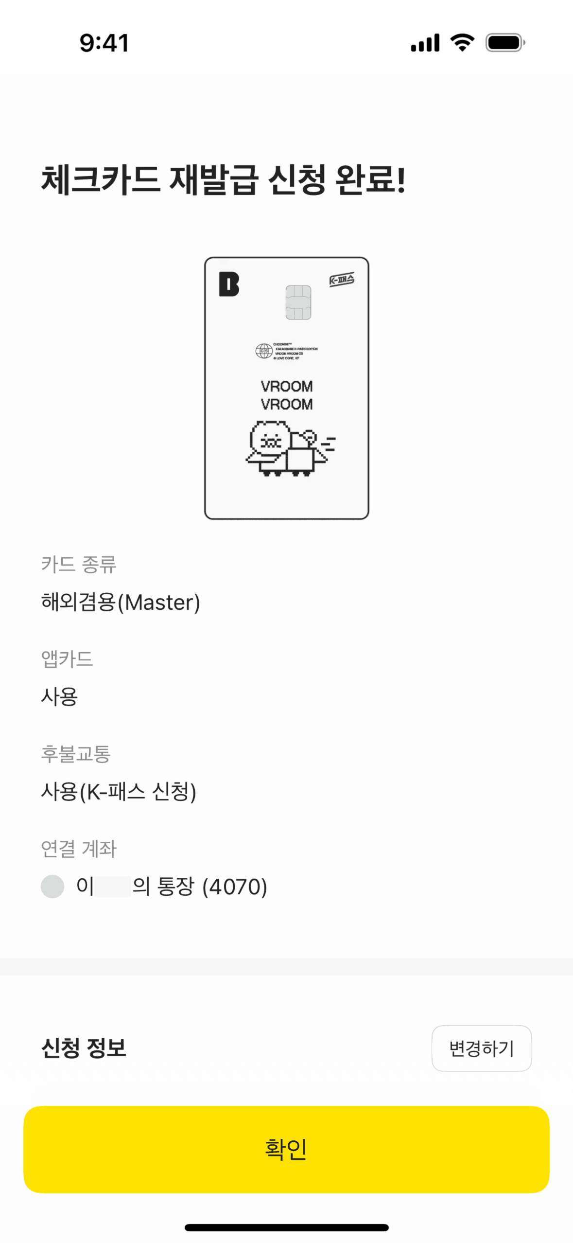 The user flow guides the user through the process of reissuing a card, including agreeing to terms, customizing the card, and providing necessary information. The final screen confirms the application.