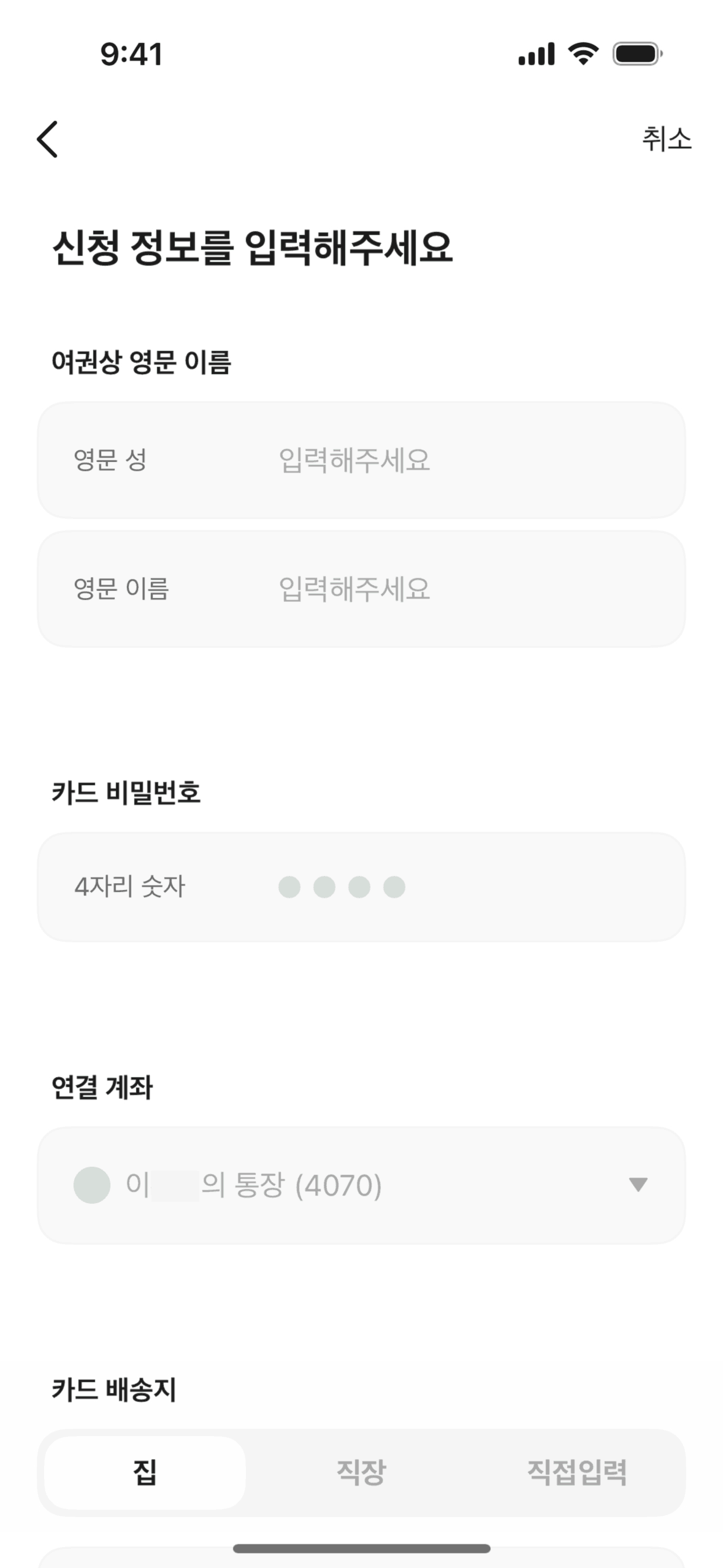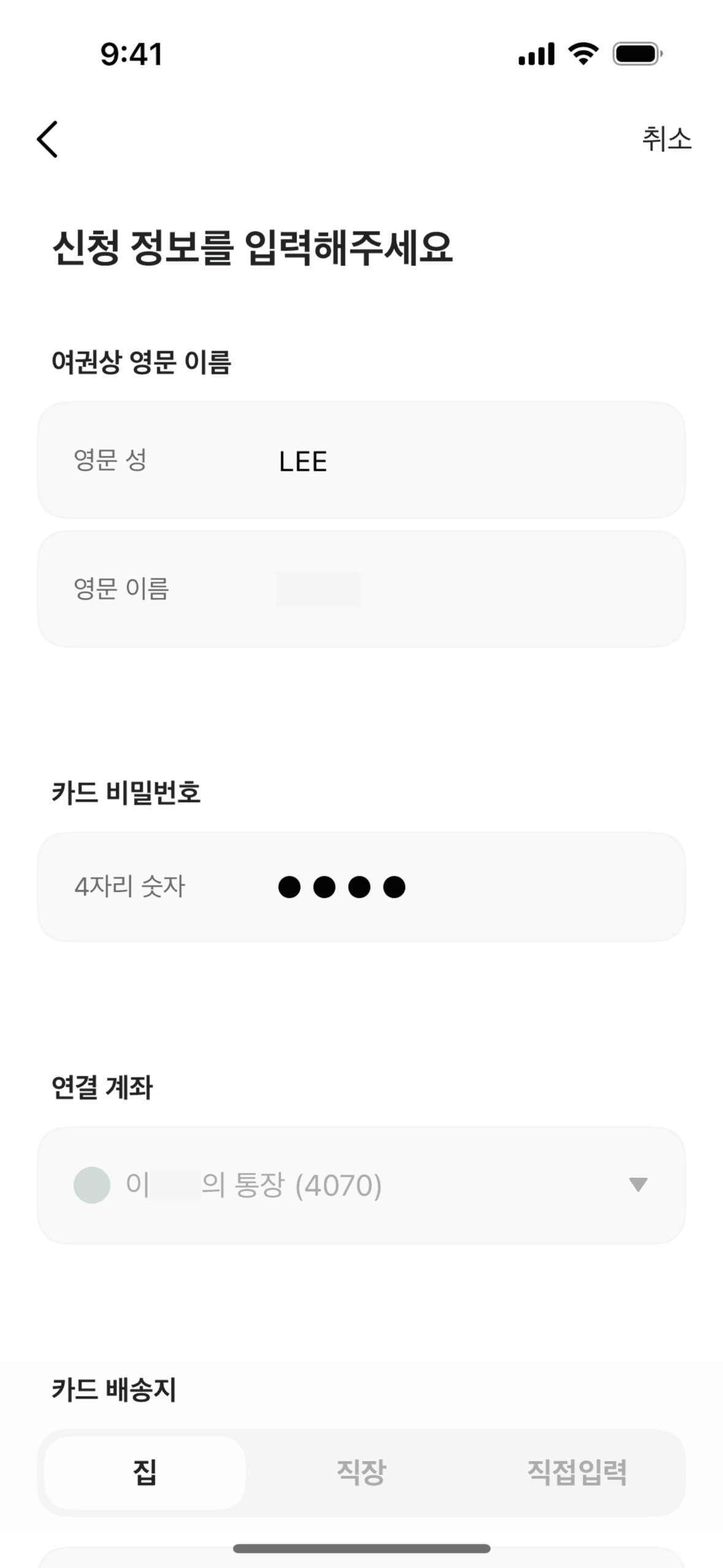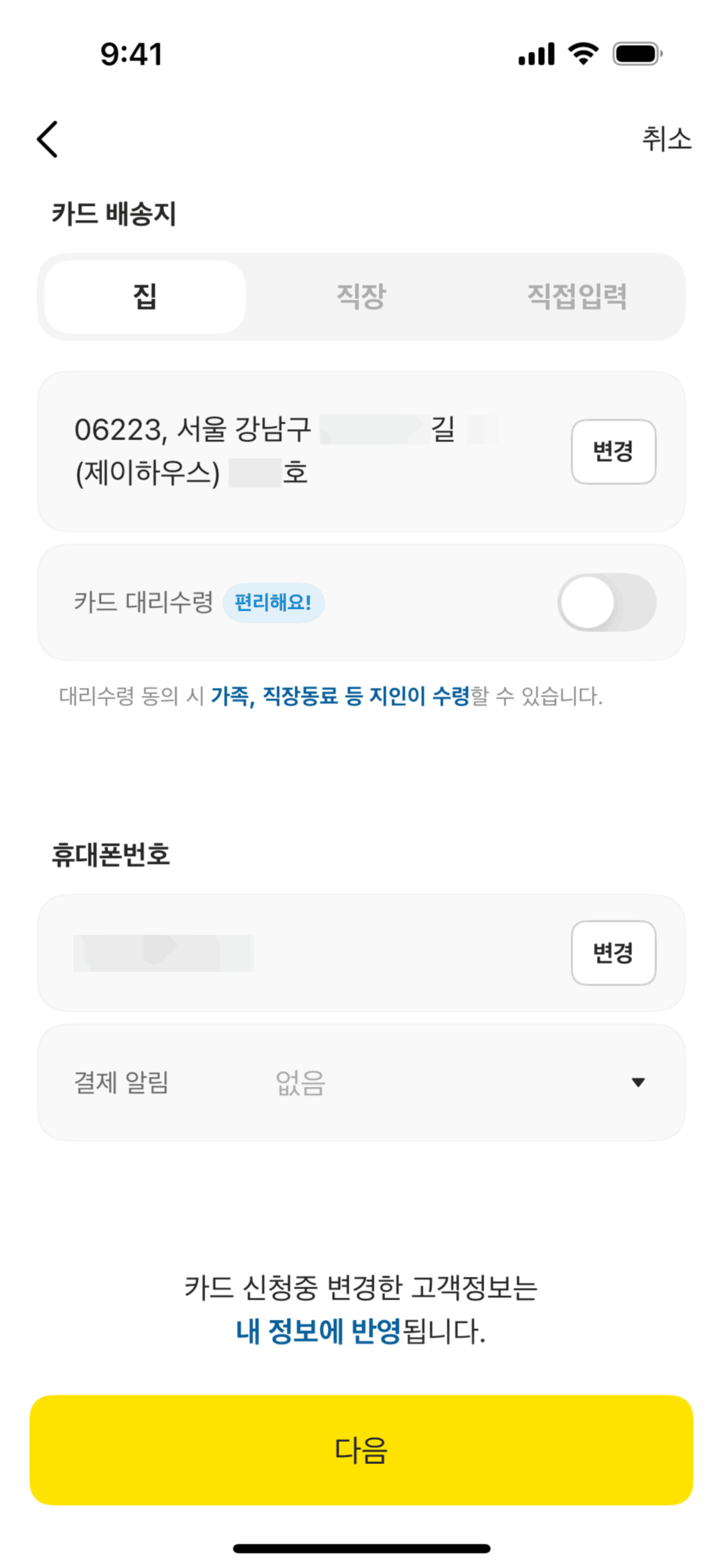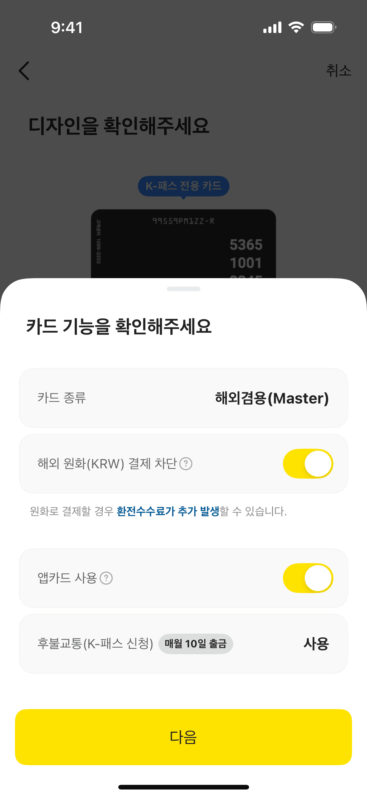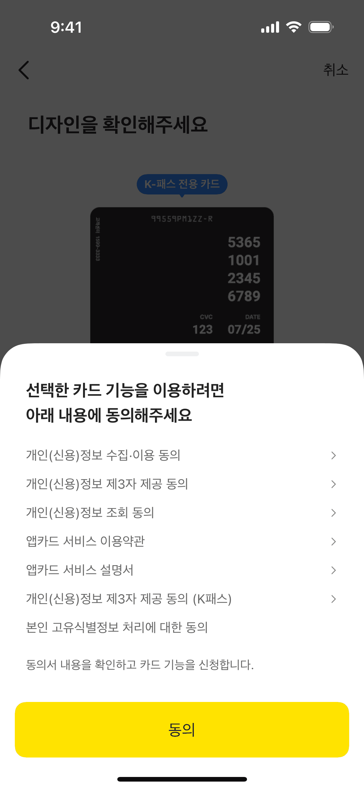 The user flow guides the user through the process of reissuing a card, including agreeing to terms, customizing the card, and providing necessary information. The final screen confirms the application.