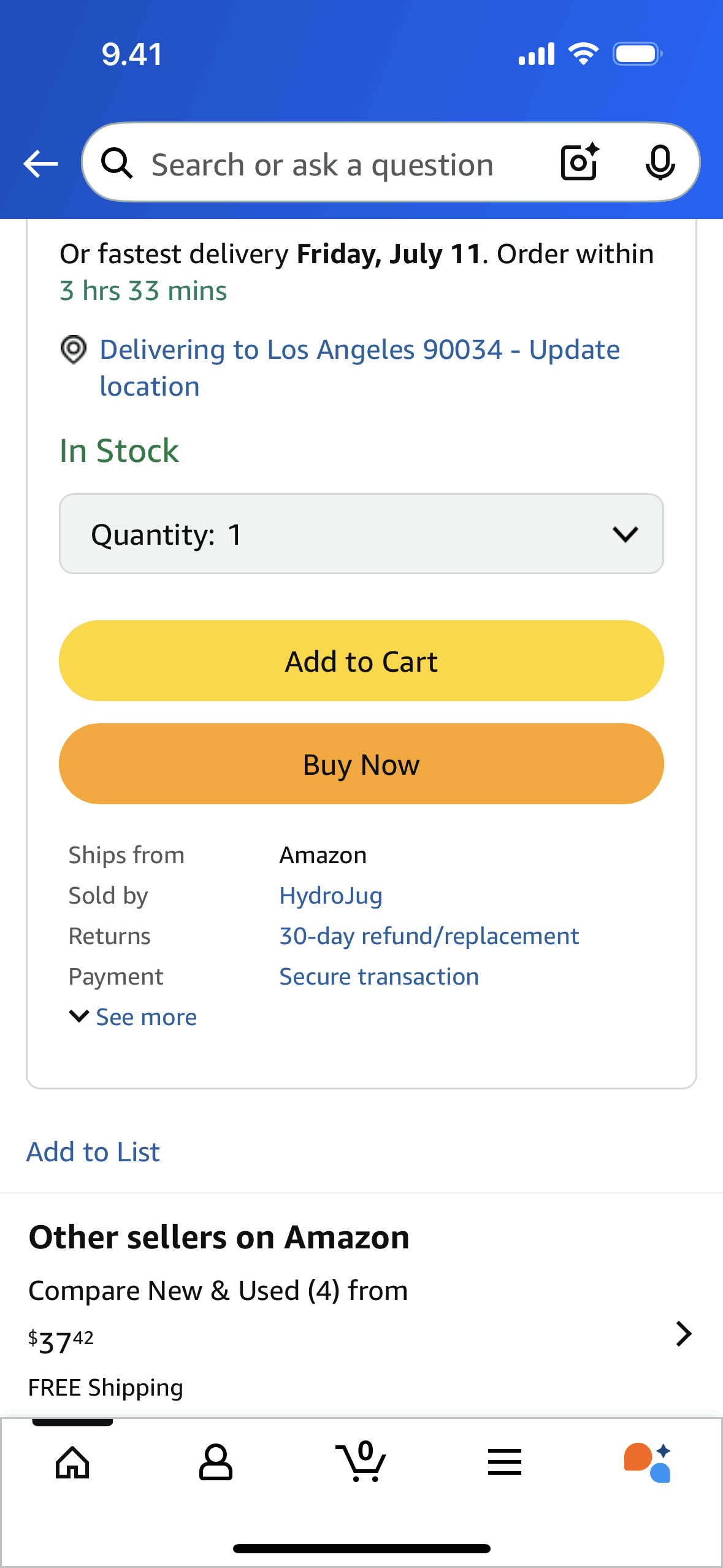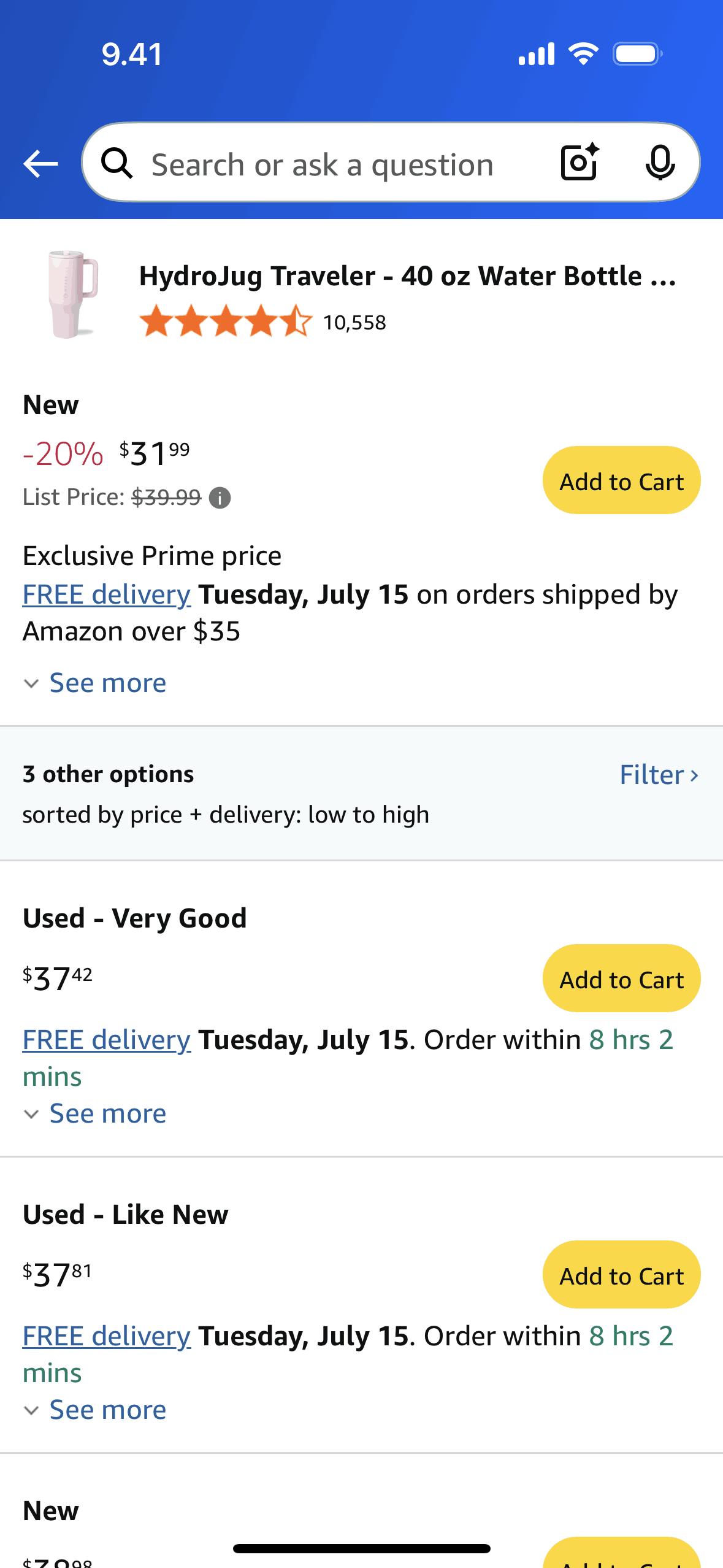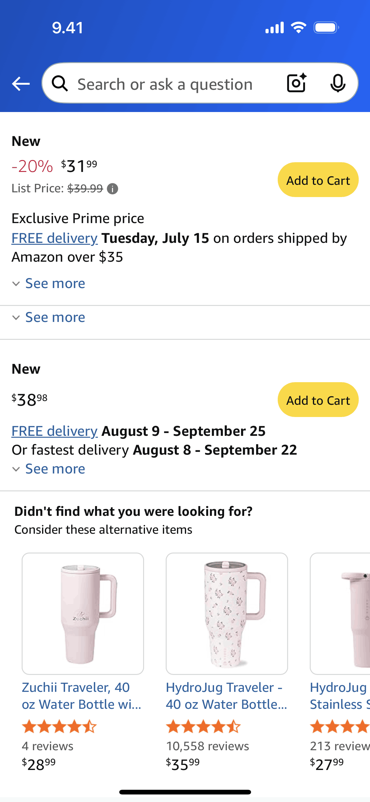 The user browses a product and compares prices from different sellers. The user can also explore alternative products.