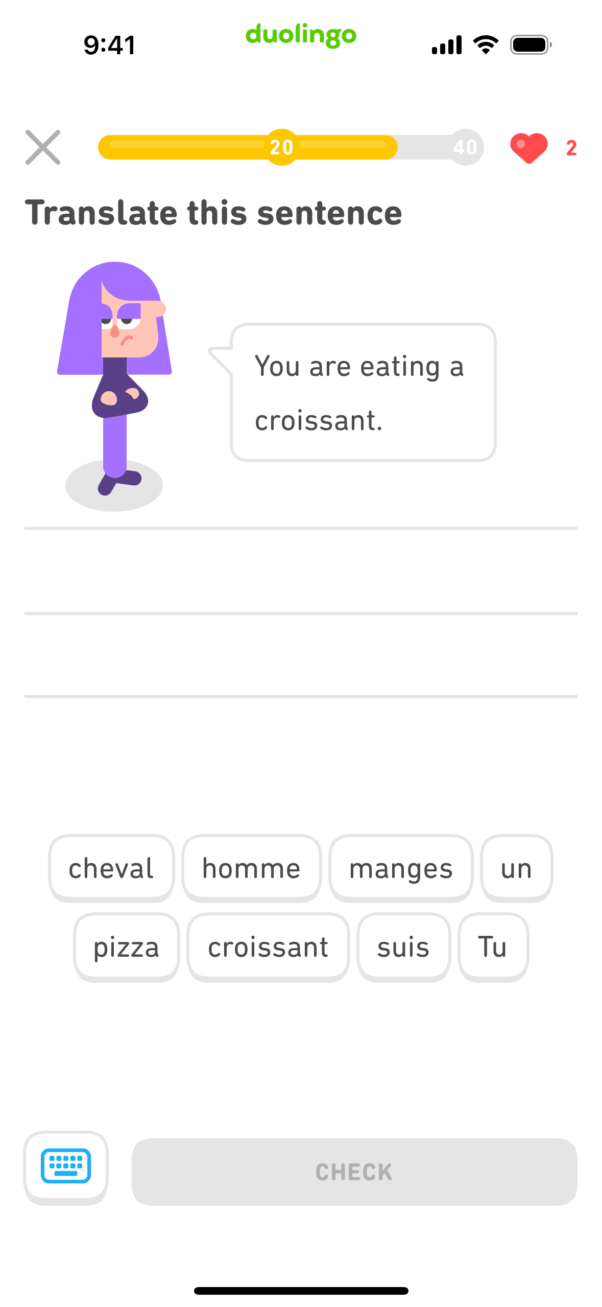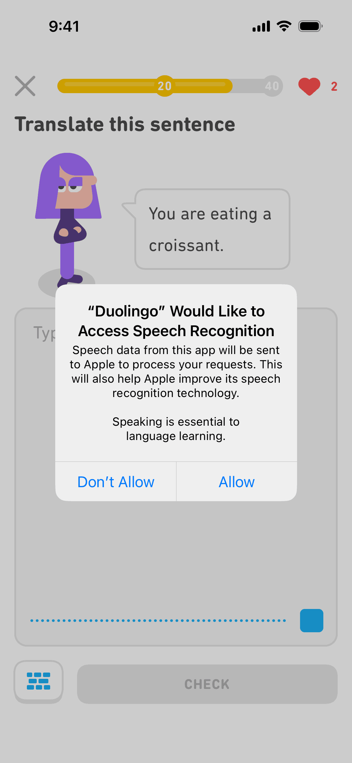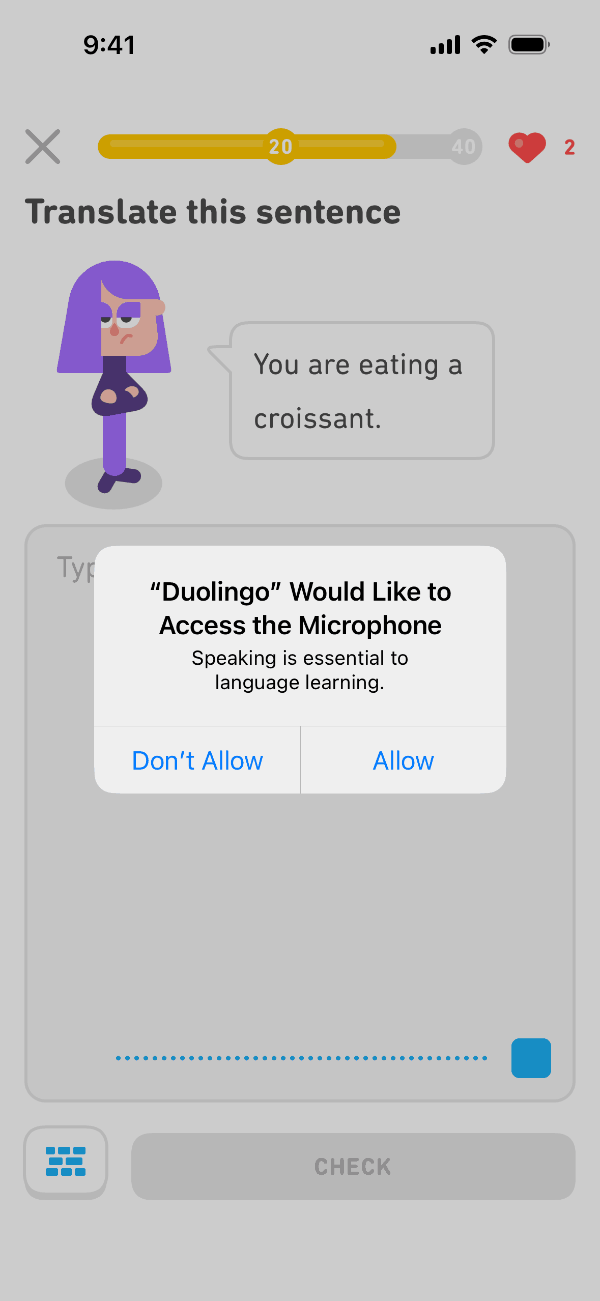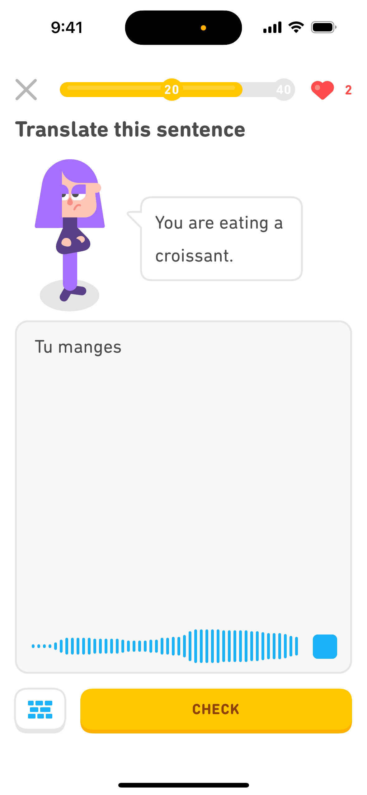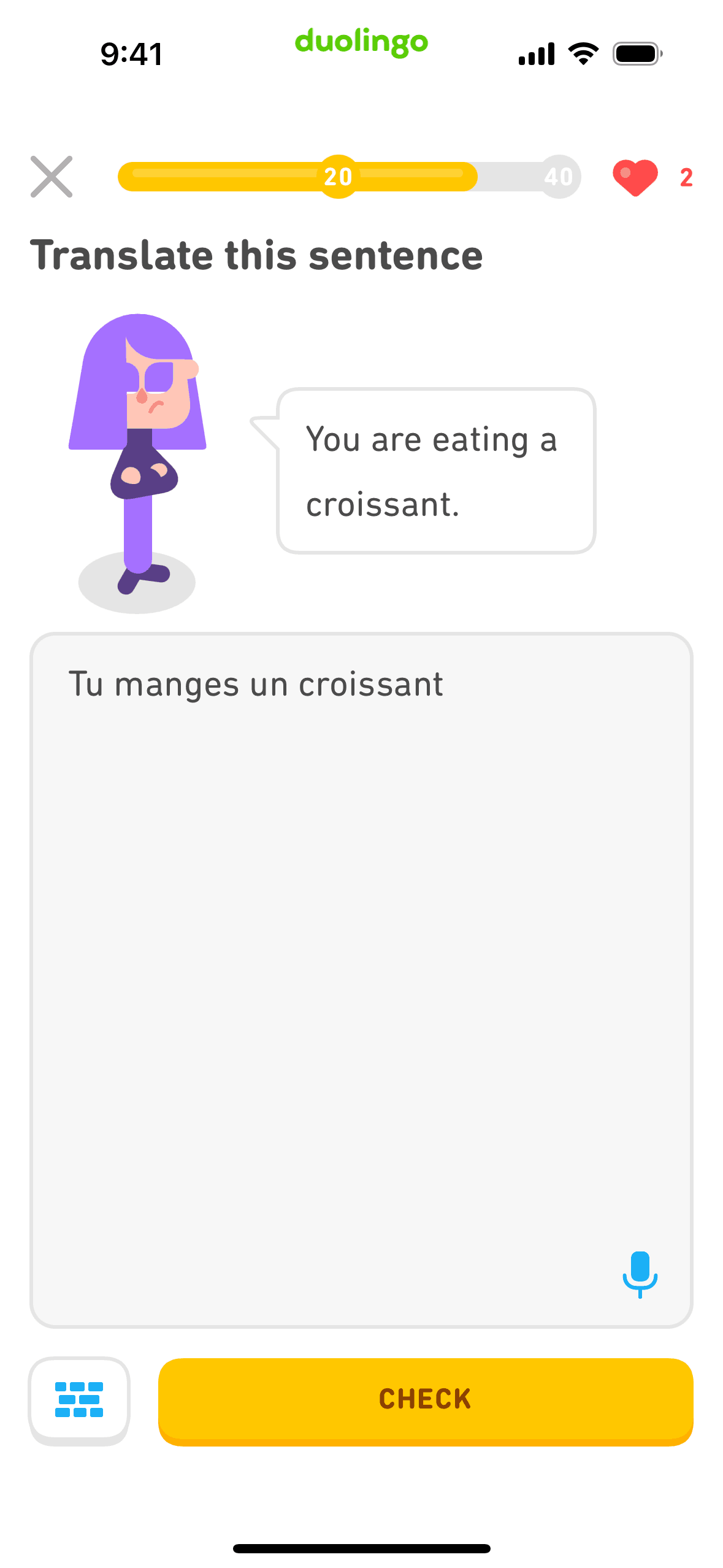 The user completes a legendary level by completing a translation exercise. They are congratulated and return to the learning path.